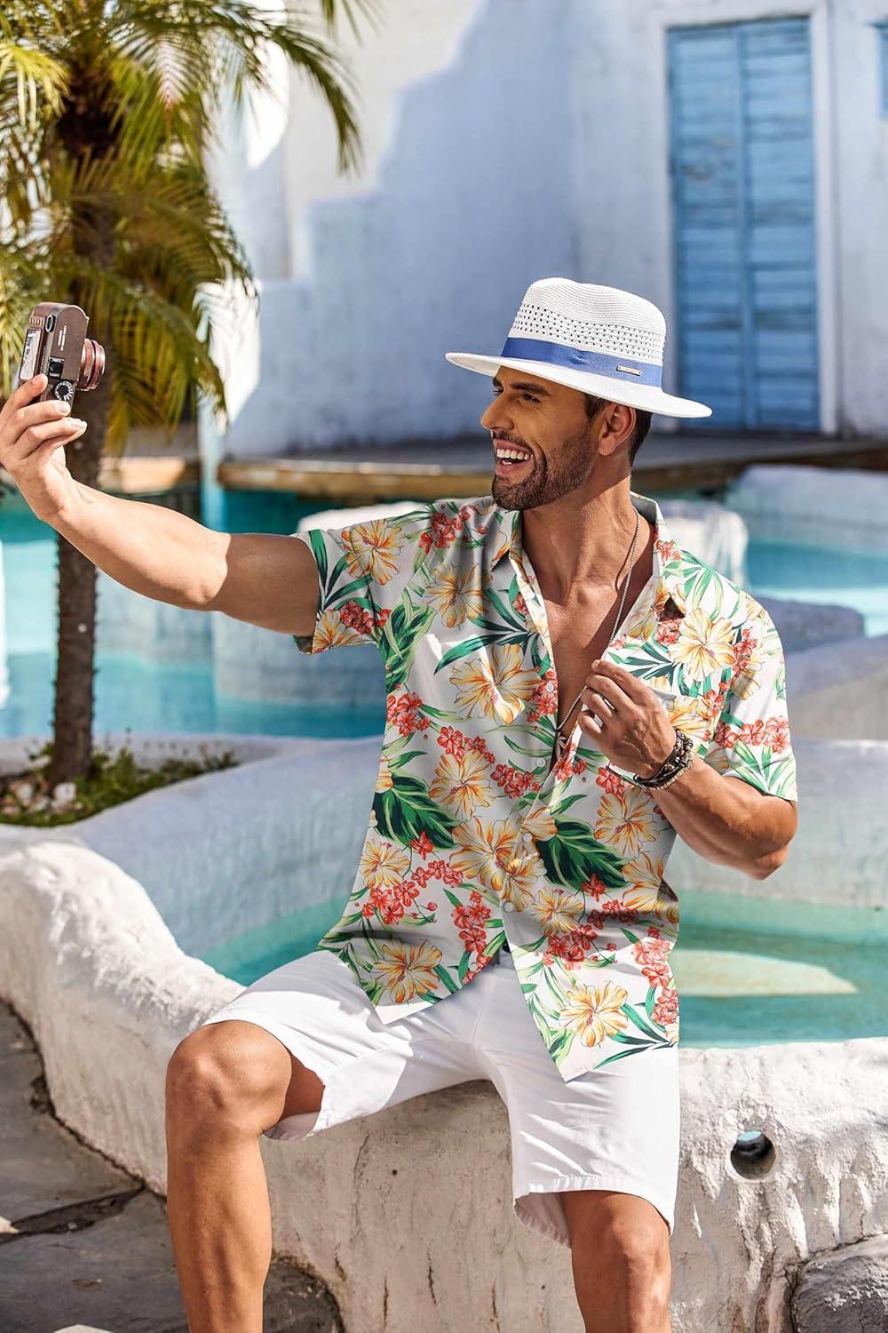 COOFANDY Men’s Hawaiian Shirt Short Sleeve Floral Button Down Shirts Tropical Holiday Beach Shirts(White – Flower)