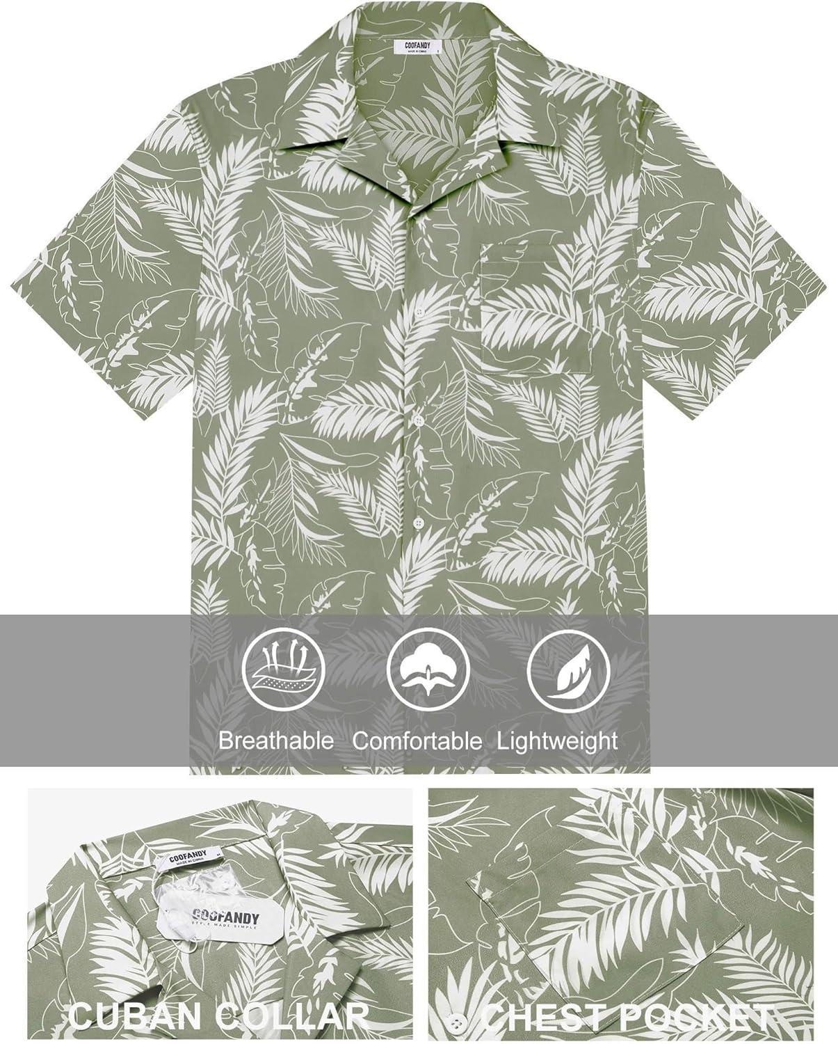 COOFANDY Mens Hawaiian Shirt Short Sleeve Floral Button Down Shirts Tropical Summer Beach Shirts Camp Collar Shirt(A- Palm Leaf)