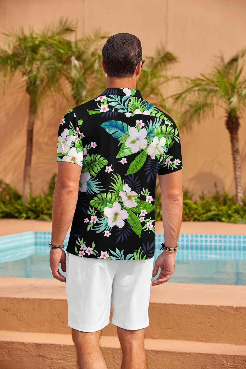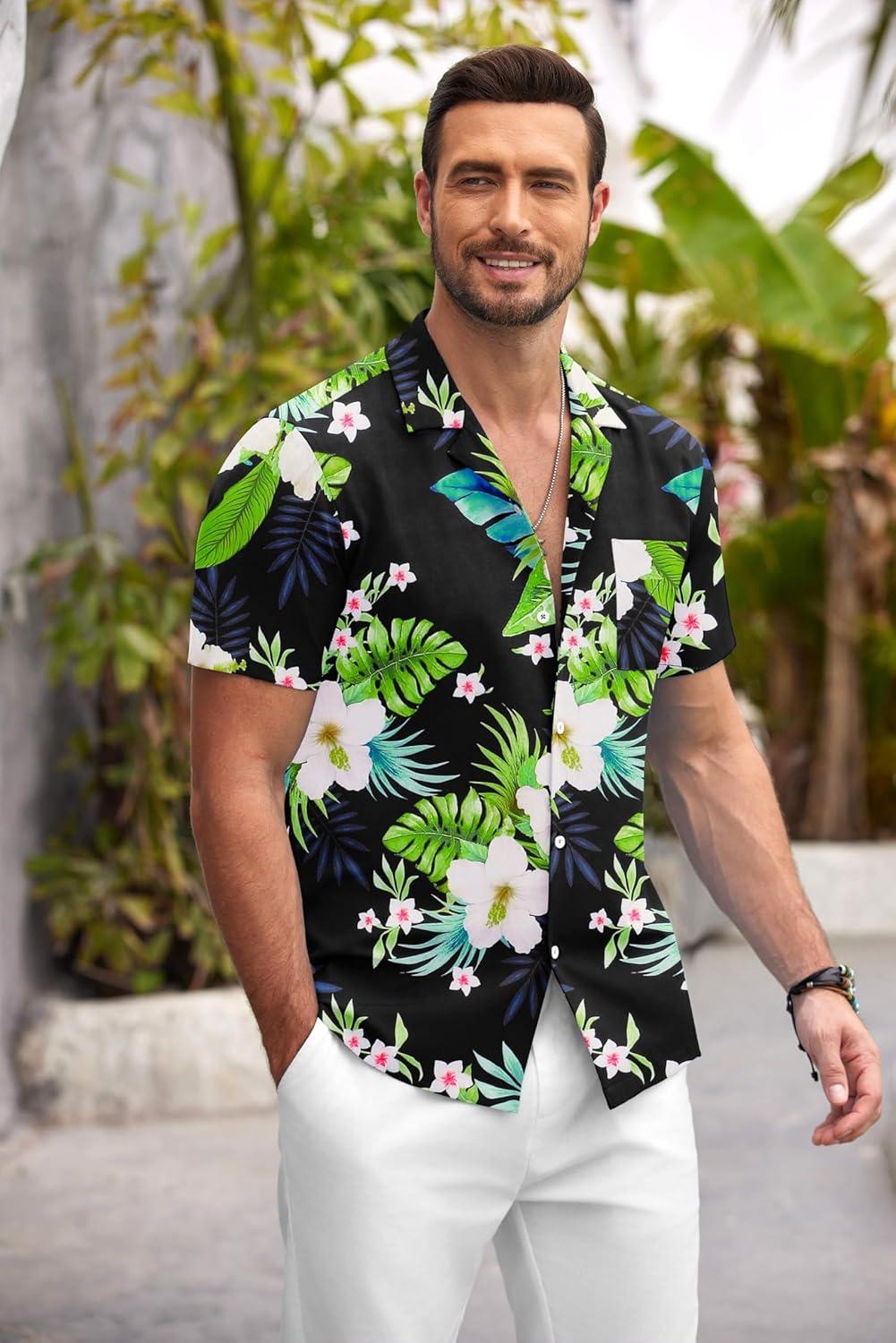 COOFANDY Mens Hawaiian Shirt Short Sleeve Floral Button Down Shirts Tropical Summer Beach Shirts Camp Collar Shirt(Black-hawaiian Floral)