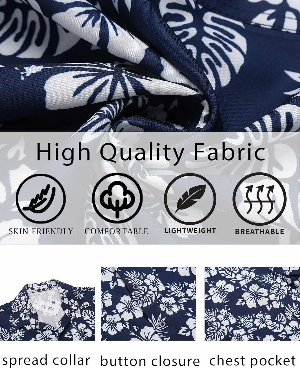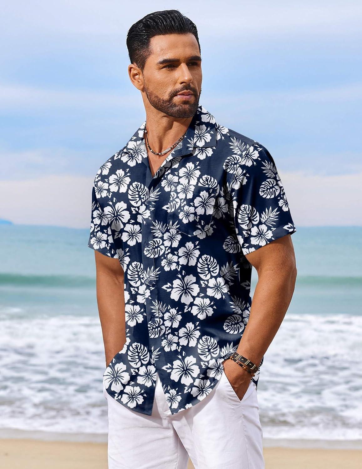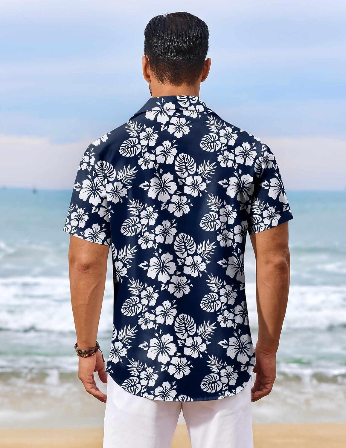 COOFANDY Men’s Hawaiian Shirt Short Sleeve Floral Button Down Shirts Tropical Vacation Beach Shirts with Pocket(Navy – White Flower)