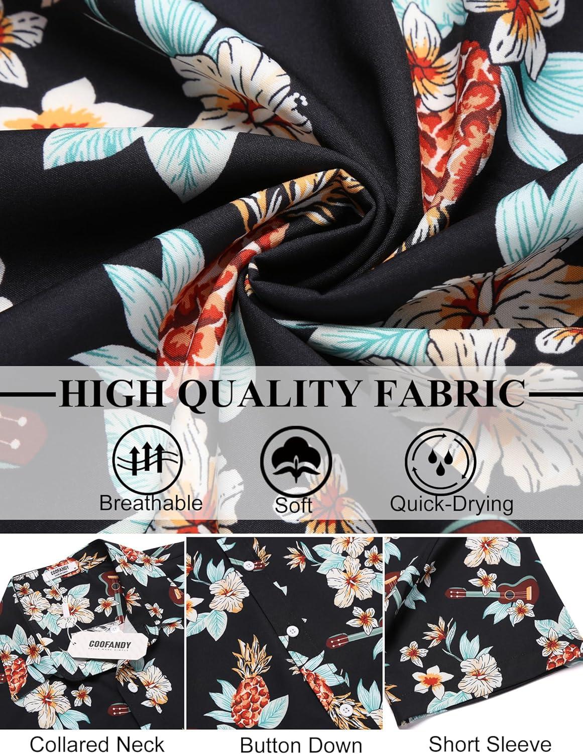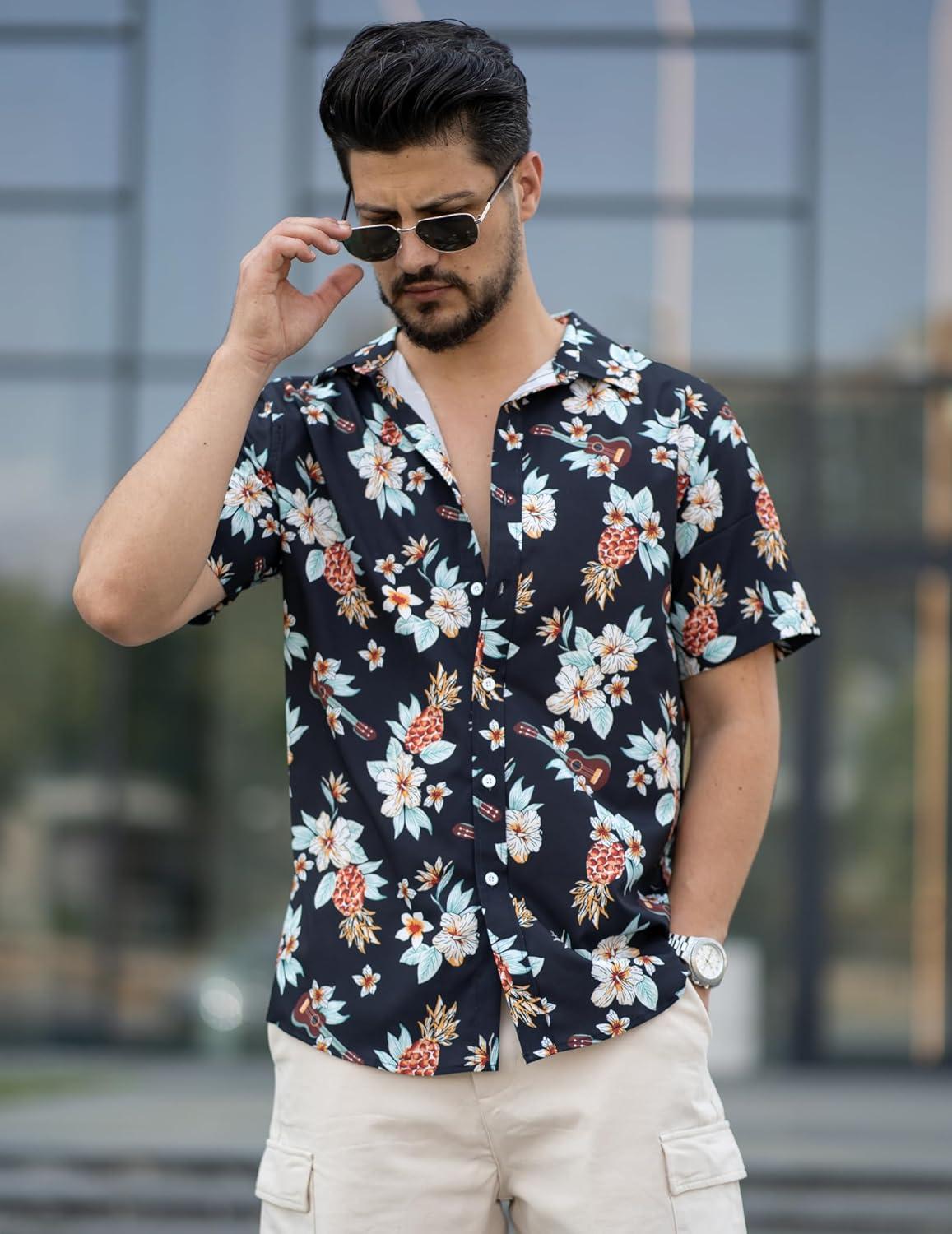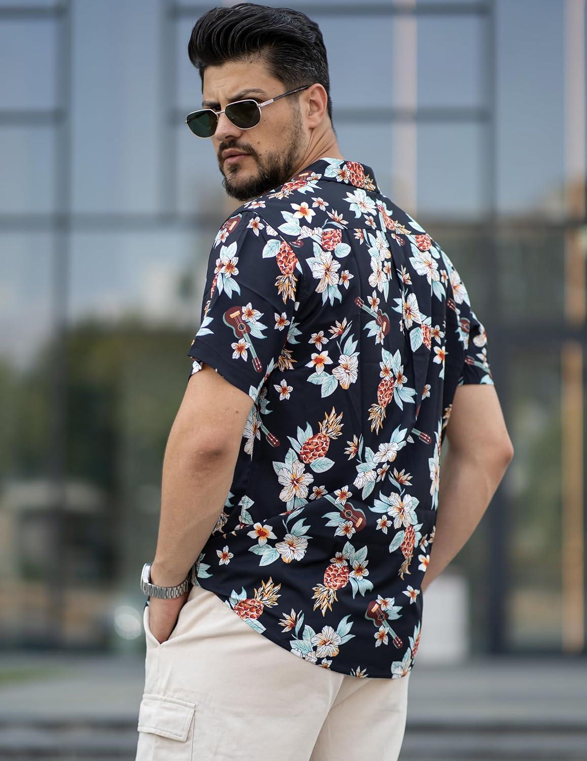 COOFANDY Mens Hawaiian Shirts Short Sleeve Button Down Aloha Shirt Casual Beach Clothes(Black- Guitar)