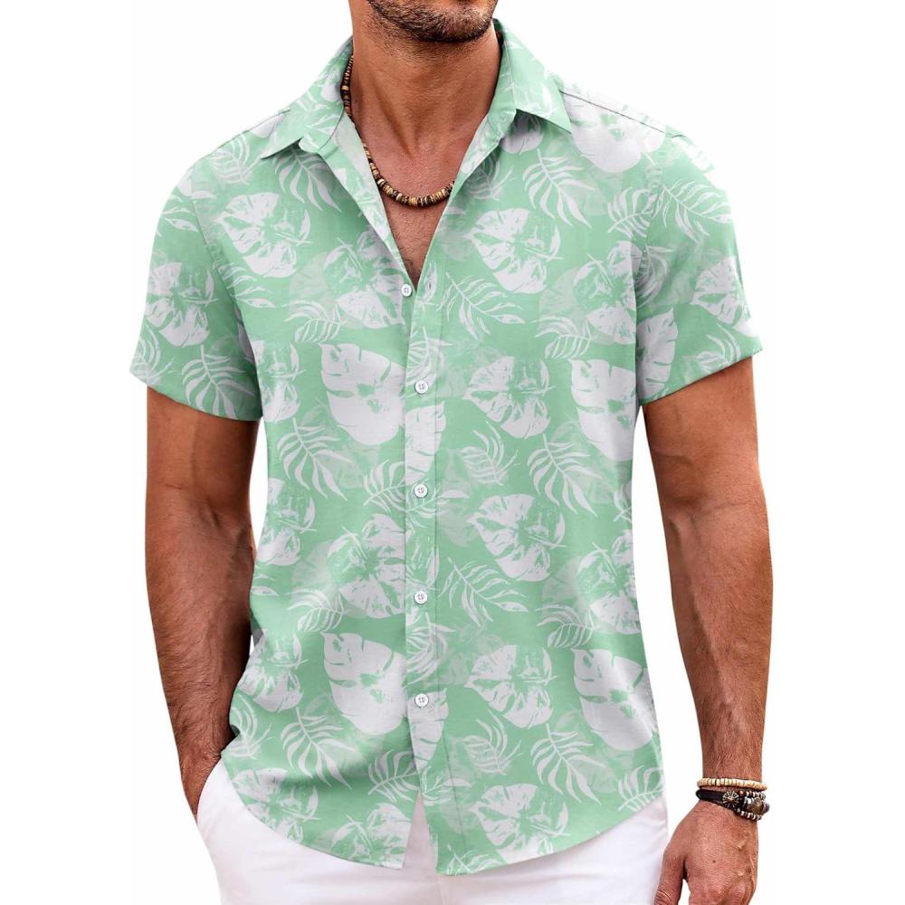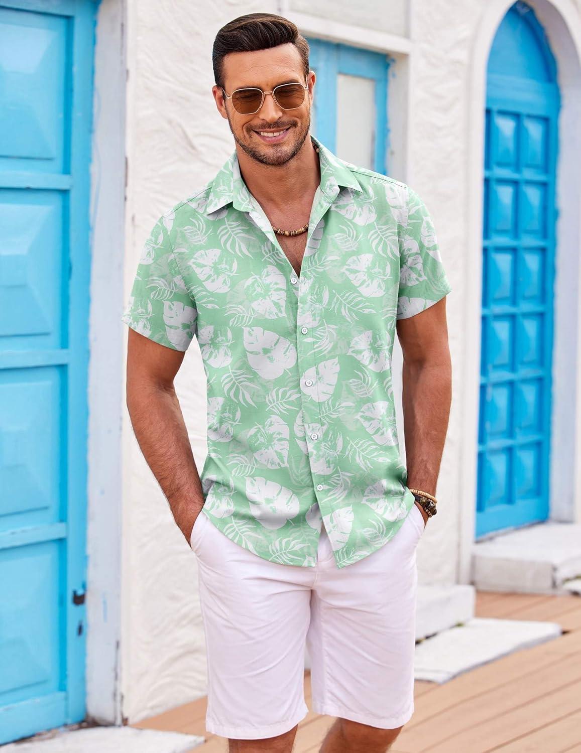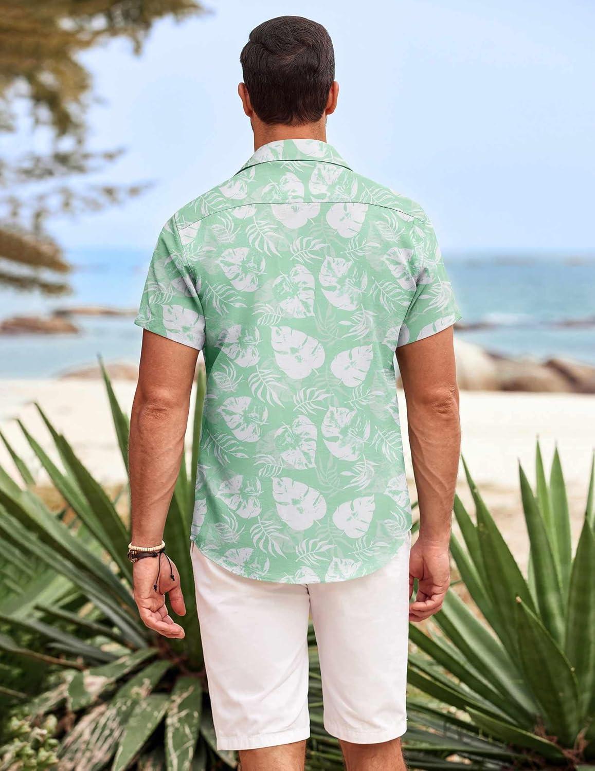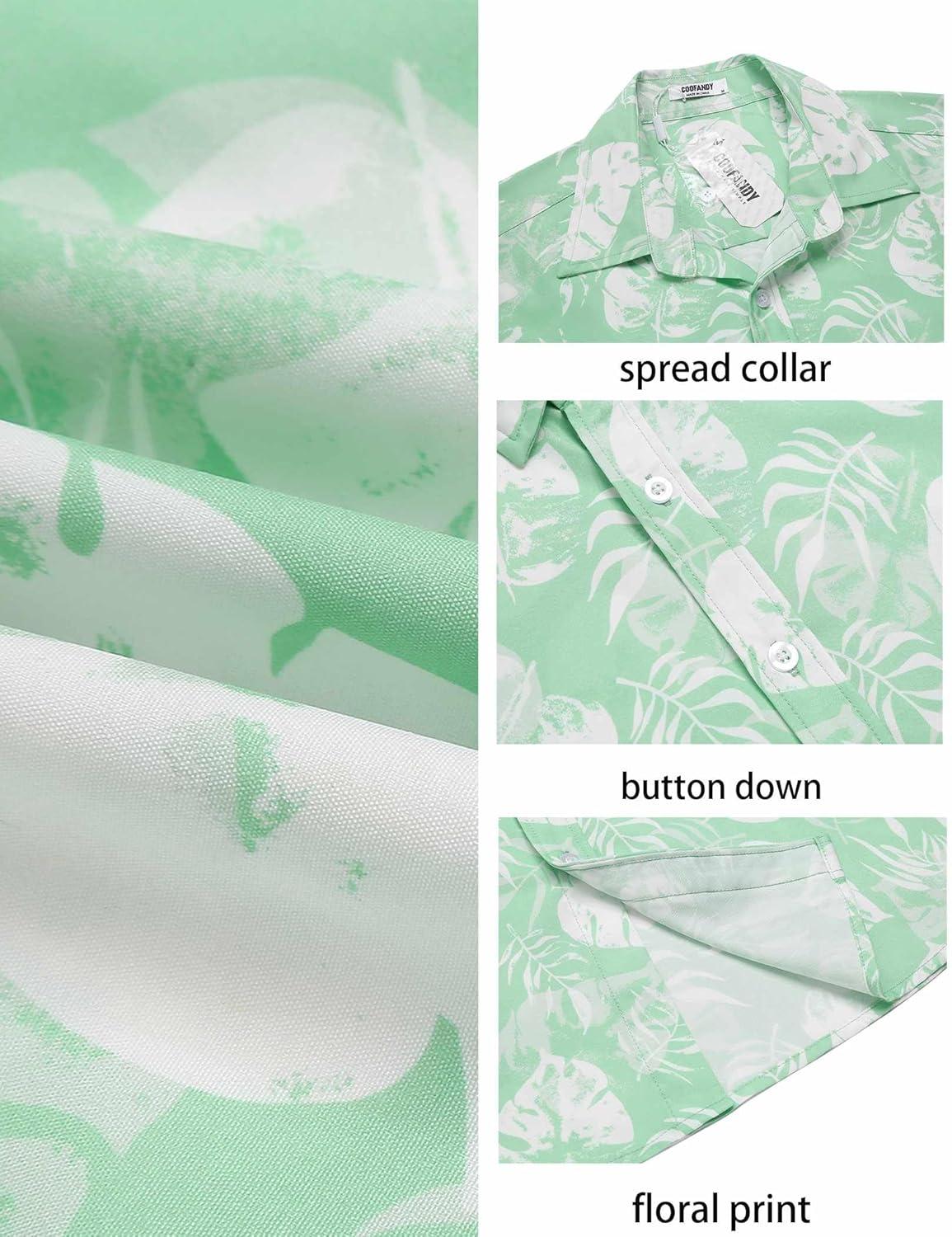 COOFANDY Mens Hawaiian Shirts Short Sleeve Casual Button Down Beach Vacation Summer Shirt(Green-palm Leave)