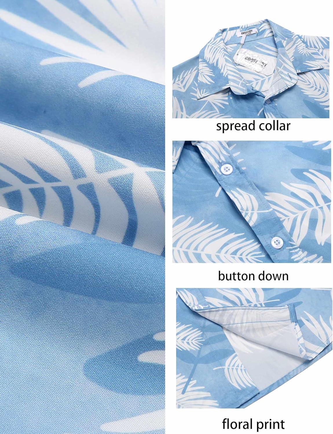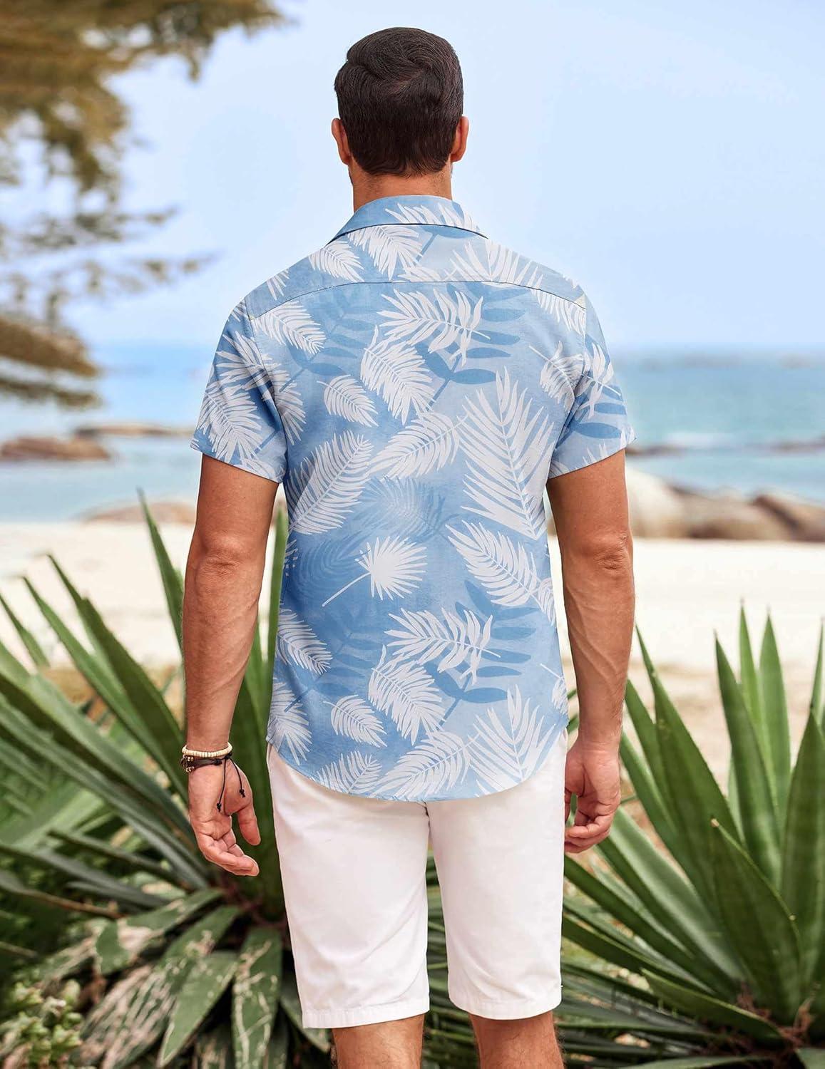 Don’t wait, get up to 50% off on COOFANDY Mens Hawaiian Shirts Short Sleeve Casual Button Down Beach Vacation Summer Shirt(Light Blue-white Palm Leaf) during our end-of-season sale event.