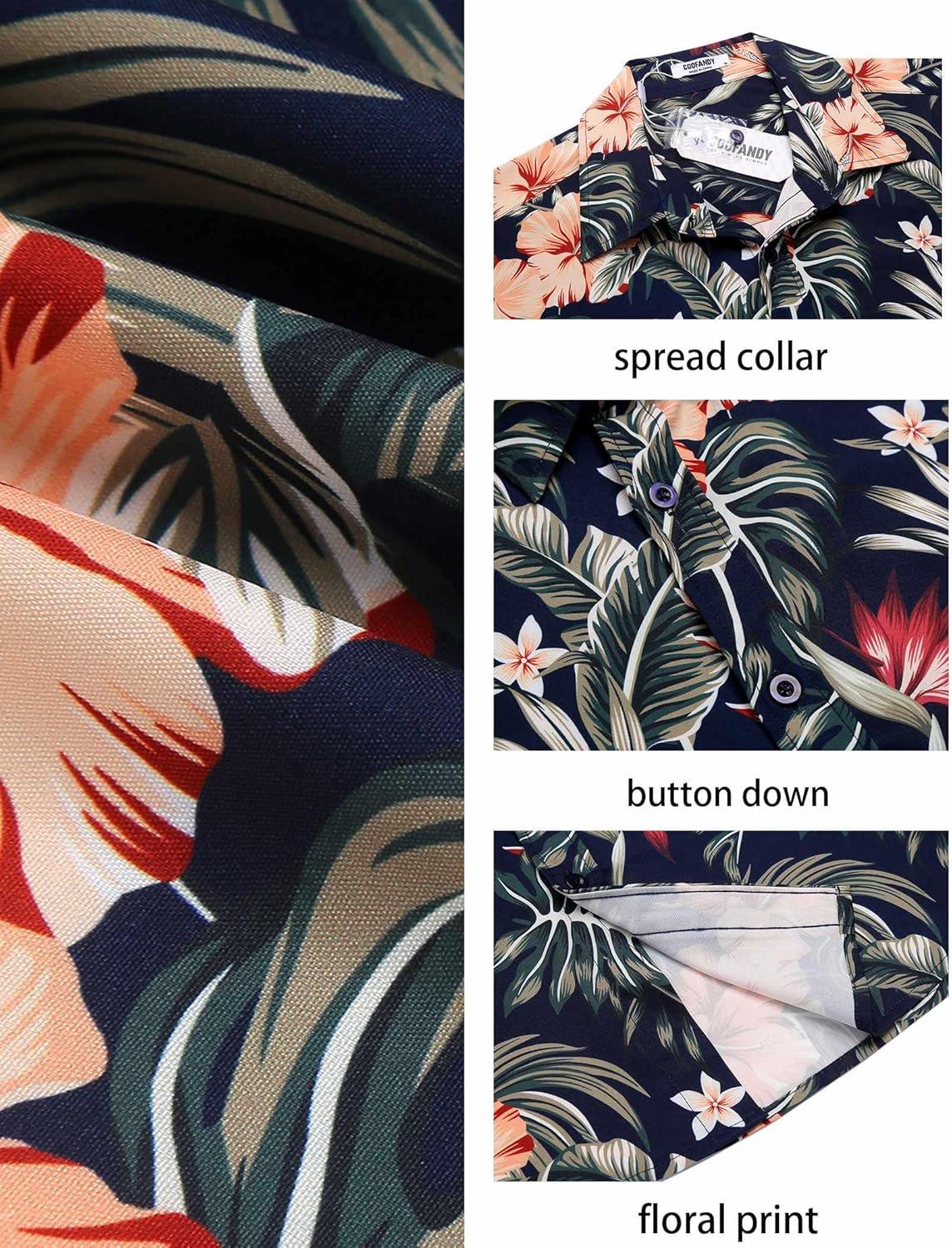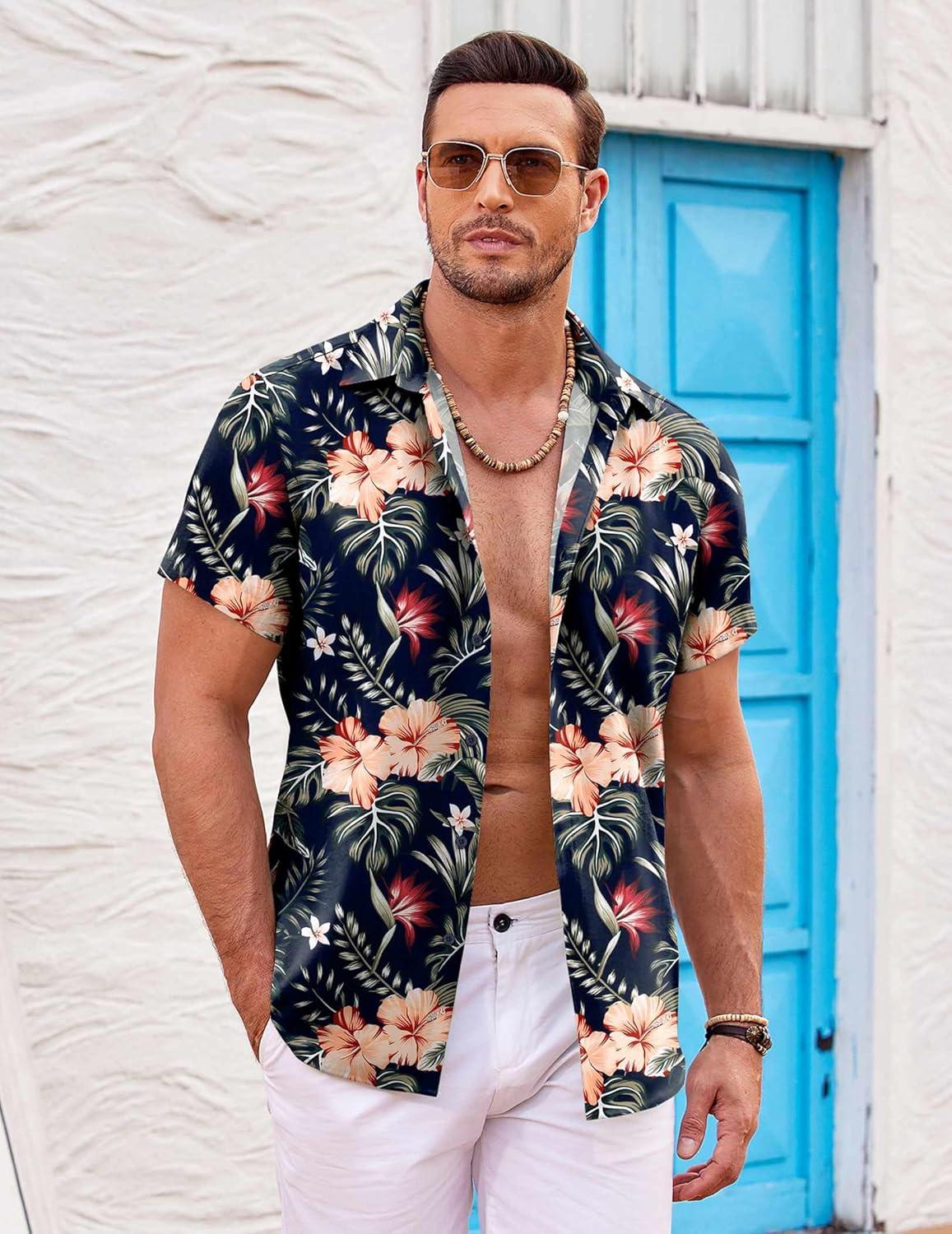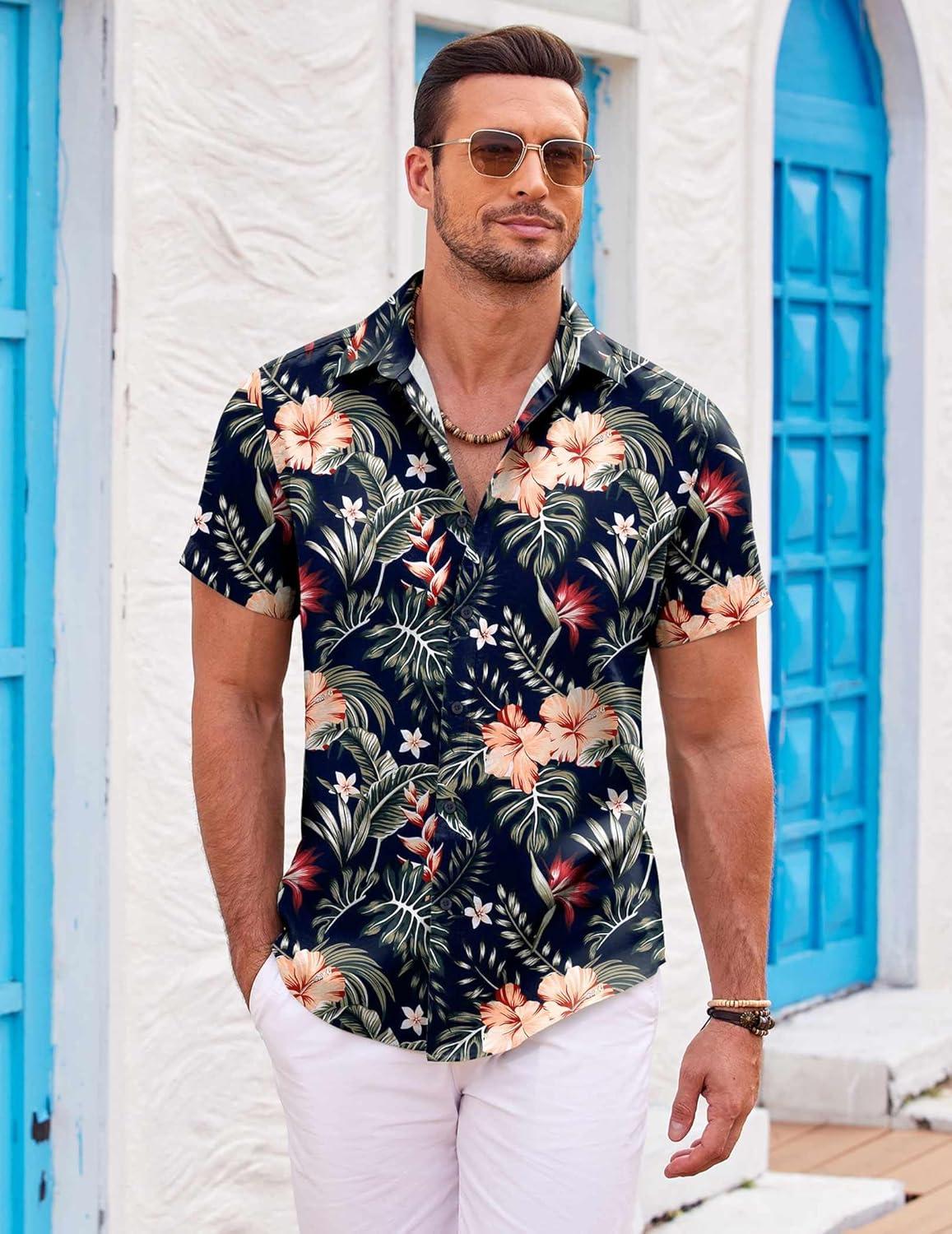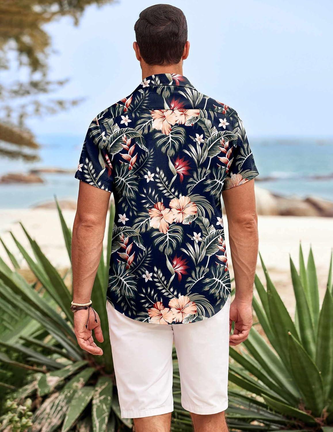 COOFANDY Mens Hawaiian Shirts Short Sleeve Casual Button Down Beach Vacation Summer Shirt(Navy Blue-tropical Floral)