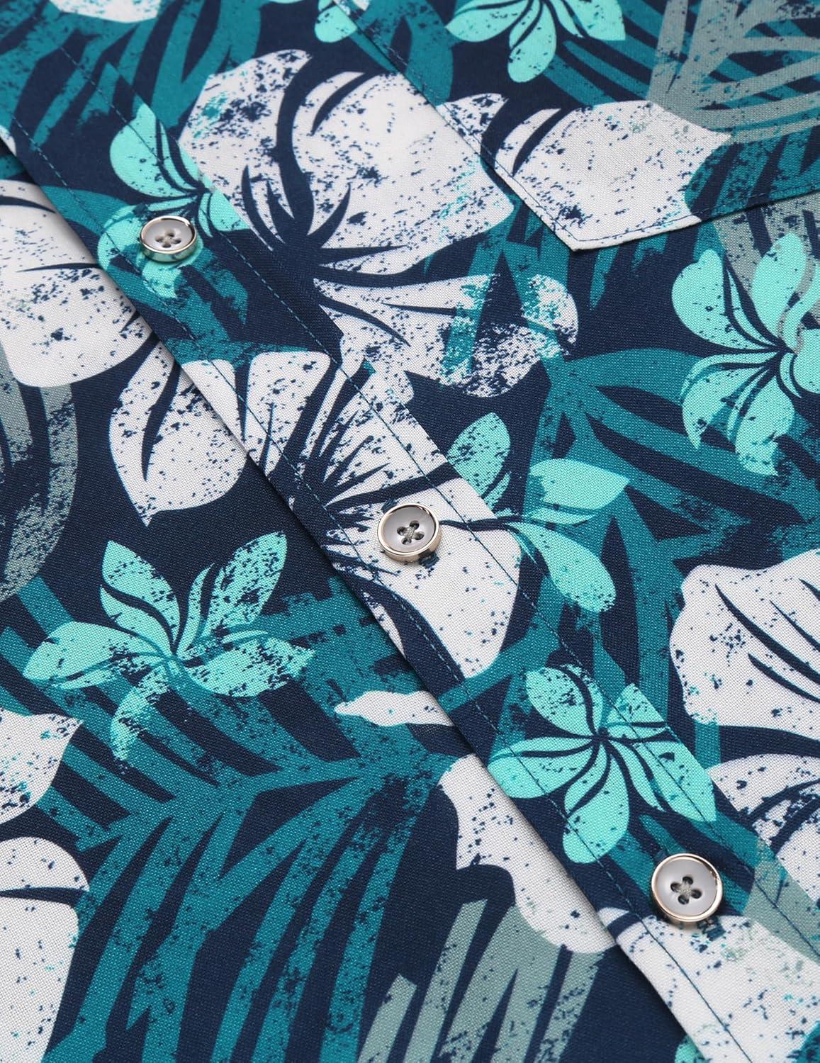 COOFANDY Mens Hawaiian Shirts Short Sleeve Casual Button Down Tropical Beach Shirt(Green / White Floral)