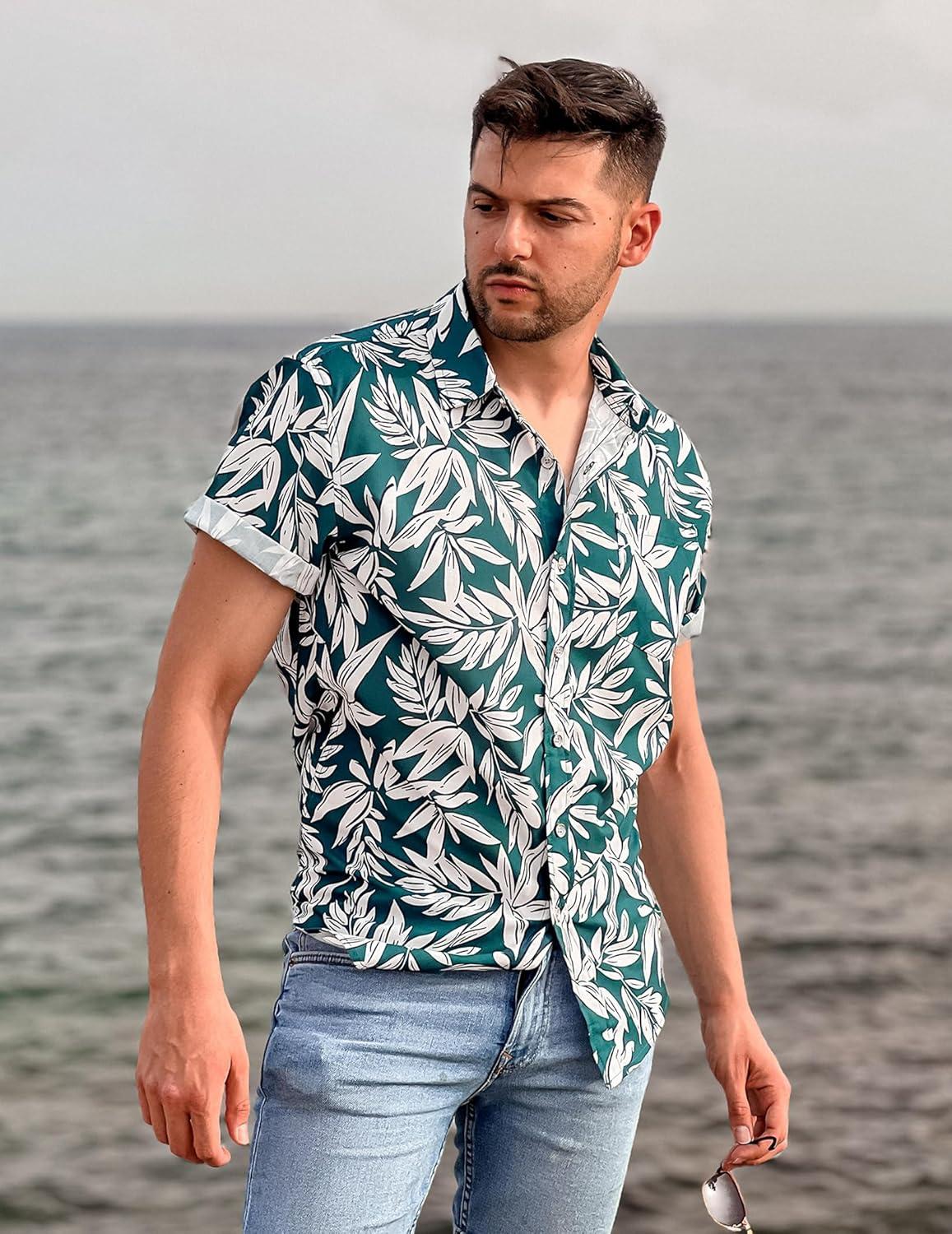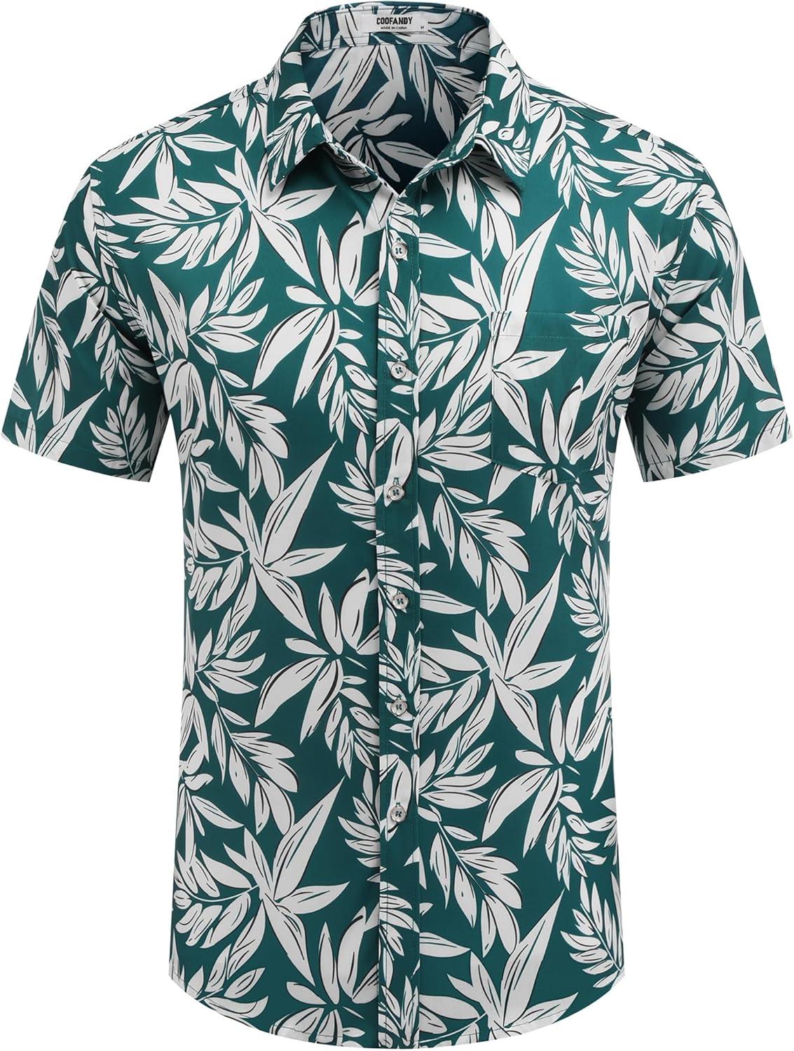 Get your hands on our exclusive COOFANDY Mens Hawaiian Shirts Short Sleeve Casual Button Down Tropical Beach Shirt(Green / White Leaf) collection, now at a discounted price.