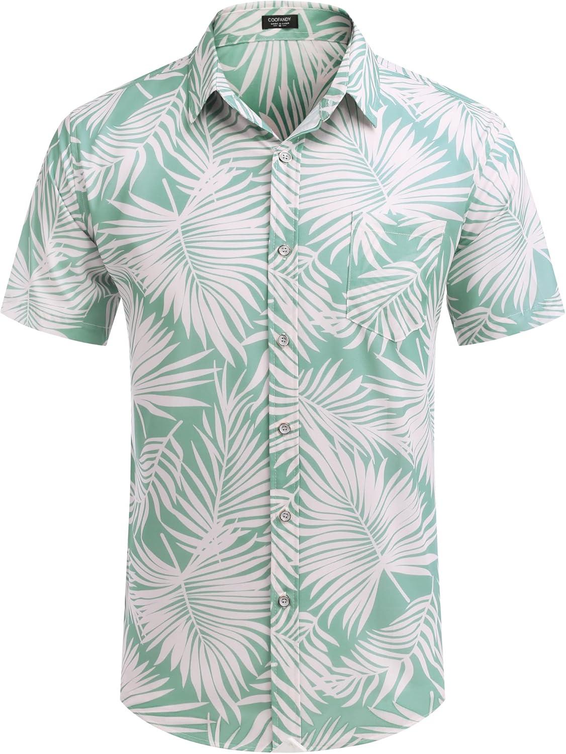 Get more for your money with our exclusive bundle deals on COOFANDY Mens Hawaiian Shirts Short Sleeve Casual Button Down Tropical Beach Shirt(Light Green / White Leaf) and accessories.
