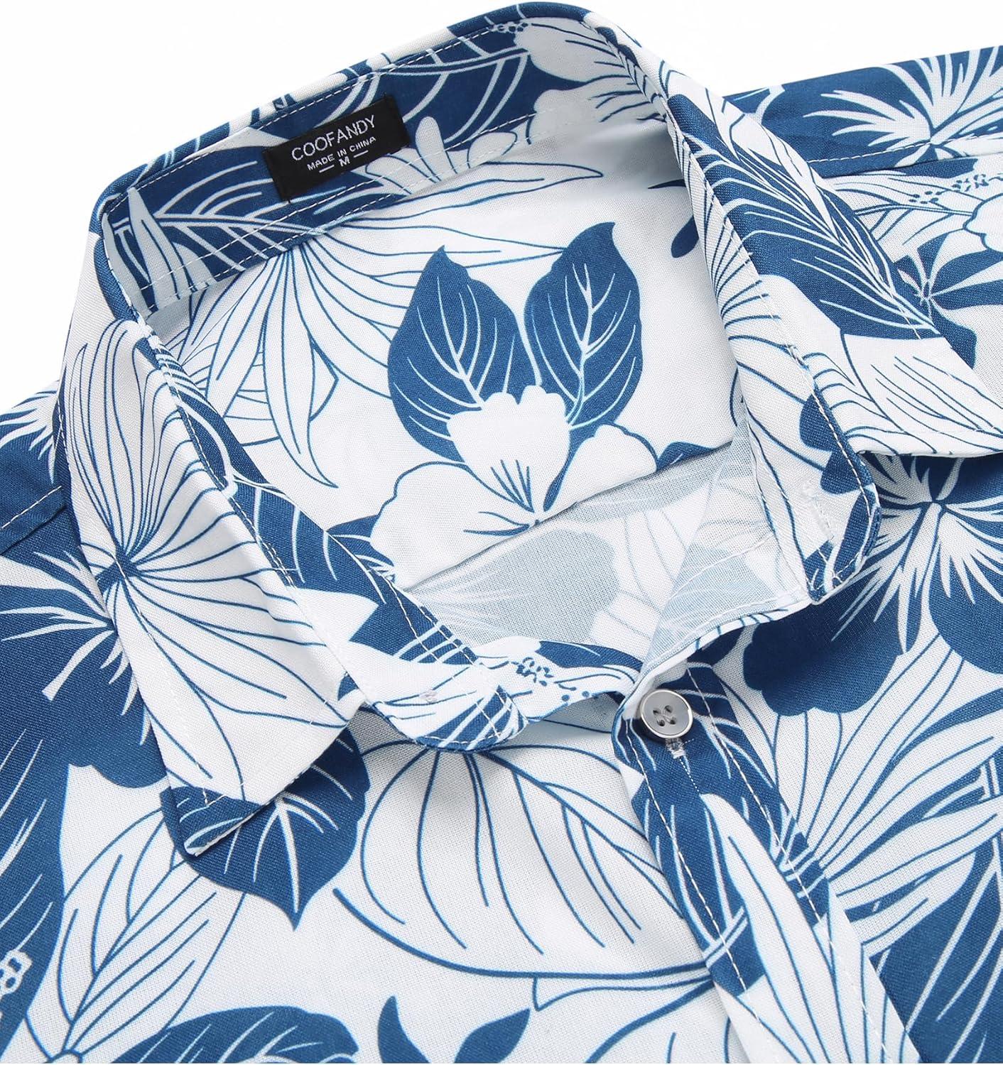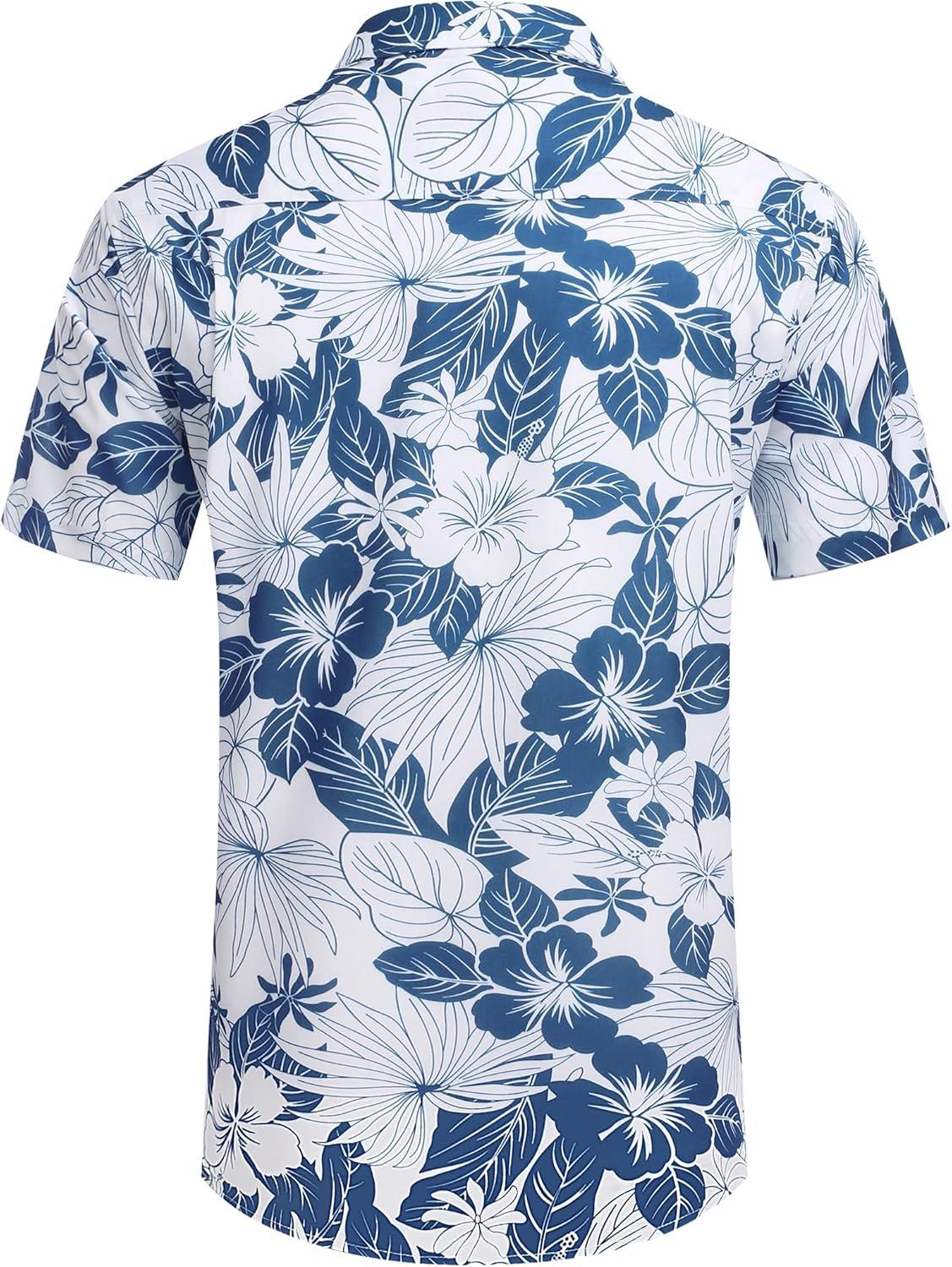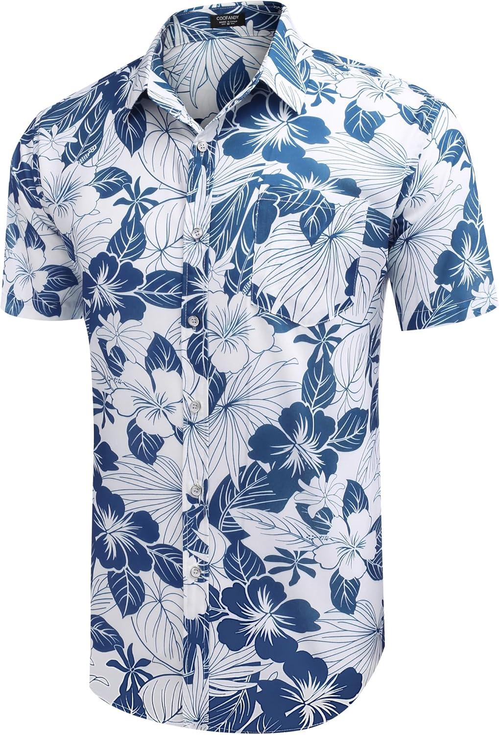 COOFANDY Mens Hawaiian Shirts Short Sleeve Casual Button Down Tropical Beach Shirt(White / Blue Floral)