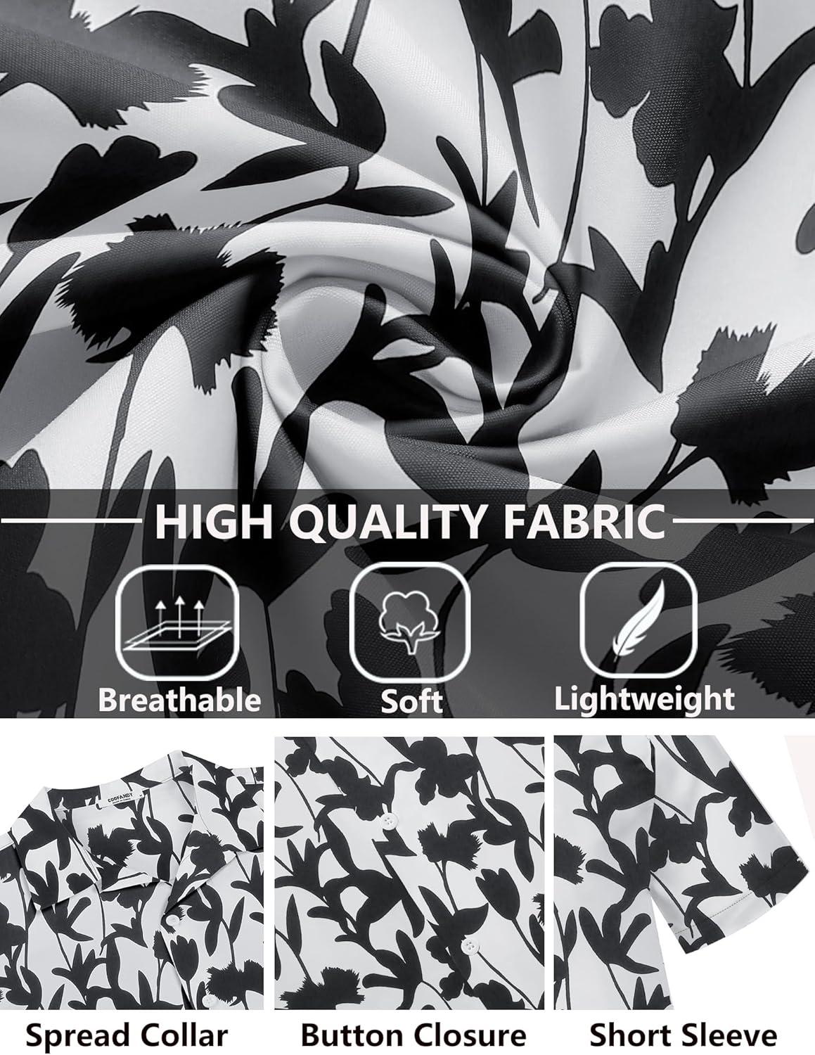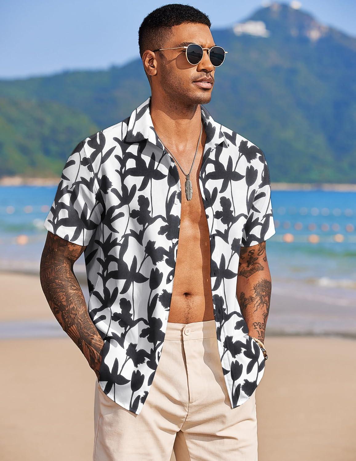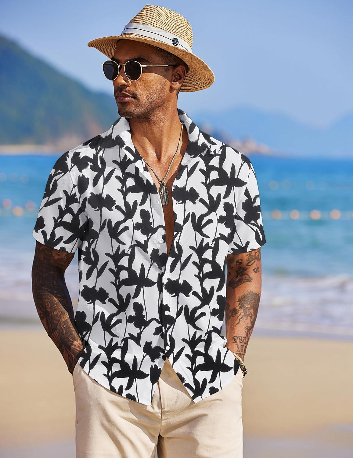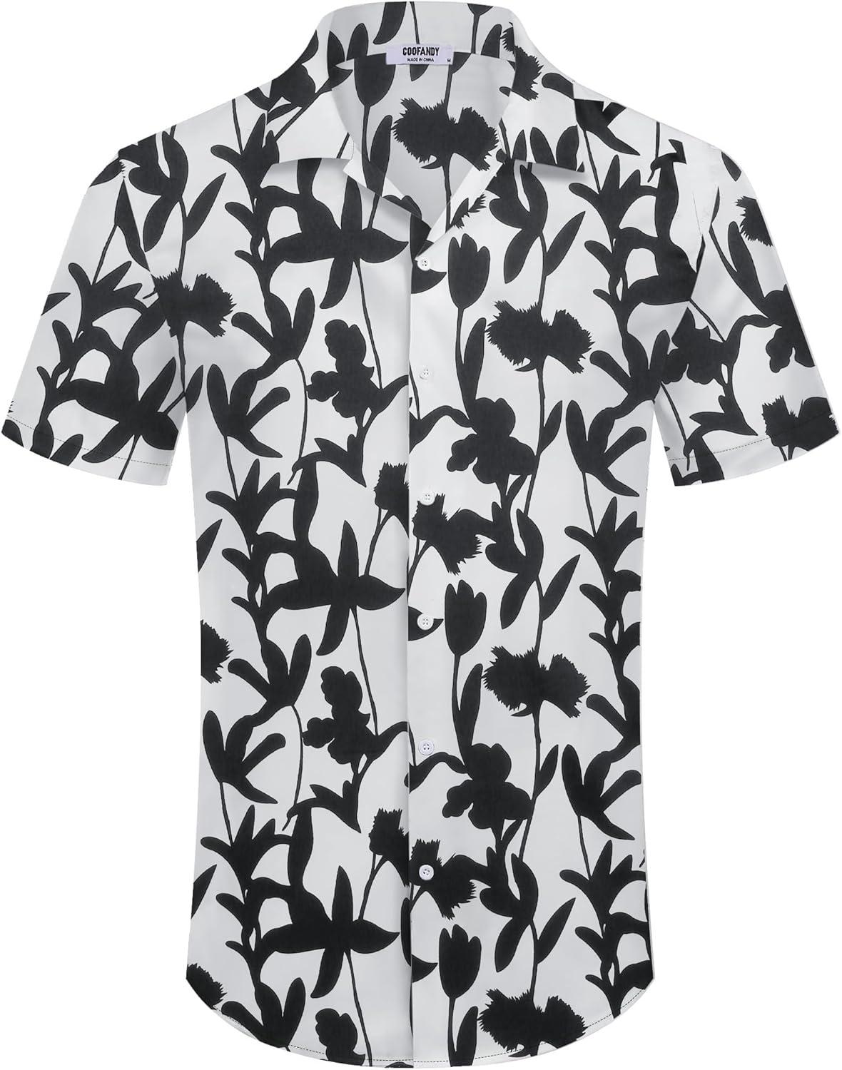 COOFANDY Mens Hawaiian Shirts Short Sleeve Tropical Button Down Shirt Floral Shirt Summer Beach Shirt(Black Flower&white)