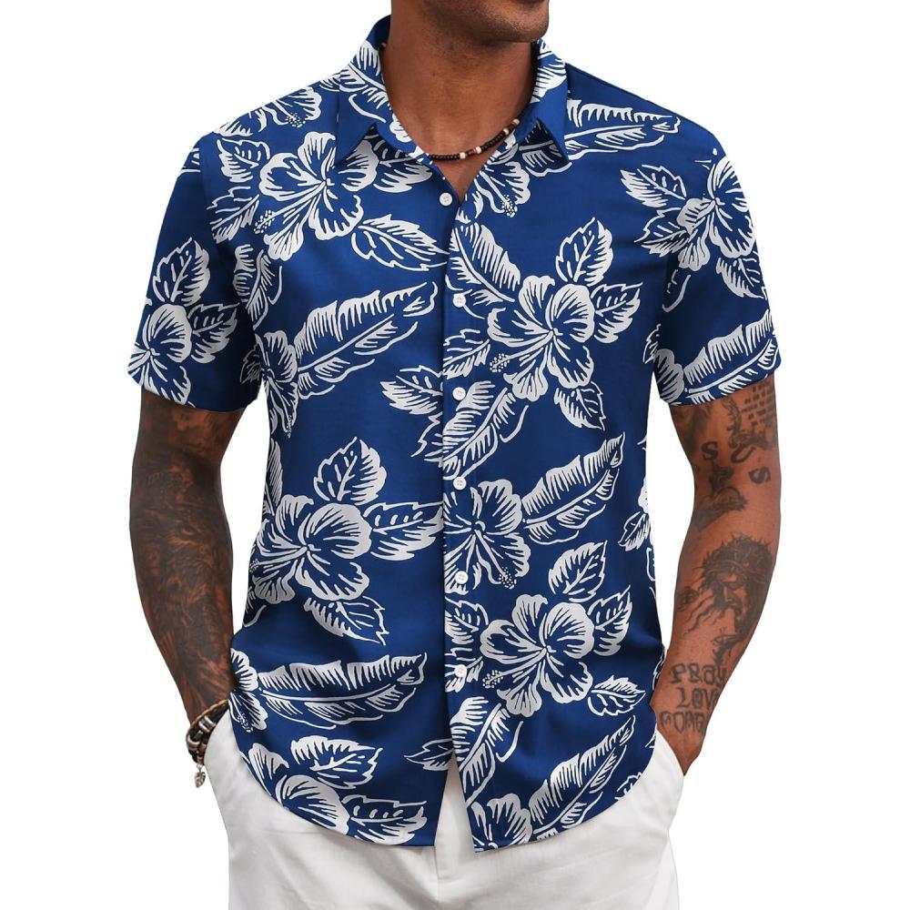 COOFANDY Mens Hawaiian Shirts Short Sleeve Tropical Button Down Shirt Floral Shirt Summer Beach Shirt(Flowers&leaf Navy)
