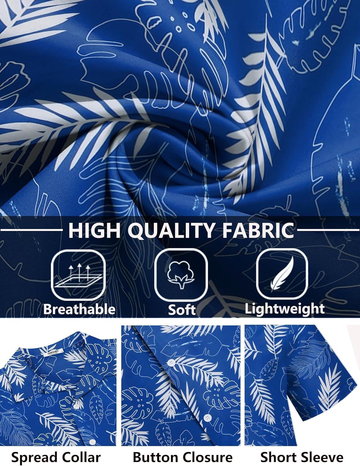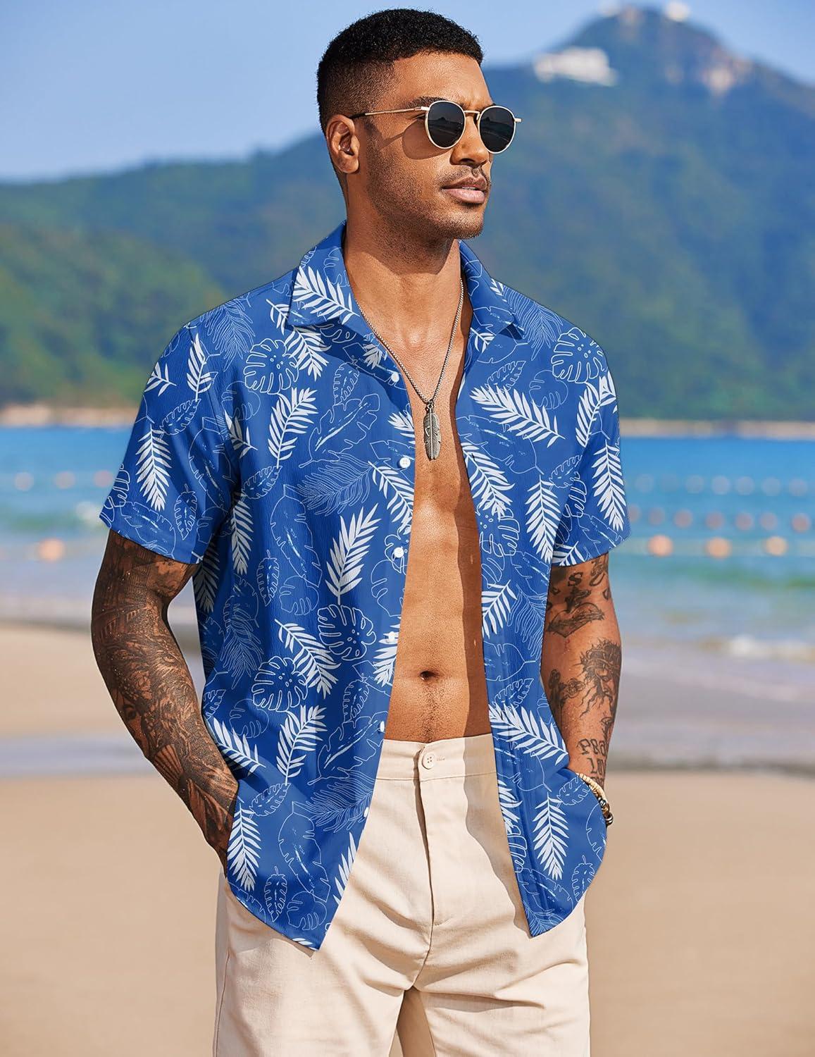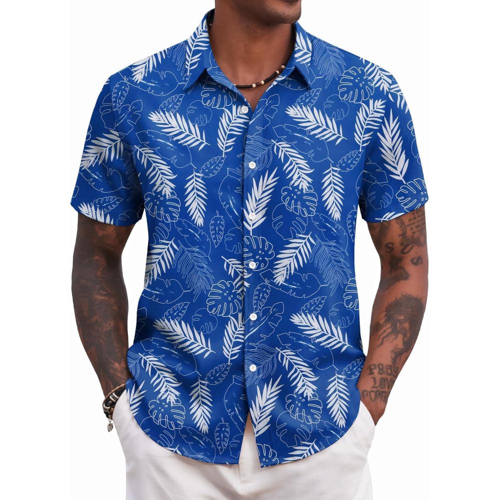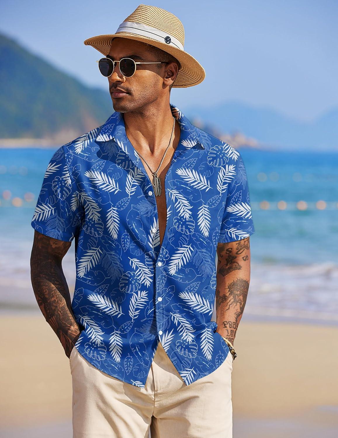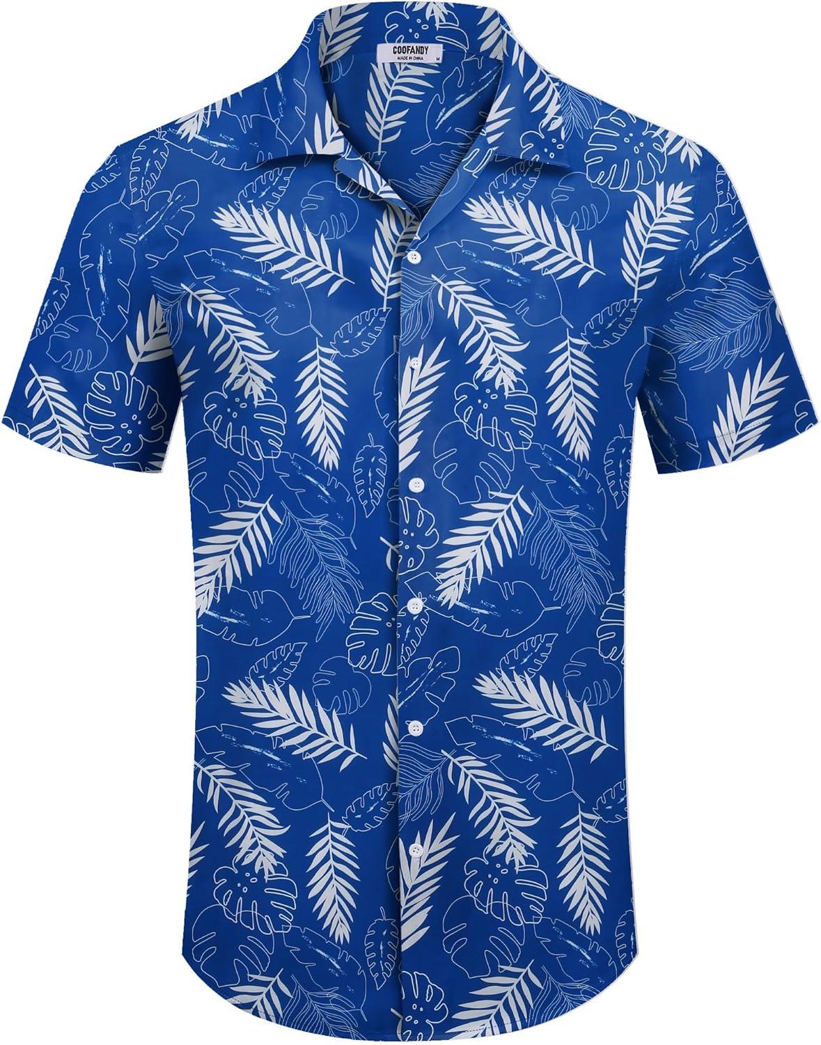 COOFANDY Mens Hawaiian Shirts Short Sleeve Tropical Button Down Shirt Floral Shirt Summer Beach Shirt(Palm Leaf Blue)