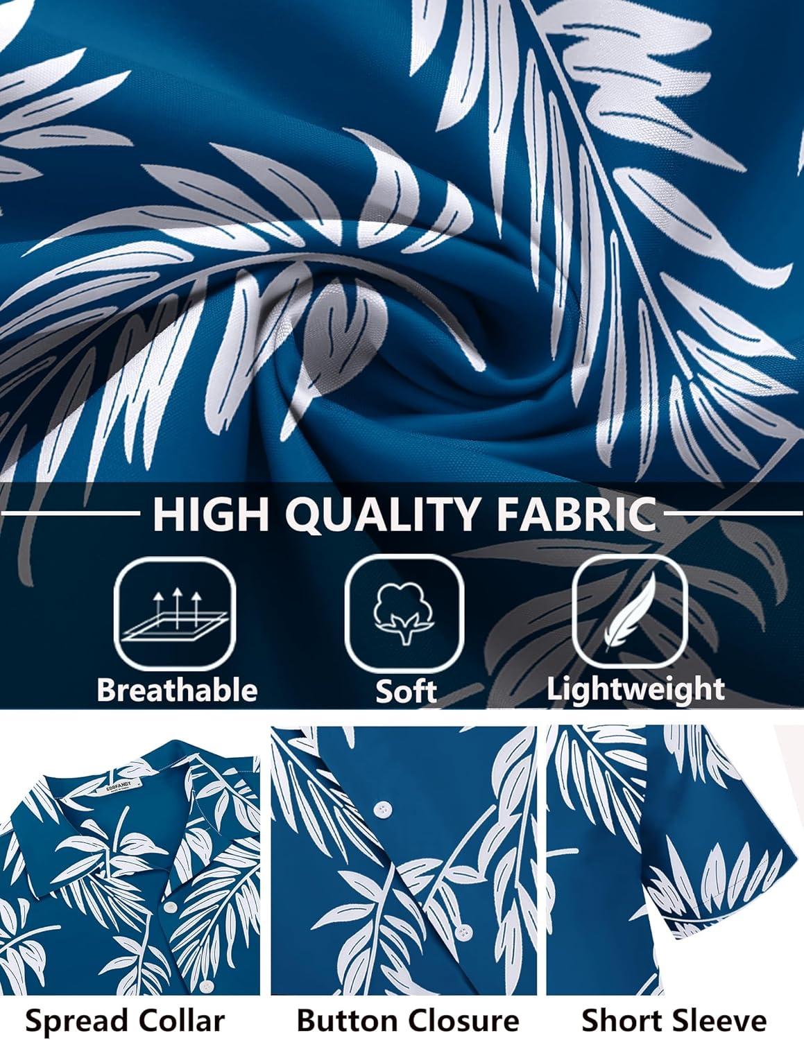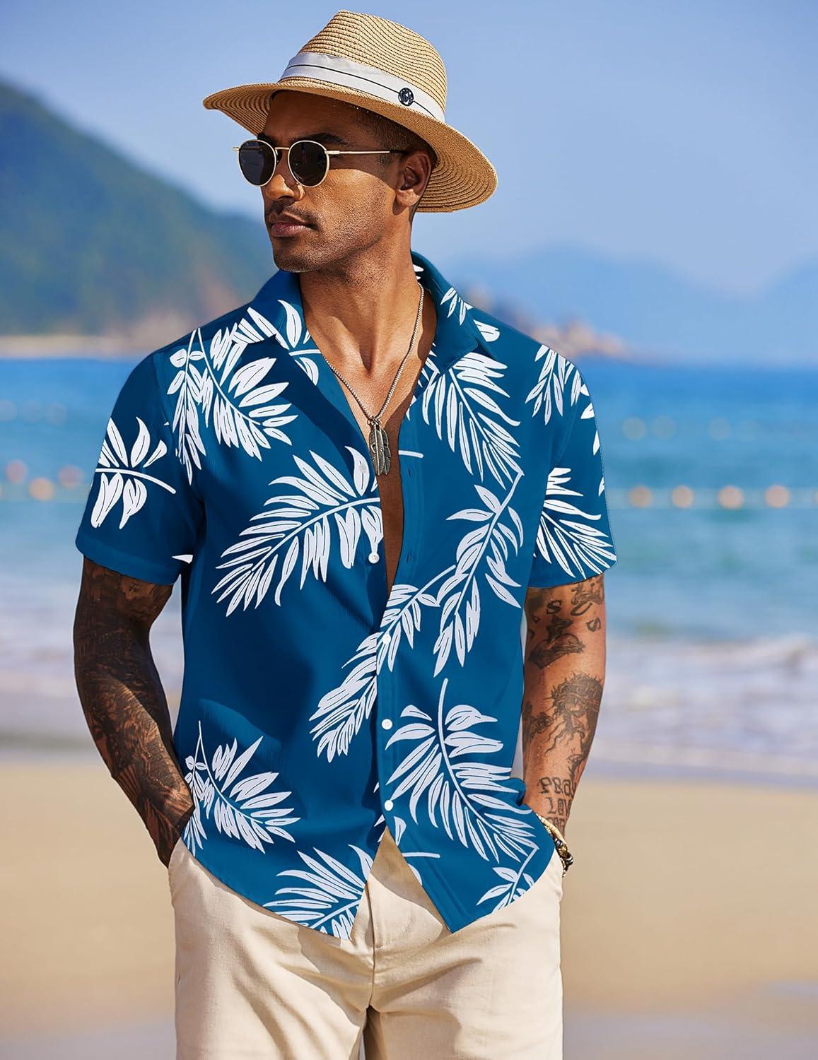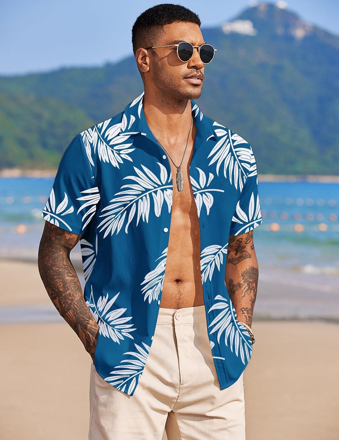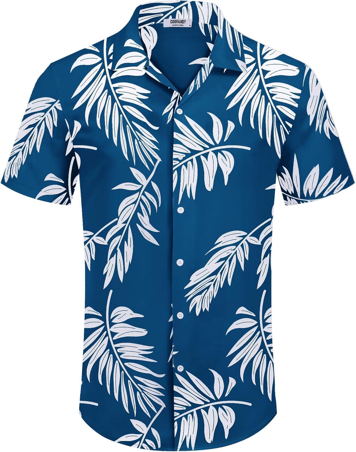 COOFANDY Mens Hawaiian Shirts Short Sleeve Tropical Button Down Shirt Floral Shirt Summer Beach Shirt(Palm Leaf Blue)
