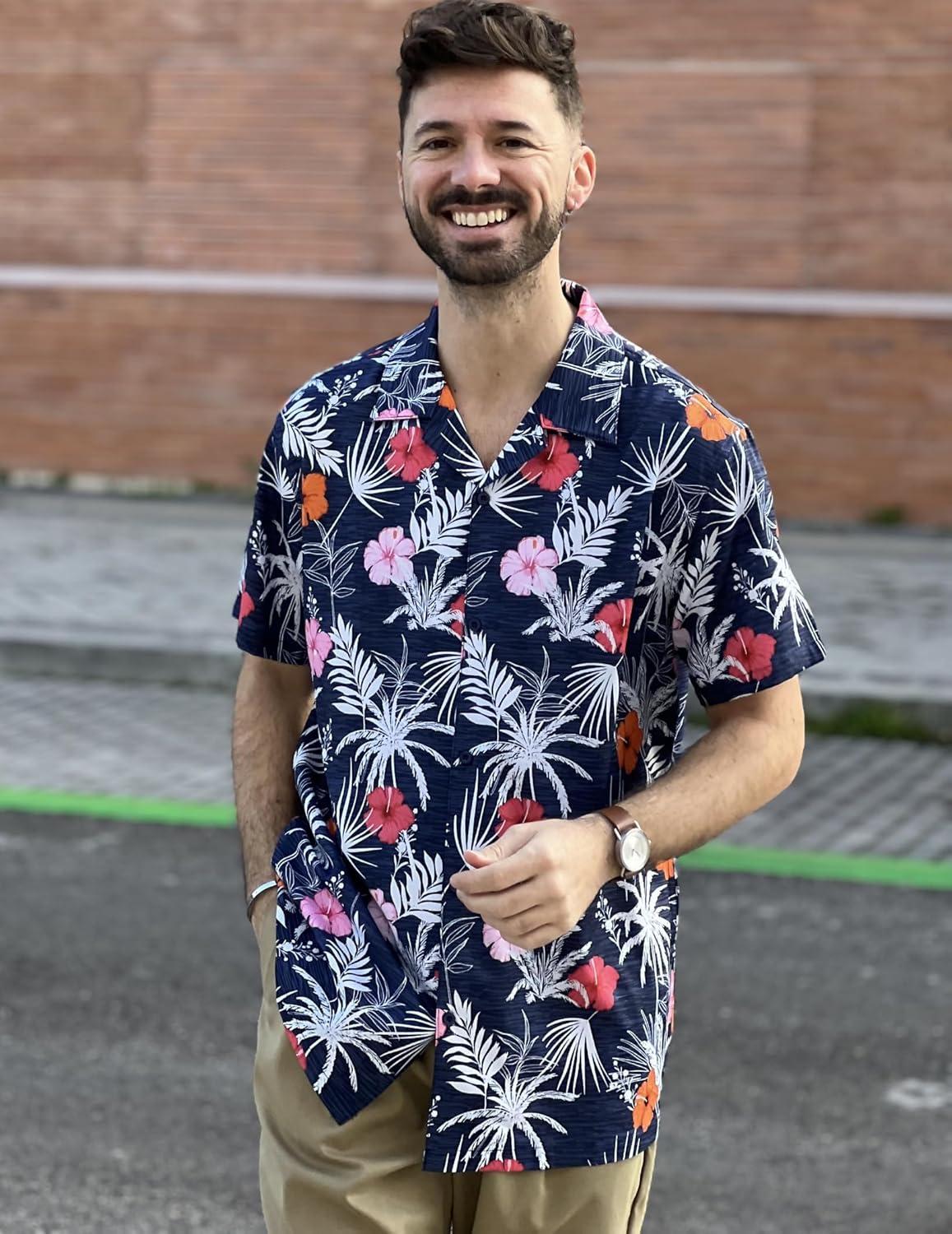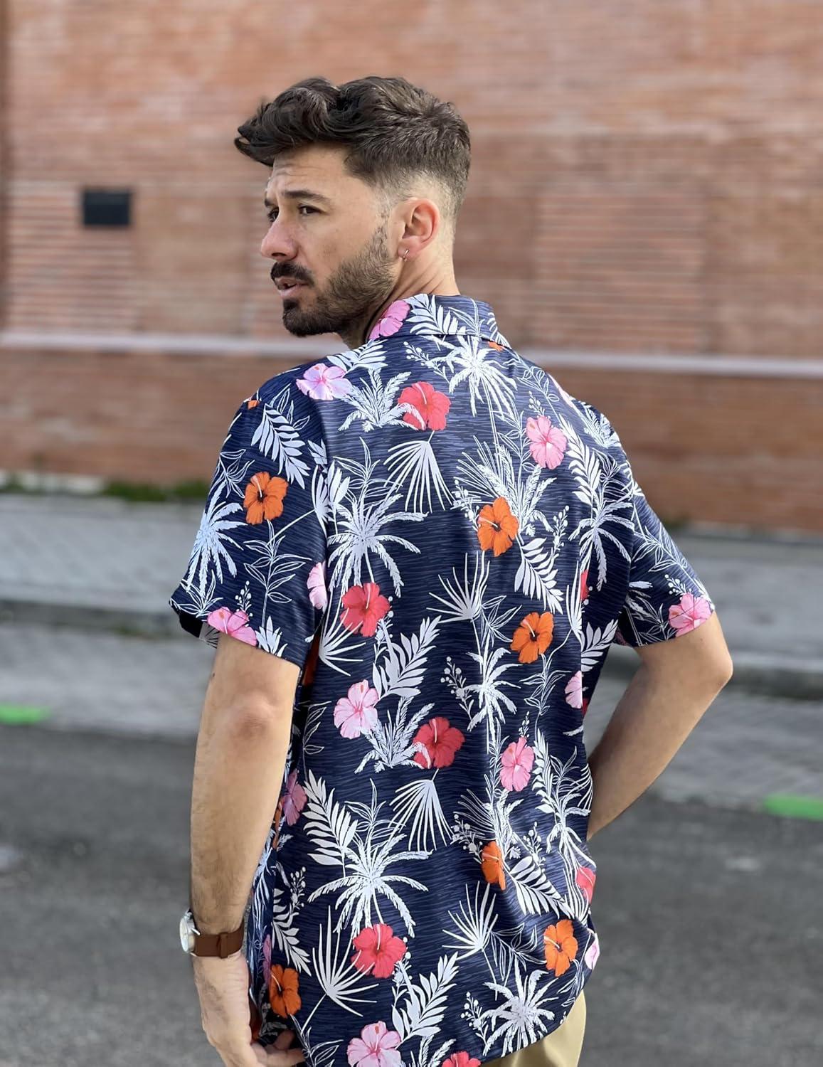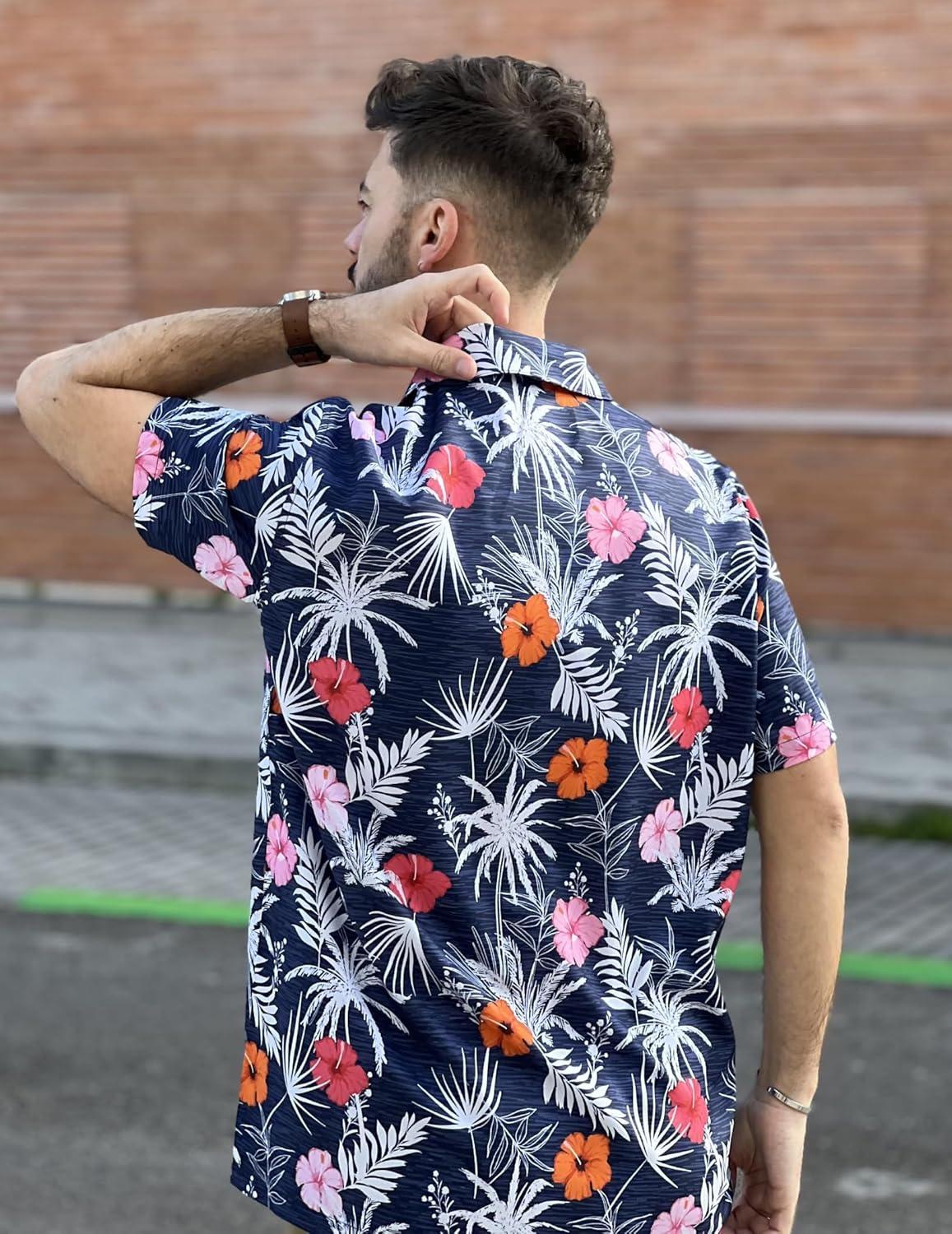 COOFANDY Mens Hawaiian Short Sleeve Shirt Casual Button Down Summer Beach Vacation Shirt Tropical Floral Aloha Shirts(Hibiscus Leaves-blue)