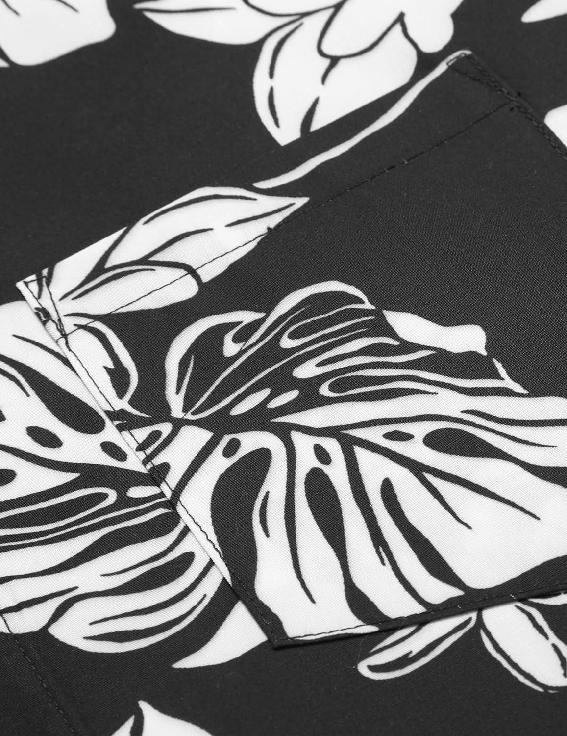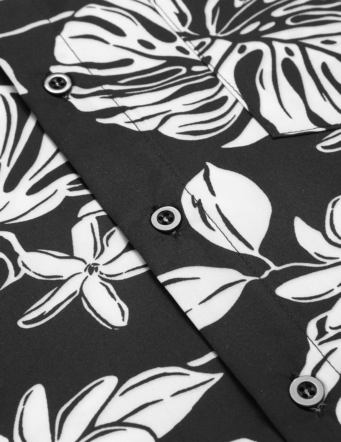 COOFANDY Mens Hawaiian Tropical Shirt Short Sleeve Casual Button Down Floral Summer Beach Shirts with Pocket(Black Leaf & Flower)
