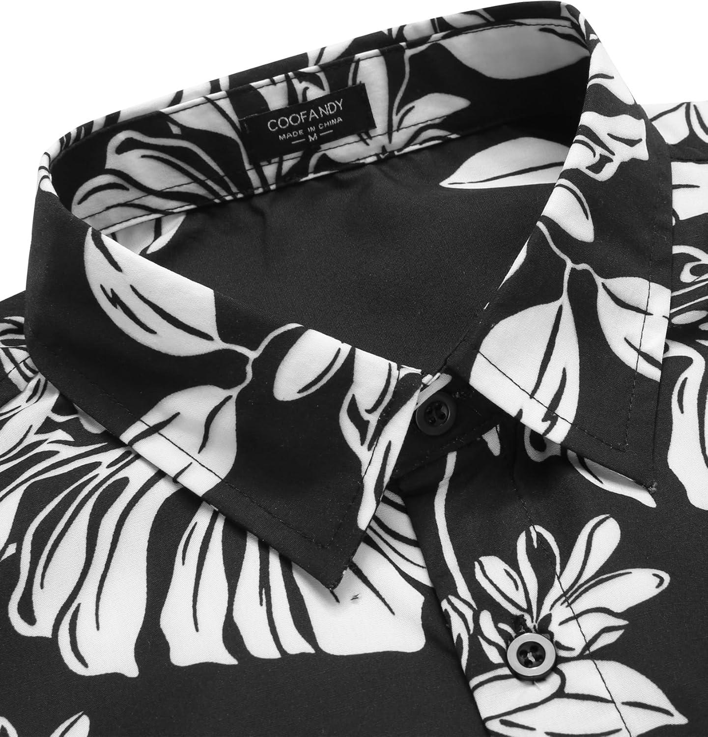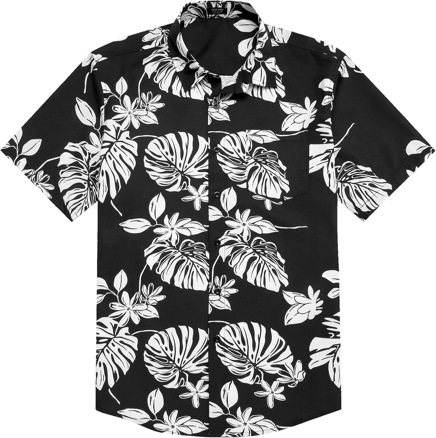COOFANDY Mens Hawaiian Tropical Shirt Short Sleeve Casual Button Down Floral Summer Beach Shirts with Pocket(B-black Leaves)