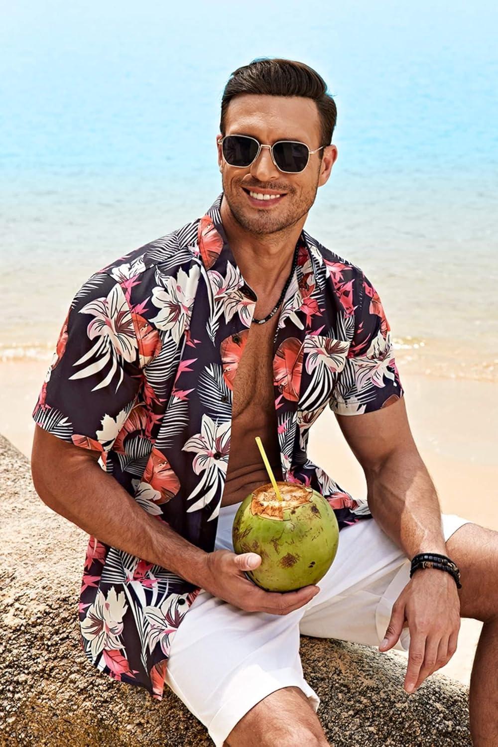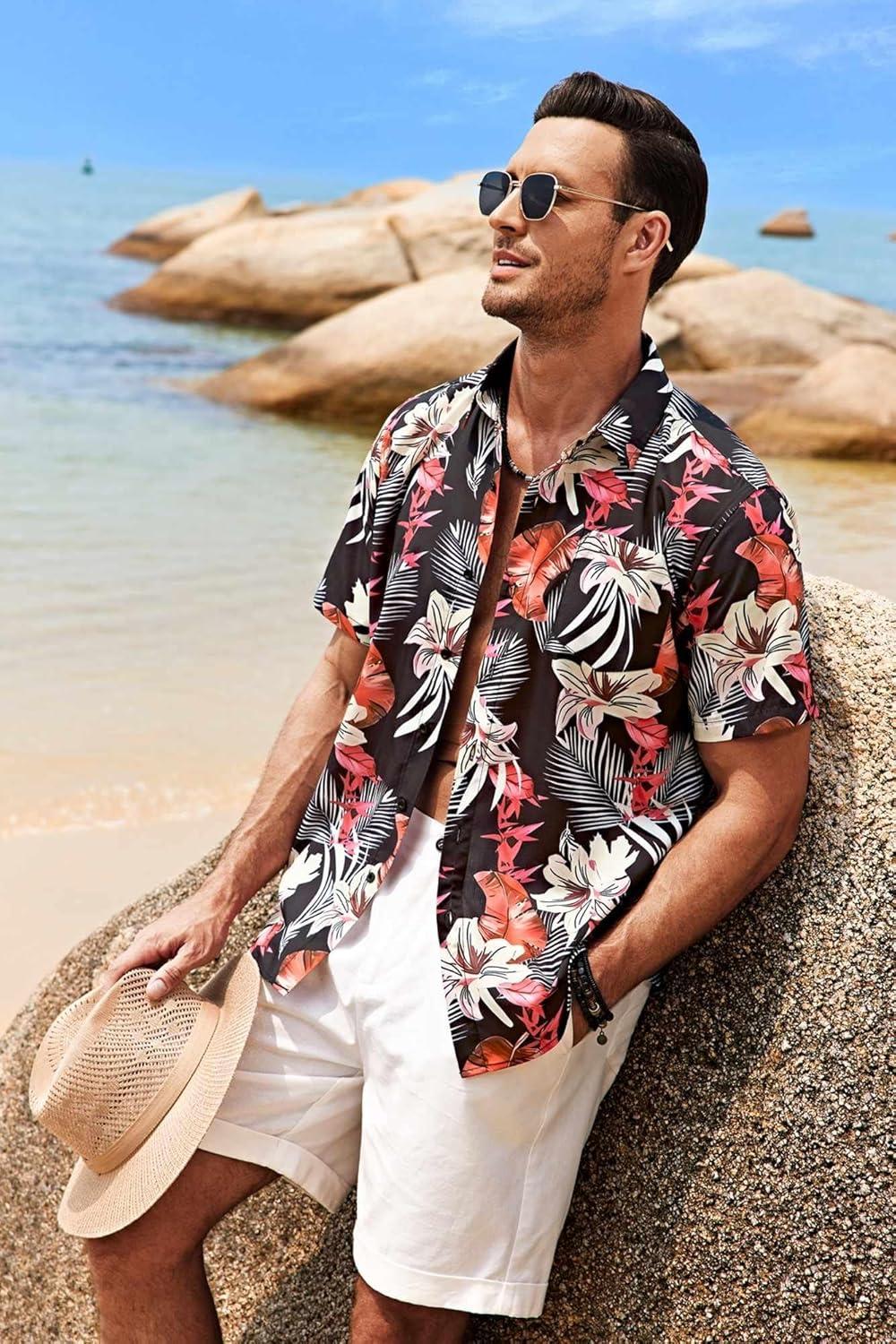 COOFANDY Mens Hawaiian Tropical Shirt Short Sleeve Casual Button Down Floral Summer Beach Shirts with Pocket(Black Flowers)