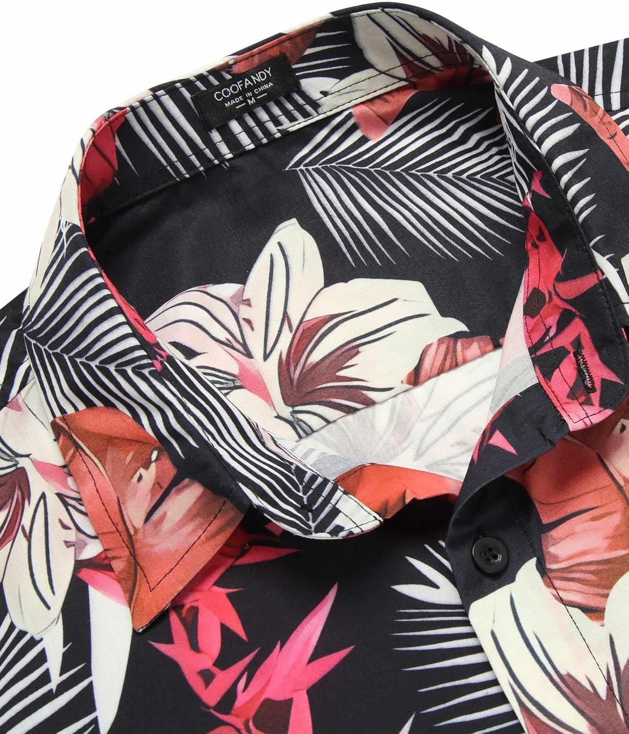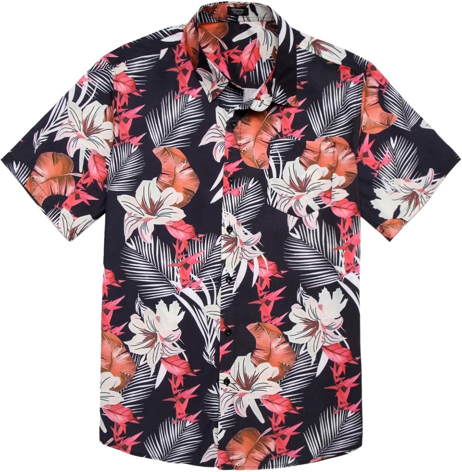 imageCOOFANDY Mens Hawaiian Tropical Shirt Short Sleeve Casual Button Down Floral Summer Beach Shirts with PocketBleaves  Flowers