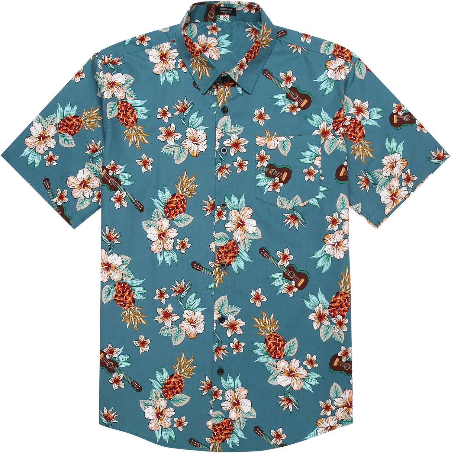 COOFANDY Mens Hawaiian Tropical Shirt Short Sleeve Casual Button Down Floral Summer Beach Shirts with Pocket(Green Guitar)