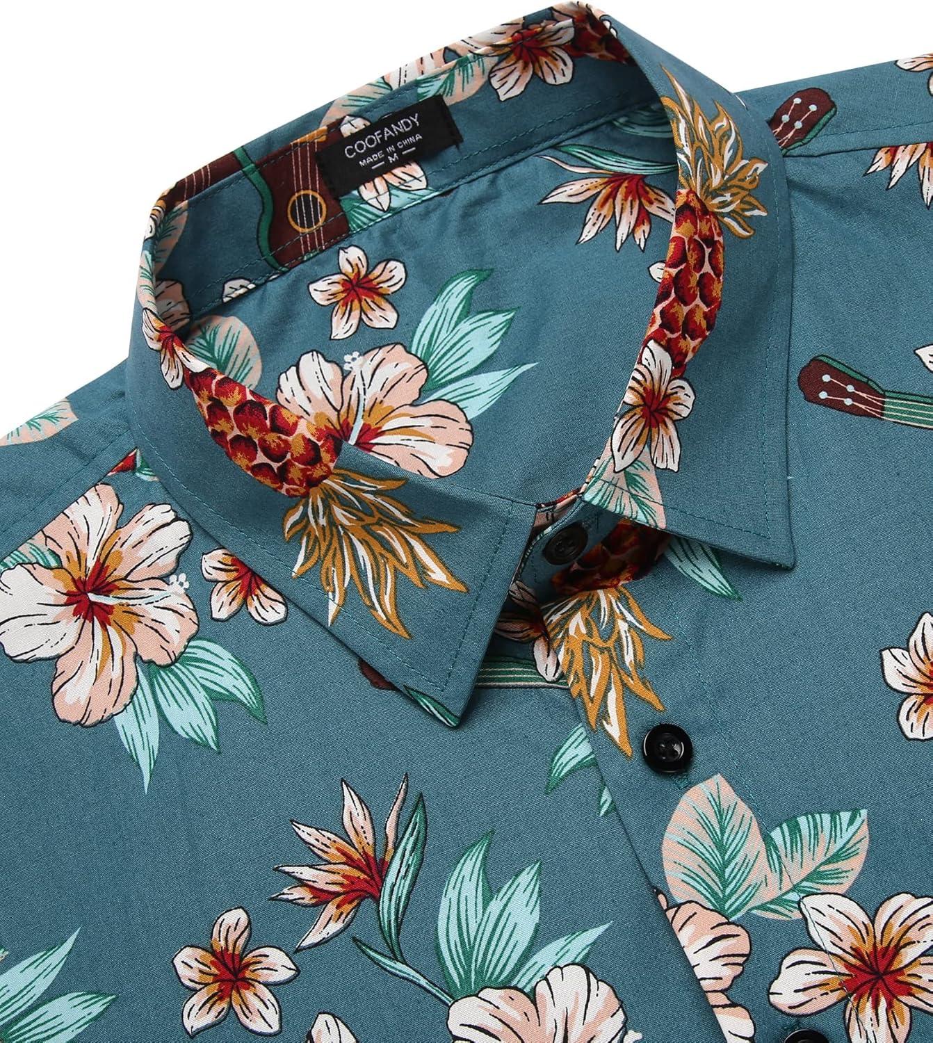 COOFANDY Mens Hawaiian Tropical Shirt Short Sleeve Casual Button Down Floral Summer Beach Shirts with Pocket(Colorful Flowers)