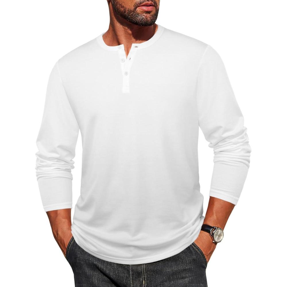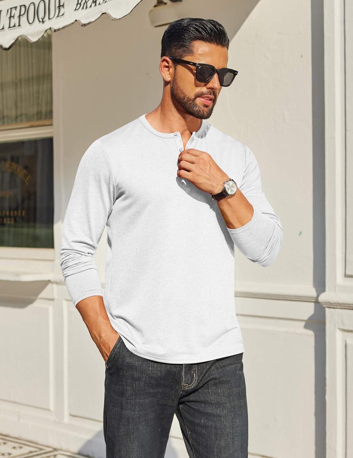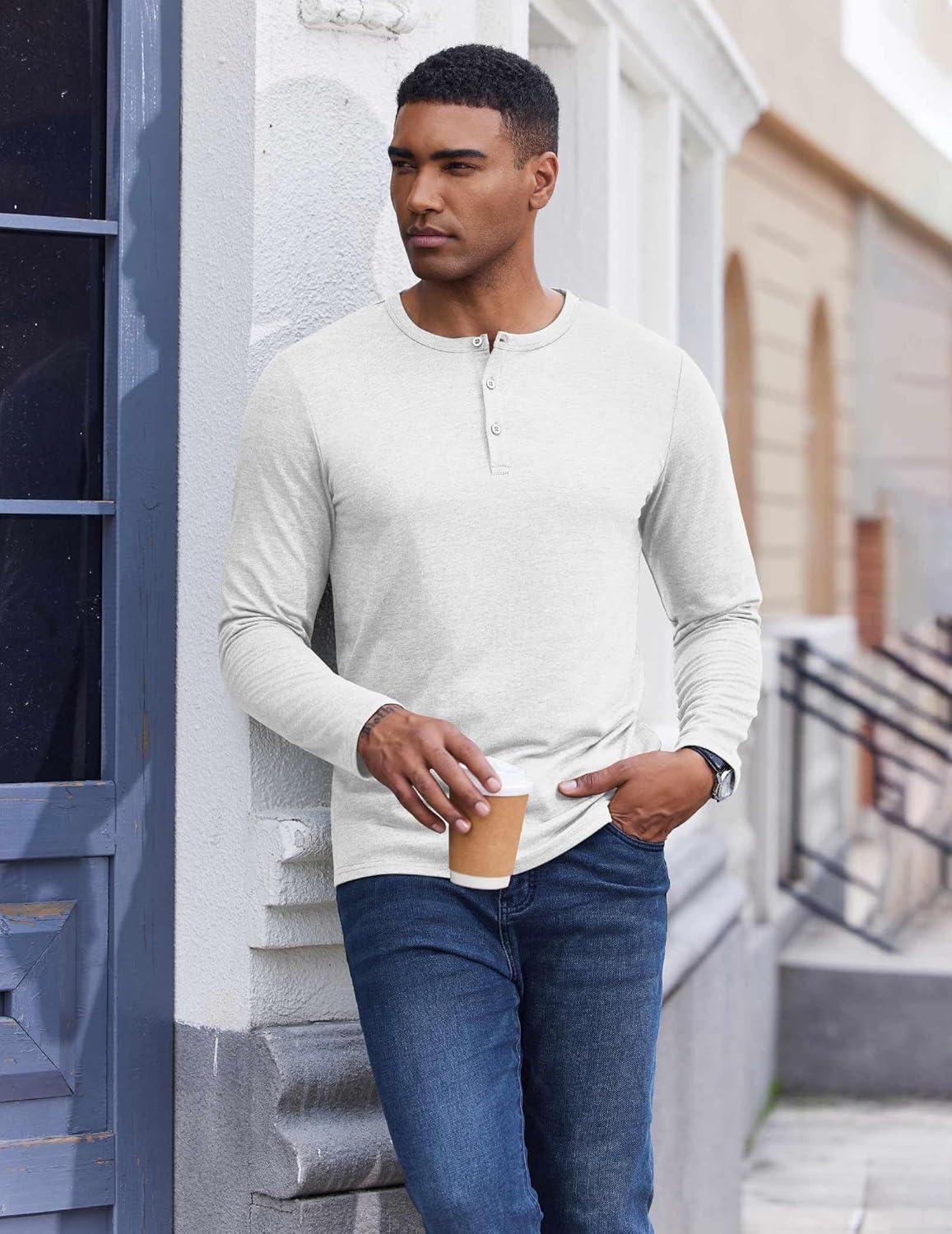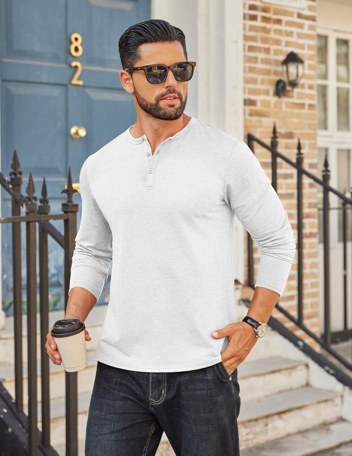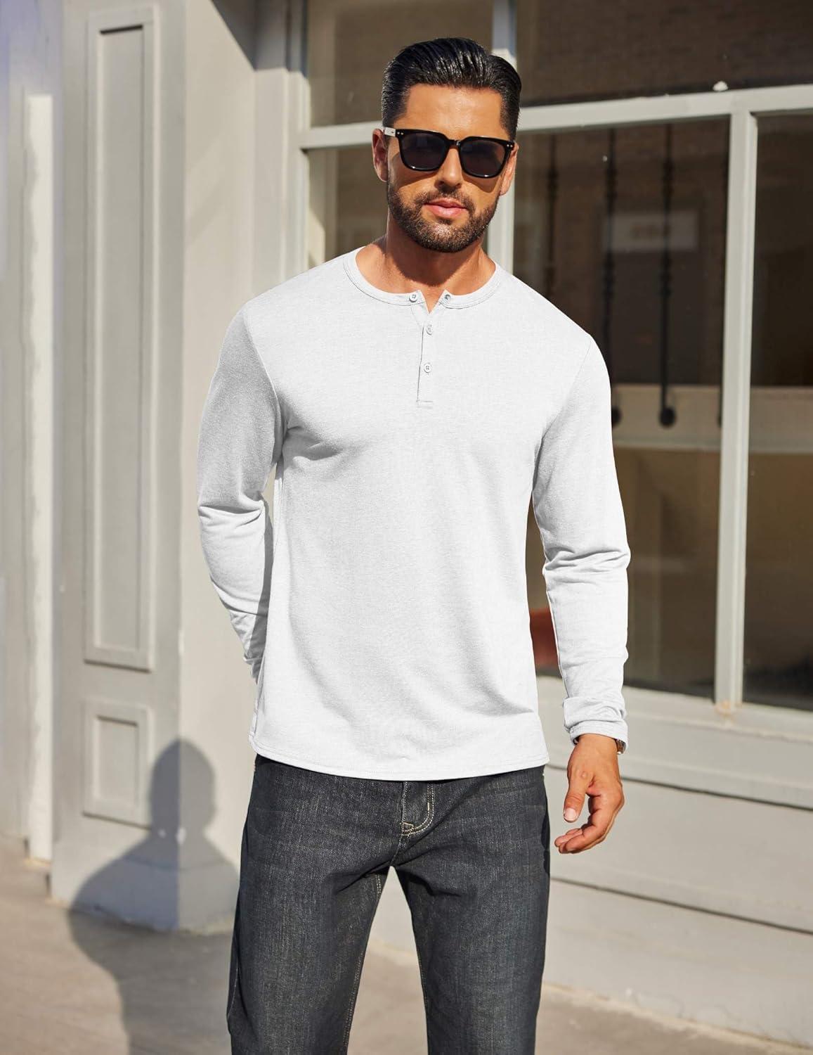 COOFANDY Mens Henley Shirt Long Sleeve Casual Stretch Solid T-Shirts Fashion Pullover Lightweight Fall Tops(White)
