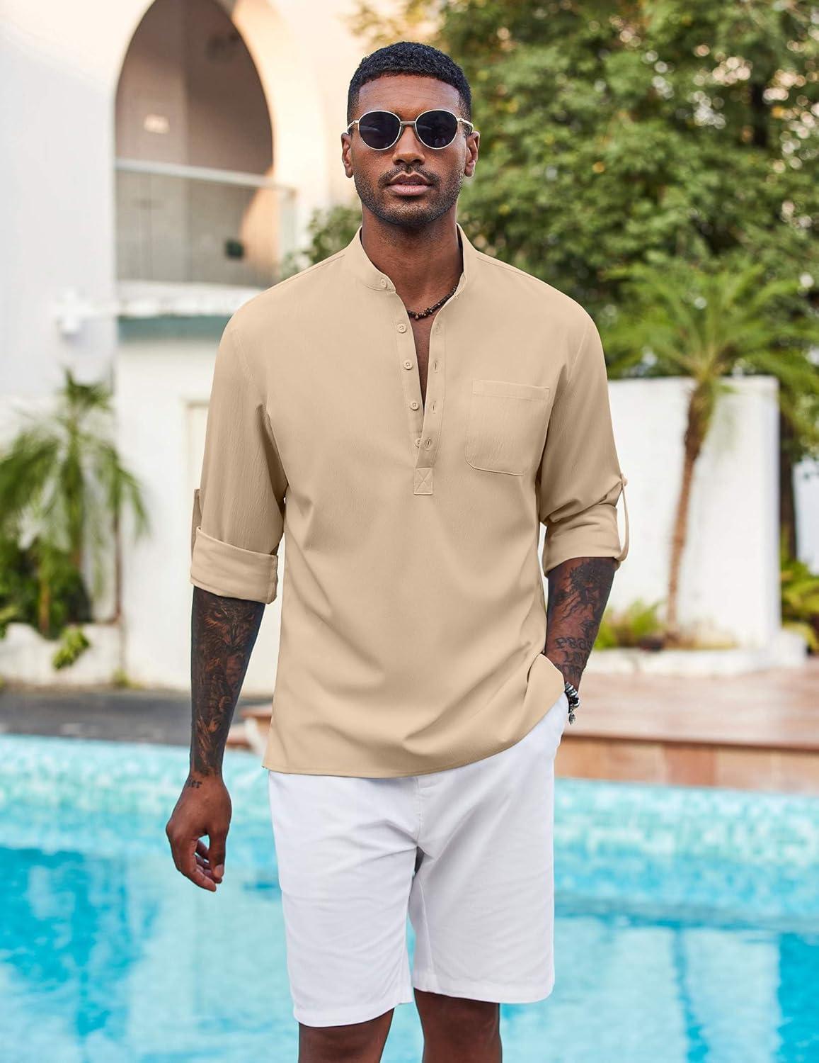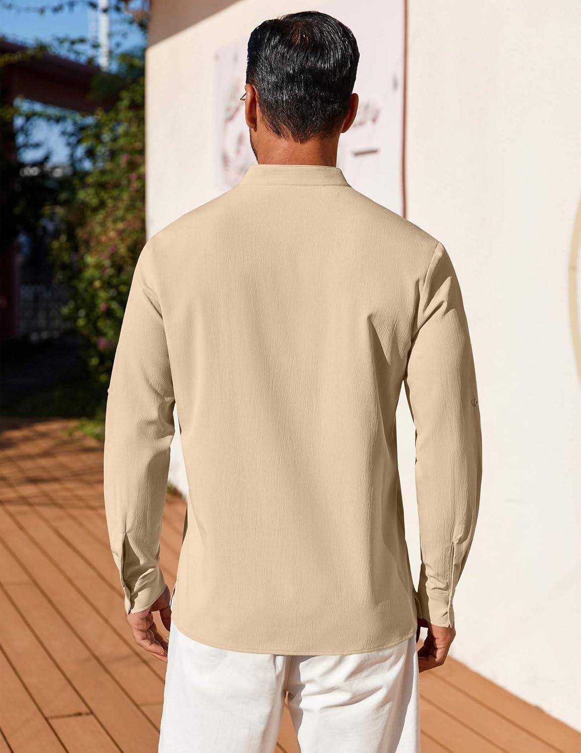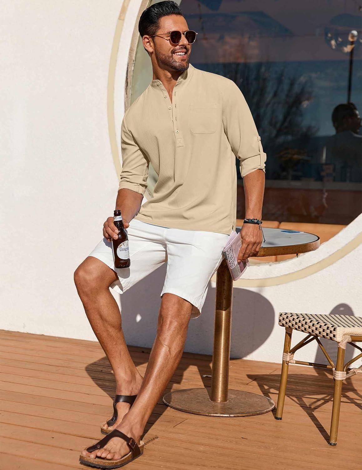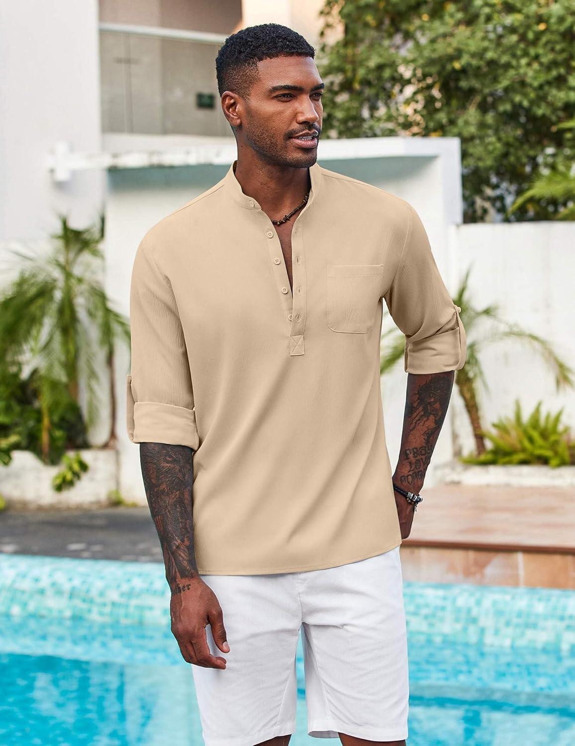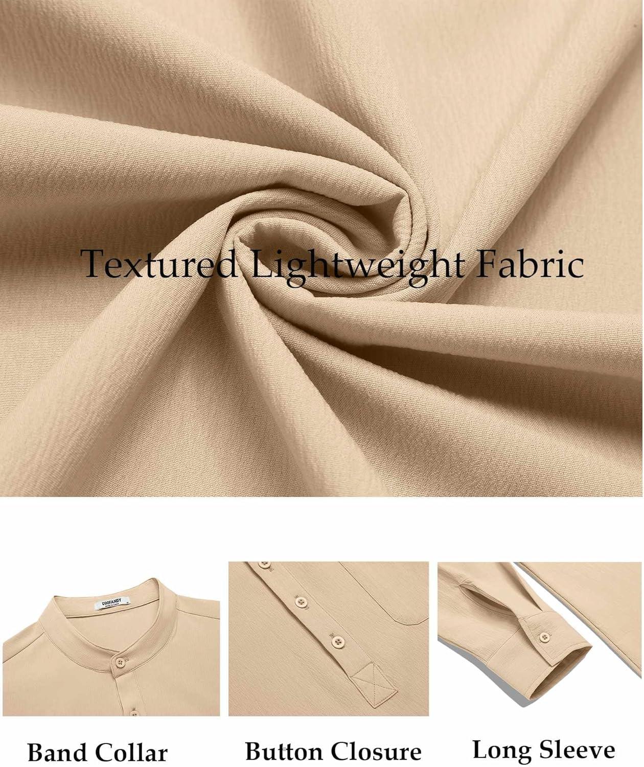 COOFANDY Men's Henley Shirt Long Sleeve Lightweight Casual T-Shirt Summer Beach Hippie Tee Shirt(Khaki)