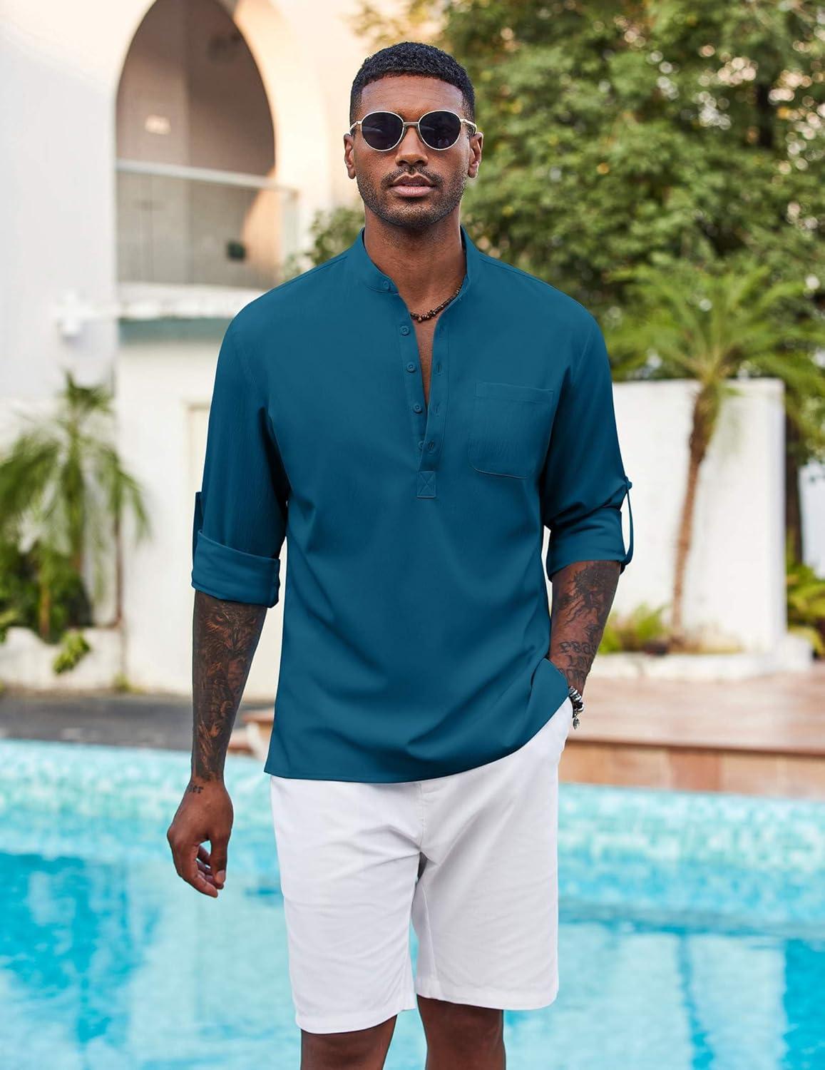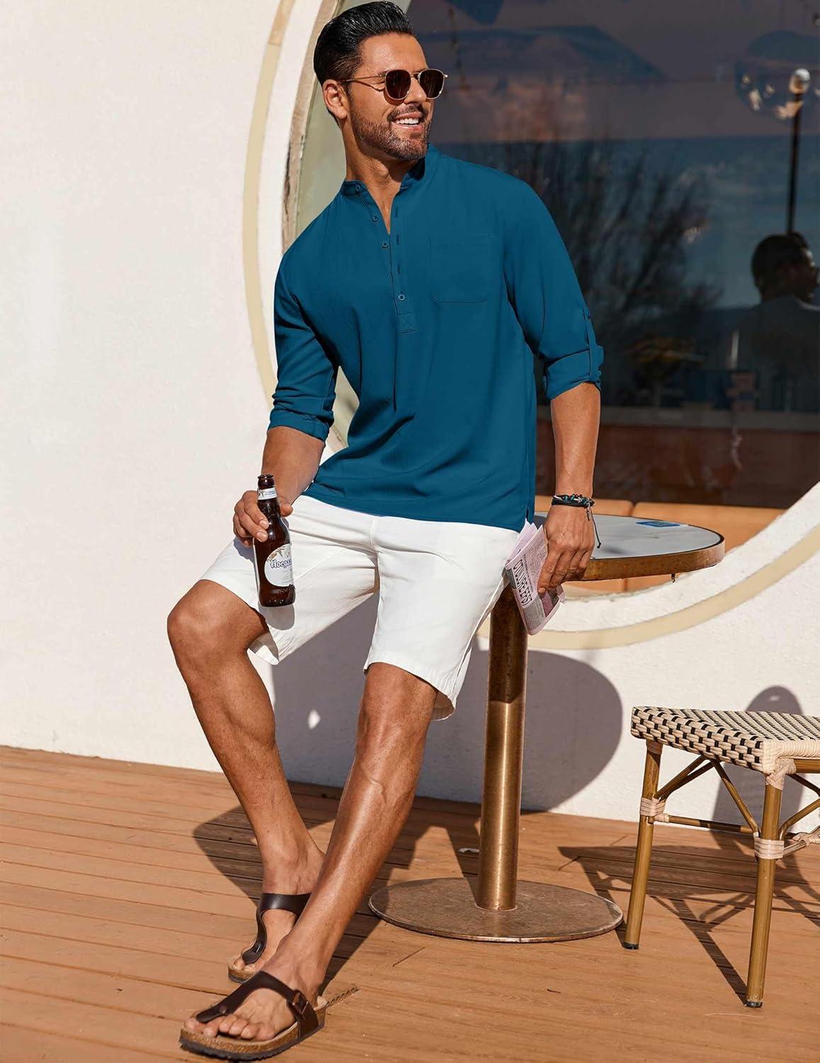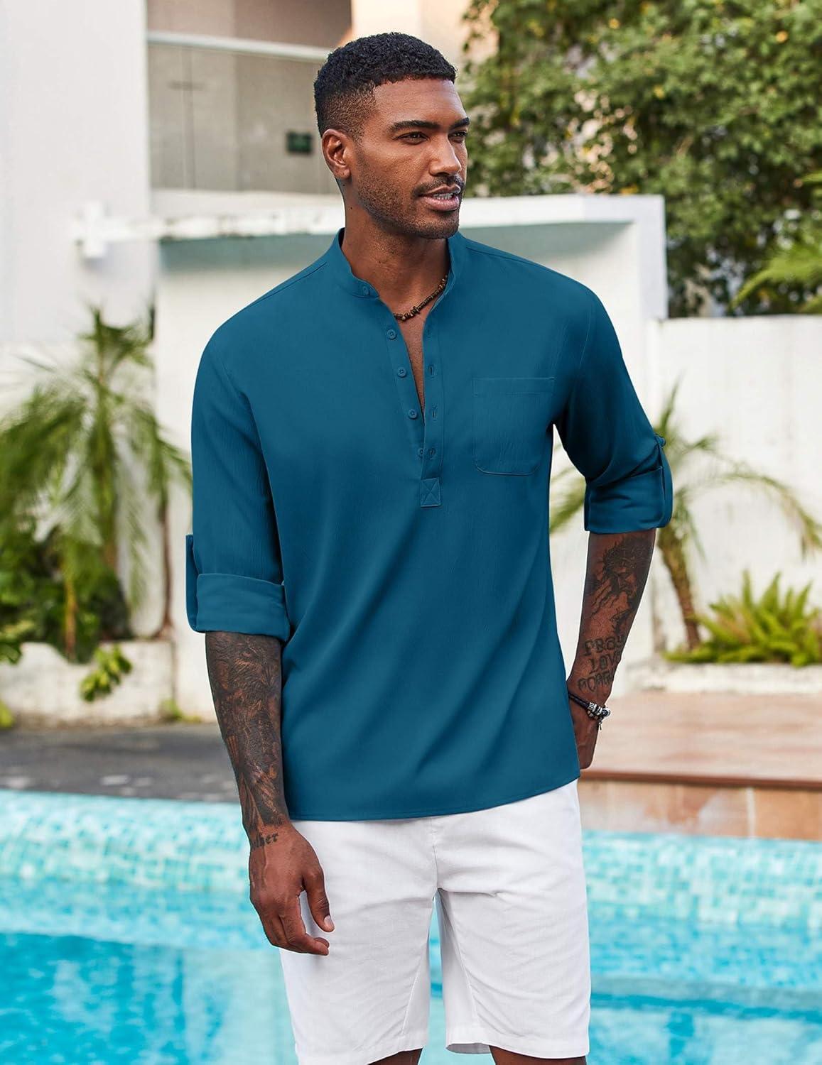 Get up to 70% off on COOFANDY Men’s Henley Shirt Long Sleeve Lightweight Casual T-Shirt Summer Beach Hippie Tee Shirt(Midnight Blue) styles during our end-of-season clearance event.