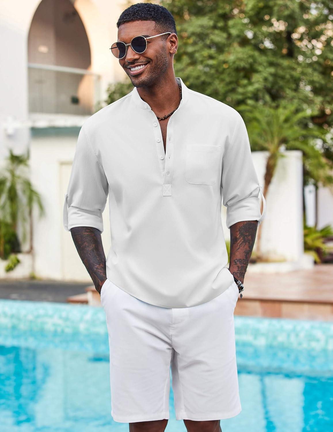 Get the COOFANDY Men’s Henley Shirt Long Sleeve Lightweight Casual T-Shirt Summer Beach Hippie Tee Shirt(White) you want at a price you can afford with our markdown sale.
