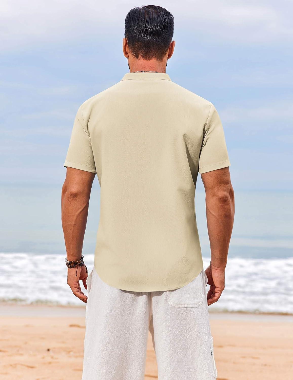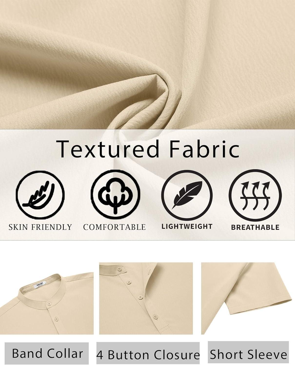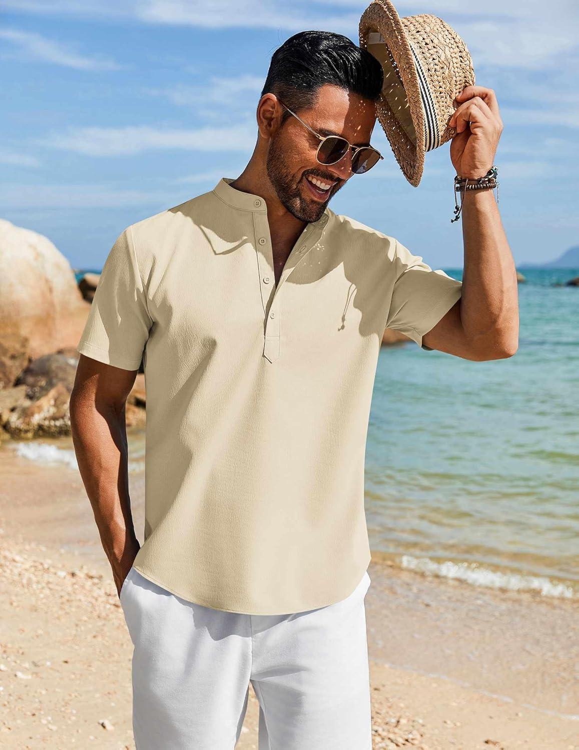 COOFANDY Men’s Henley Shirt Short Sleeve Casual T-Shirt Summer Beach Hippie Henley Tee Shirt(Beige)