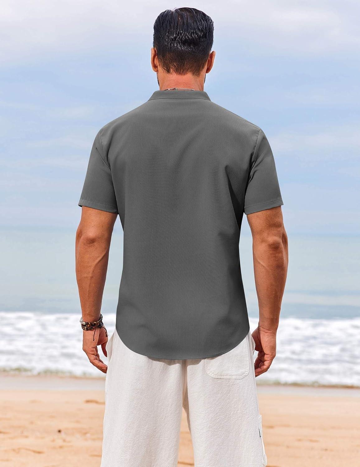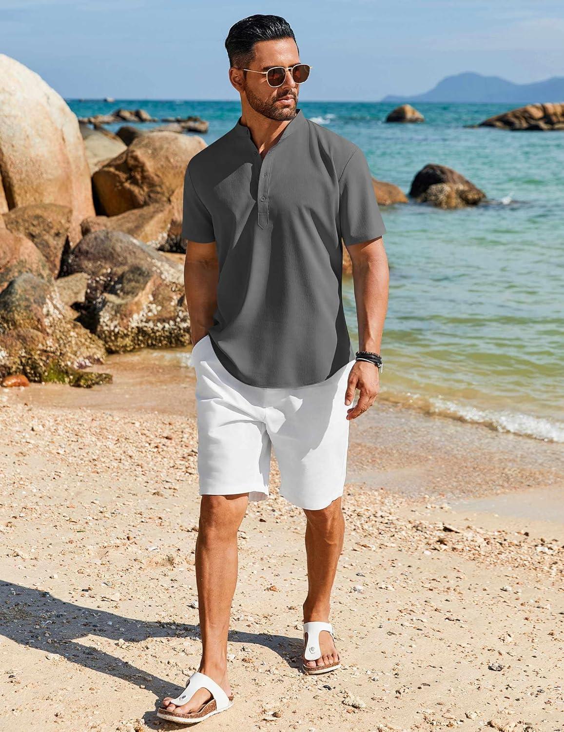 COOFANDY Men’s Henley Shirt Short Sleeve Casual T-Shirt Summer Beach Hippie Henley Tee Shirt(Dark Grey)