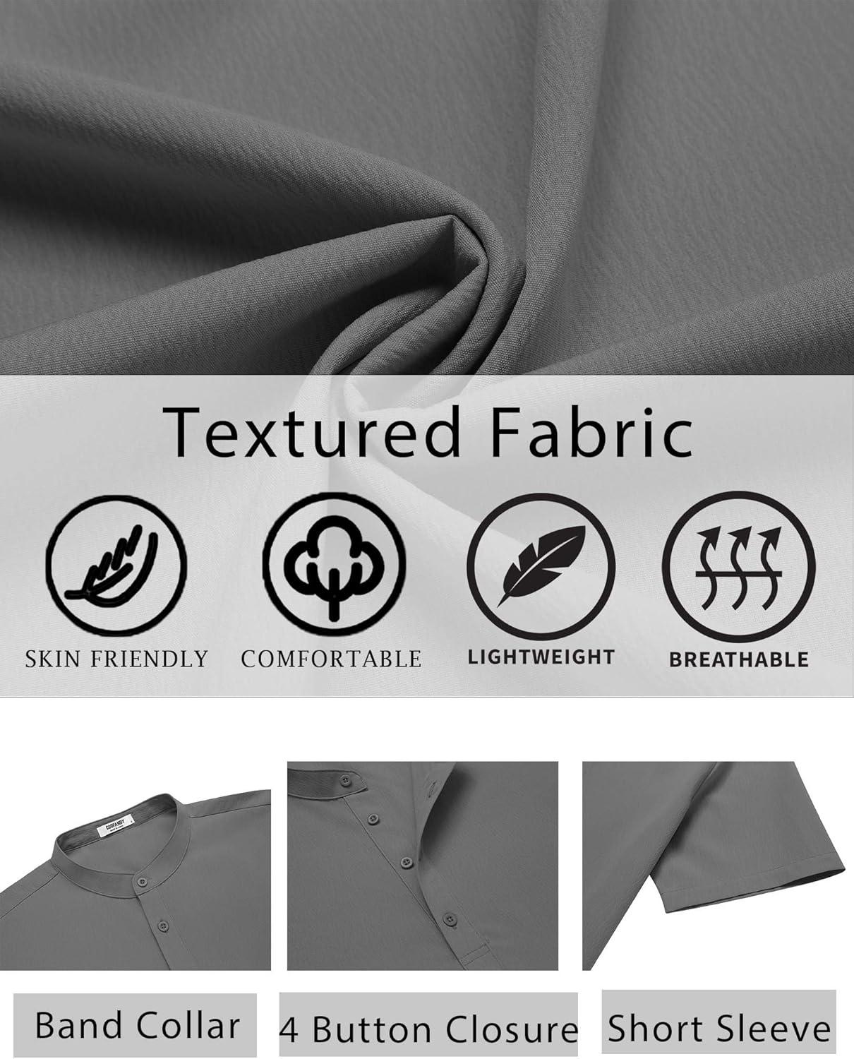 COOFANDY Men's Henley Shirt Short Sleeve Casual T-Shirt Summer Beach Hippie Henley Tee Shirt(Dark Grey)