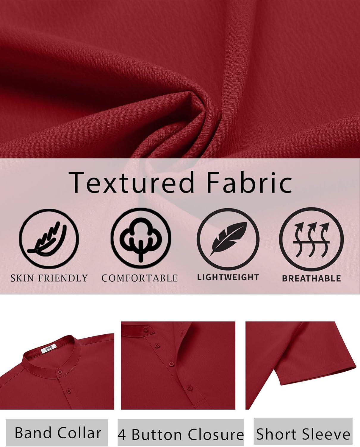 COOFANDY Men's Henley Shirt Short Sleeve Casual T-Shirt Summer Beach Hippie Henley Tee Shirt(Wine Red)