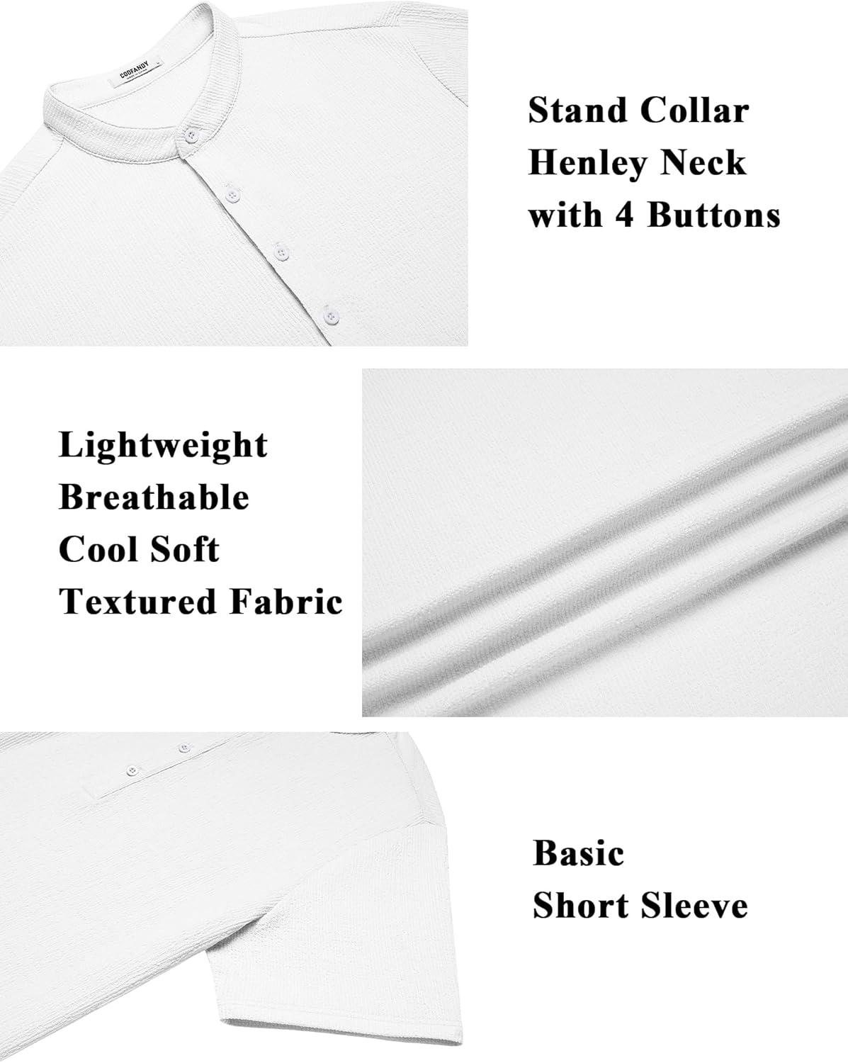 Get your hands on our exclusive COOFANDY Men’s Henley Shirt Short Sleeve Stand Collar Summer Casual Beach Hippie T-Shirts(White) collection, now at a discounted price.