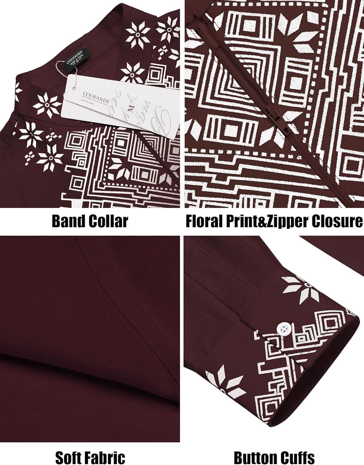 imageCOOFANDY Mens Henley Shirt Vyshyvanka Long Sleeve African Print Shirts Casual Zip Up Cotton Linen Beach Hippie ShirtFloral Print