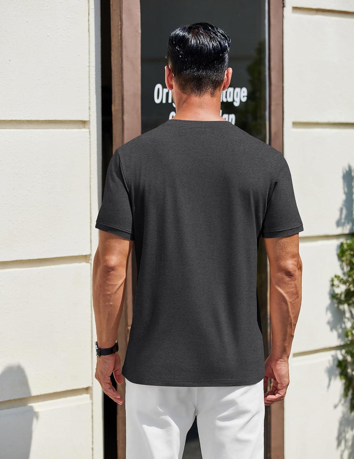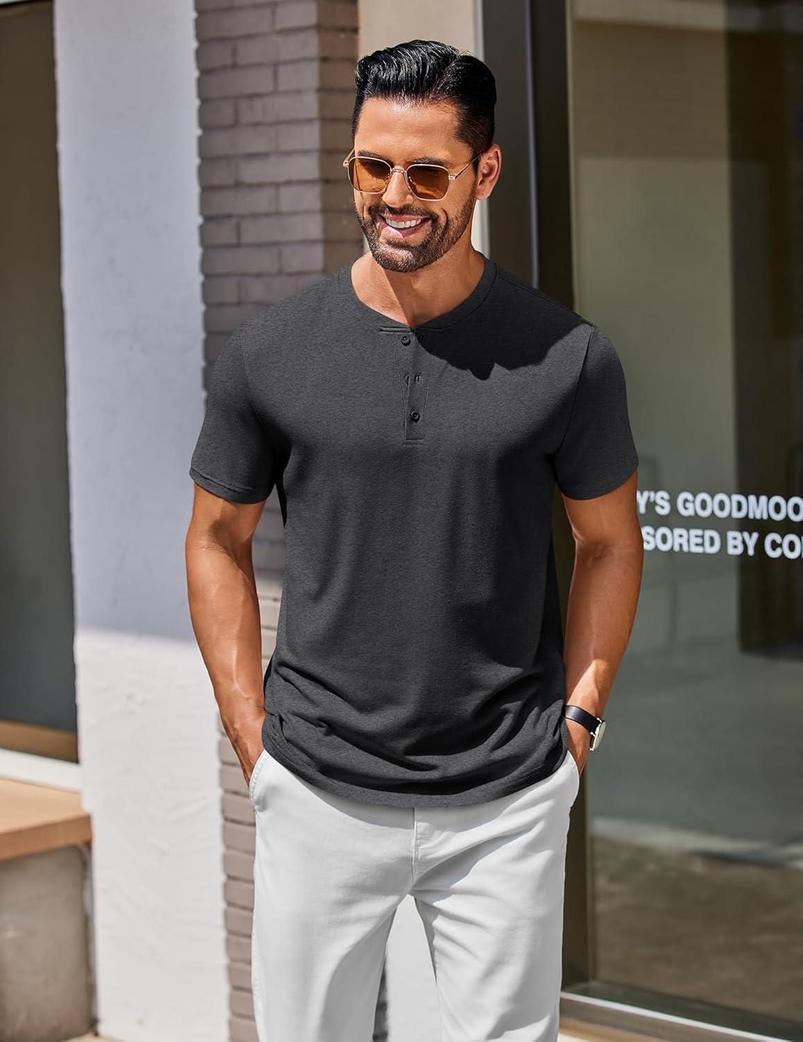 COOFANDY Men’s Henley Shirts Cotton Short Sleeve Casual T-Shirt Button Henley Basic Tee Lightweight Summer Top(Dark Grey)