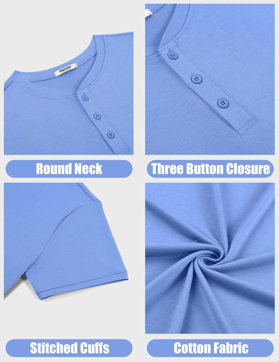 COOFANDY Men’s Henley Shirts Cotton Short Sleeve Casual T-Shirt Button Henley Basic Tee Lightweight Summer Top(Light Blue)