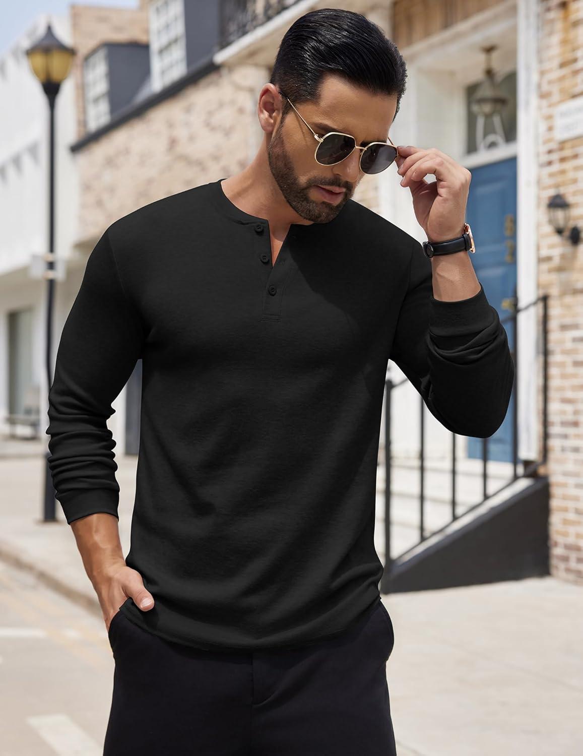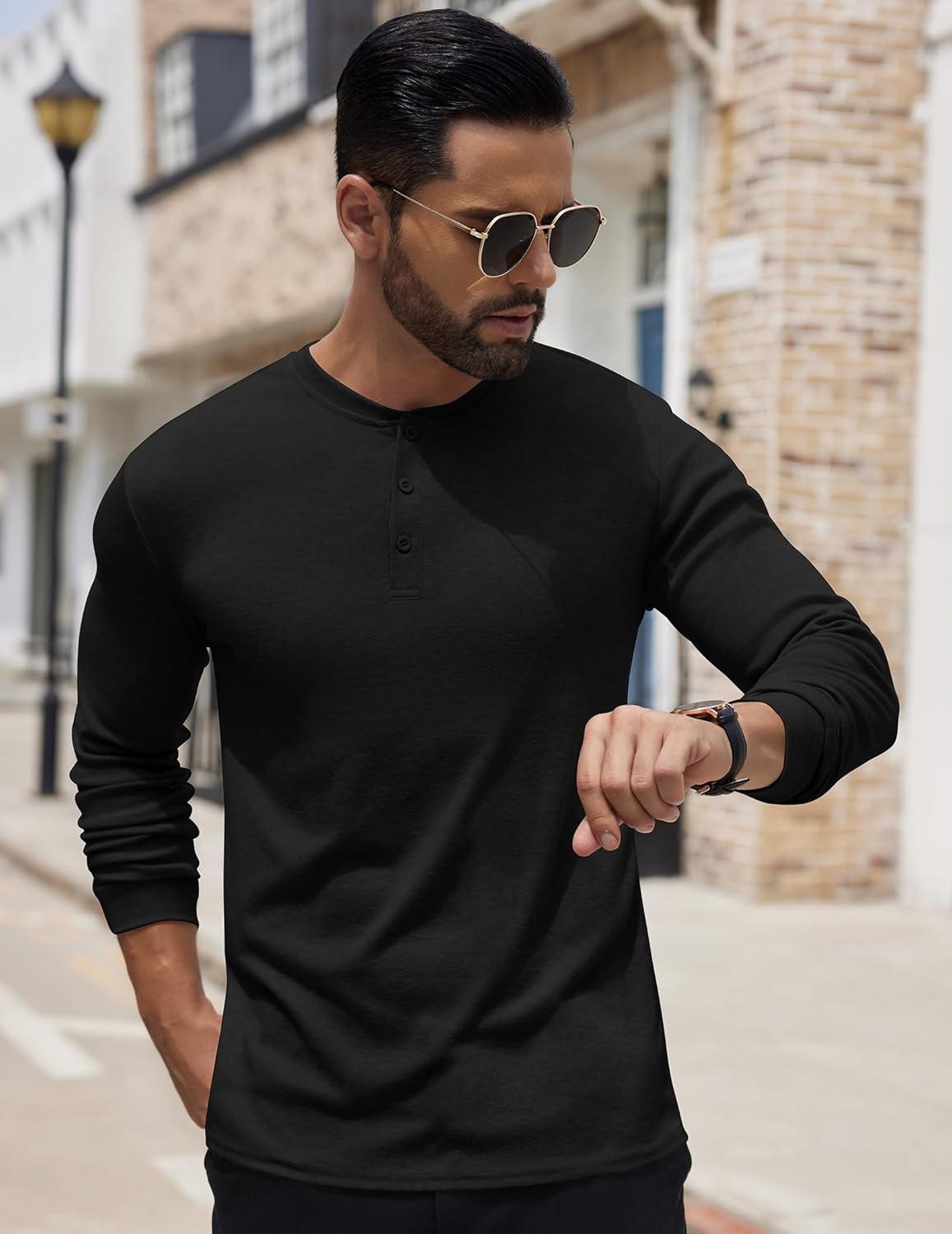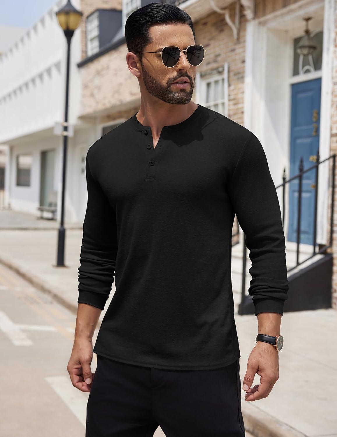 COOFANDY Men's Henley Shirts Long Sleeve Button T-Shirt Lightweight Fashion Casual Pullover Shirt(Black)