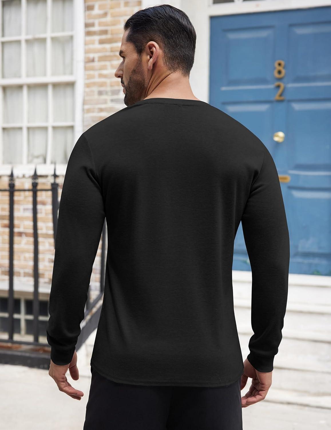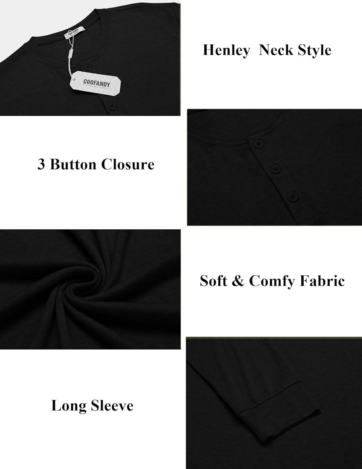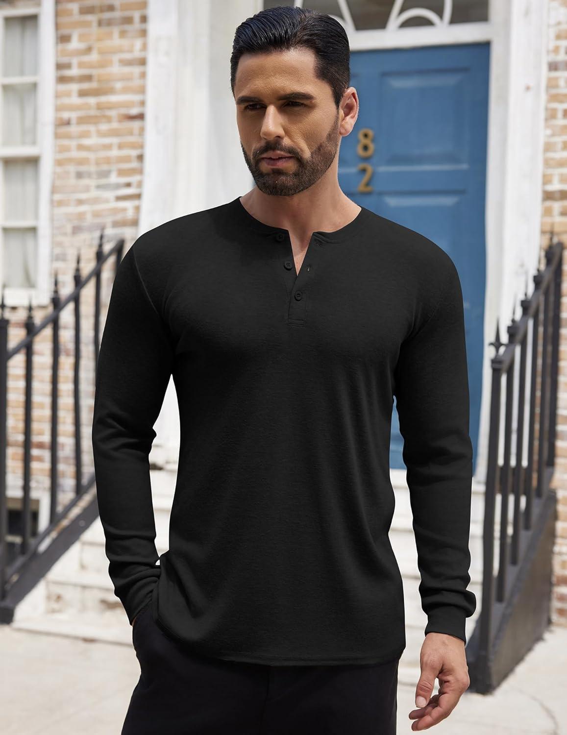 COOFANDY Men's Henley Shirts Long Sleeve Button T-Shirt Lightweight Fashion Casual Pullover Shirt(Black)