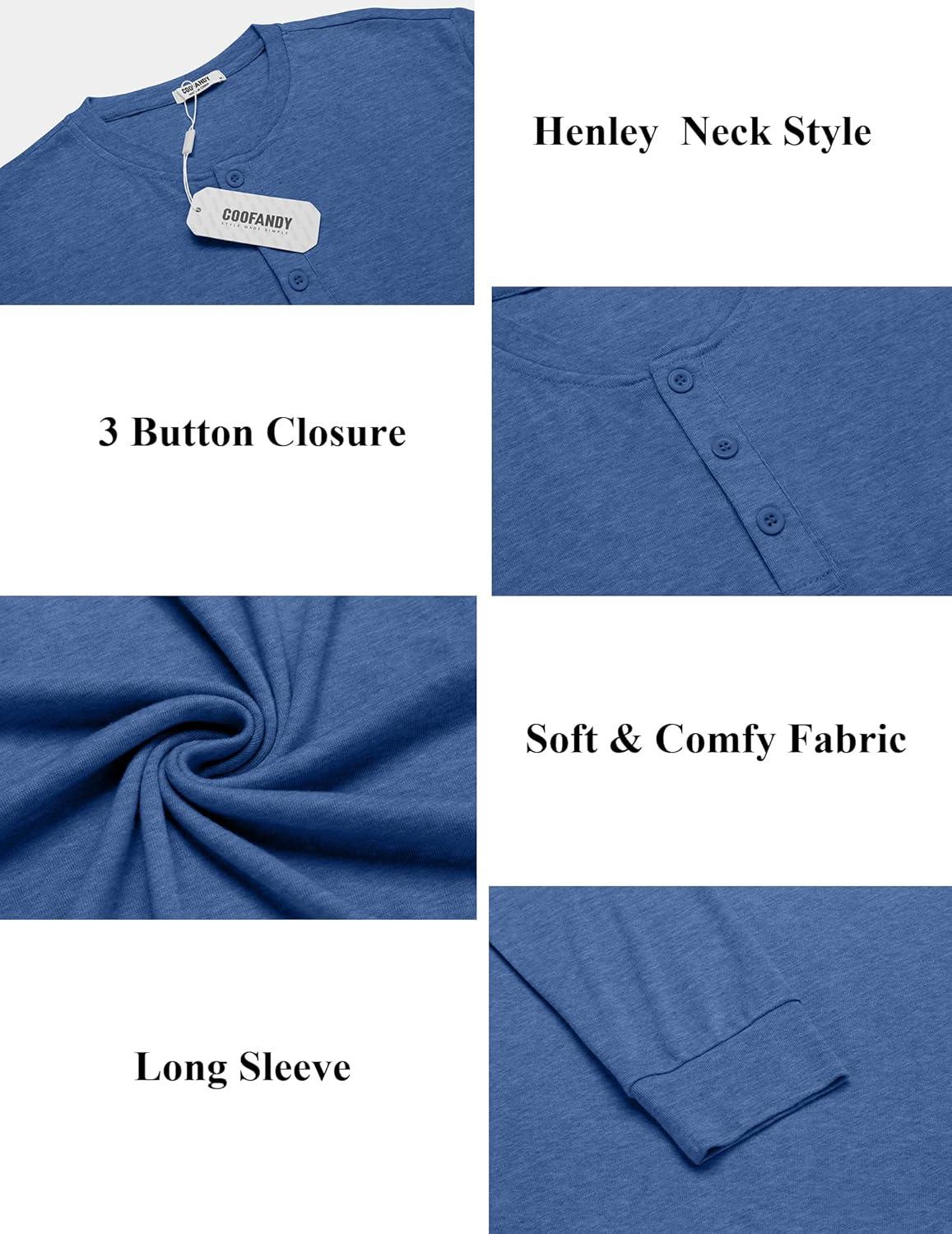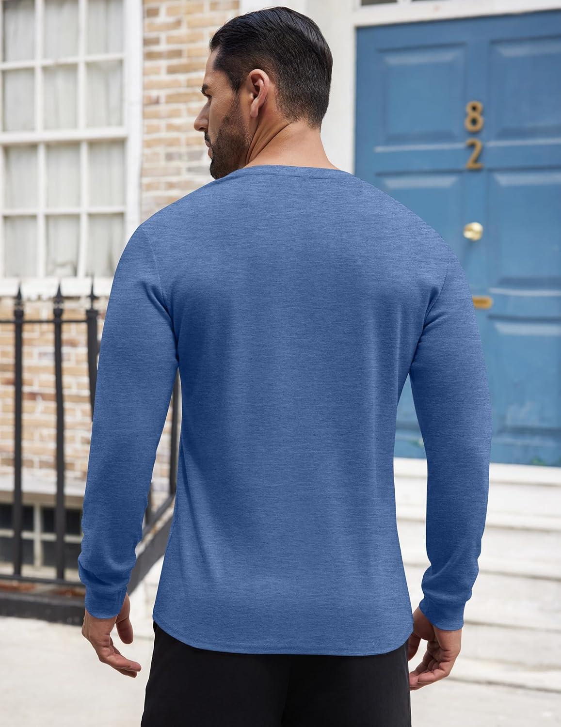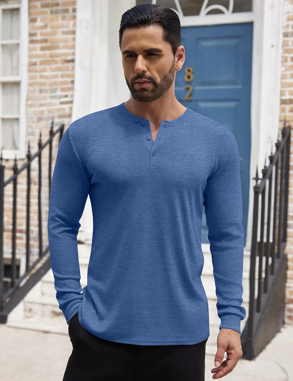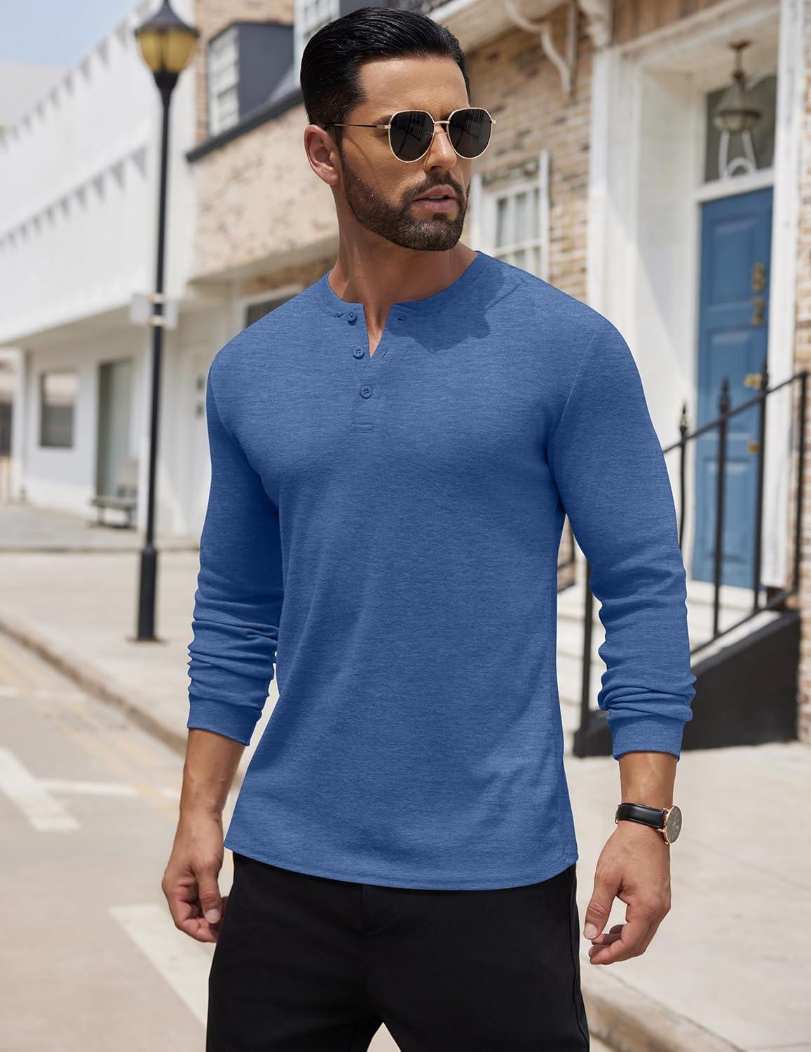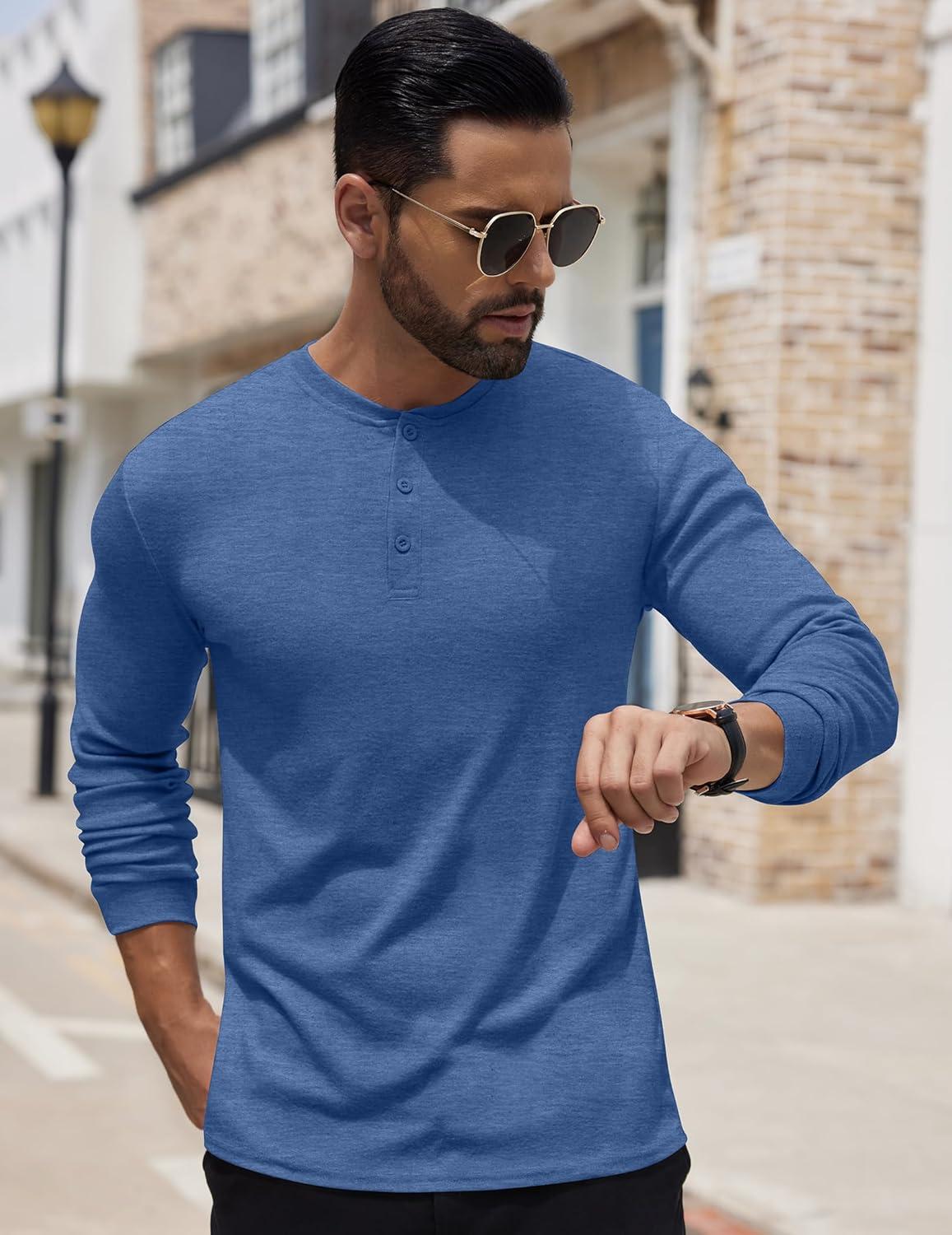 COOFANDY Men's Henley Shirts Long Sleeve Button T-Shirt Lightweight Fashion Casual Pullover Shirt(Heather Lake Blue)
