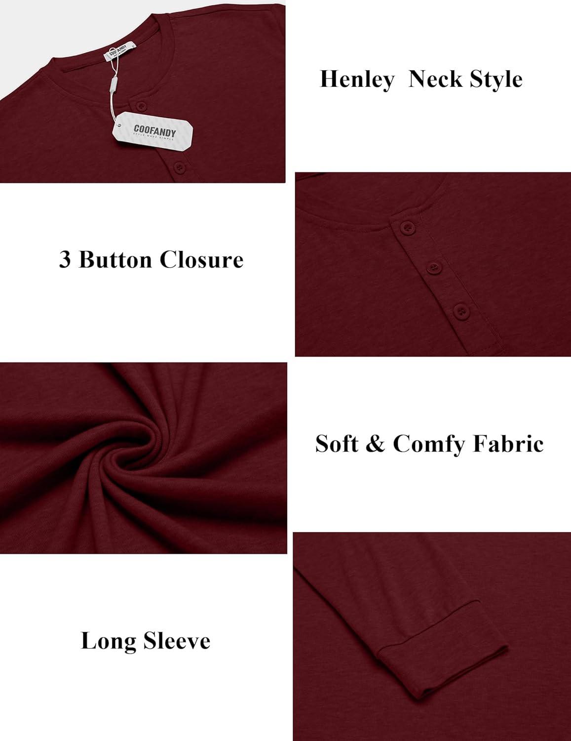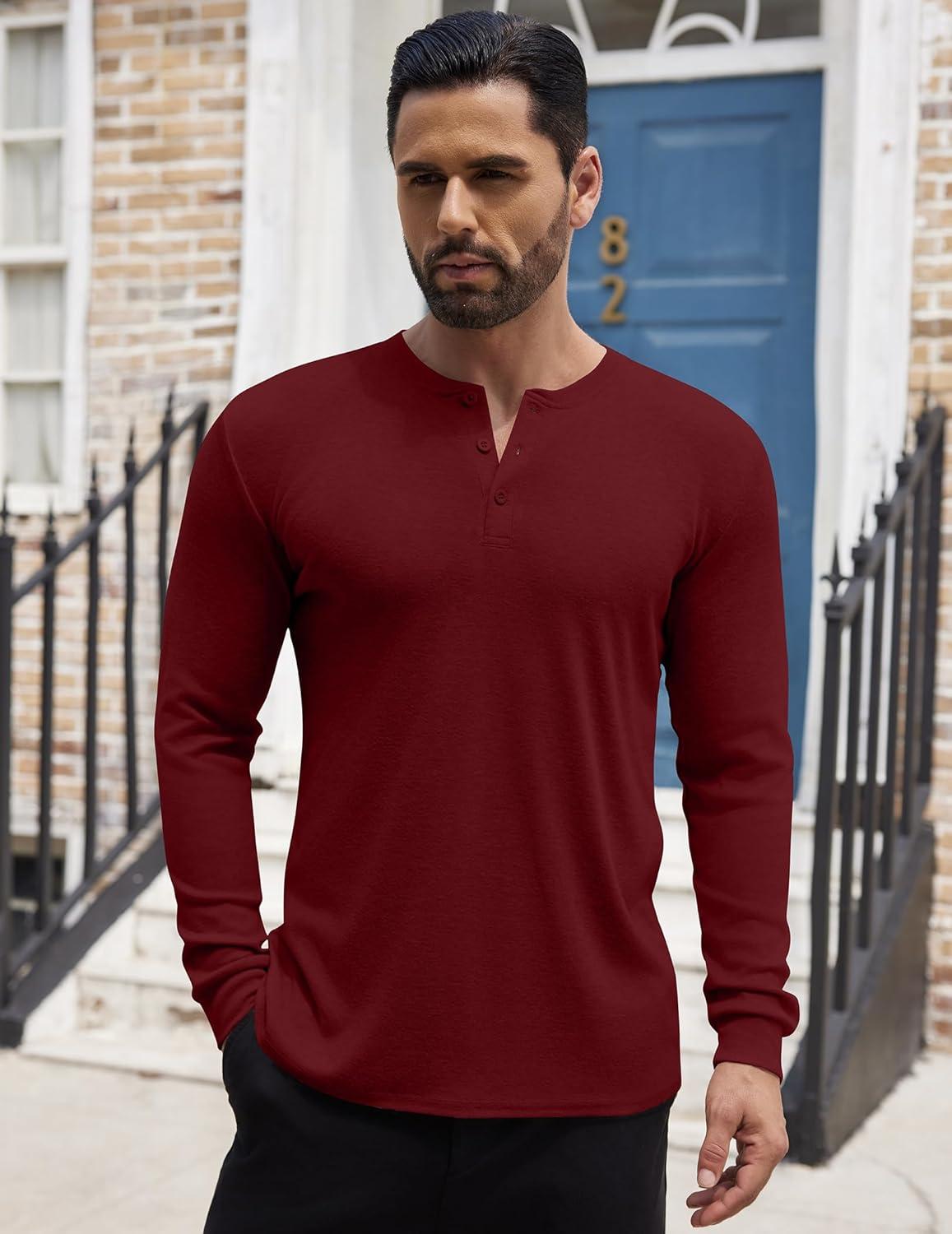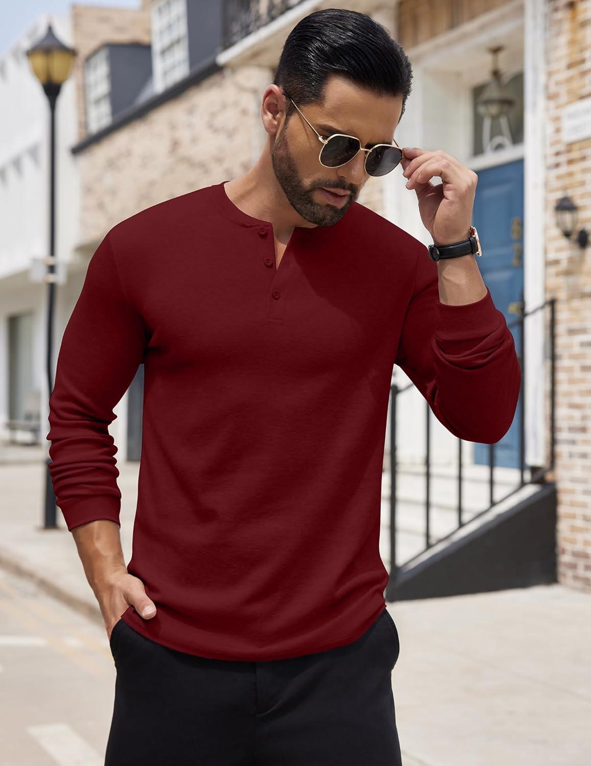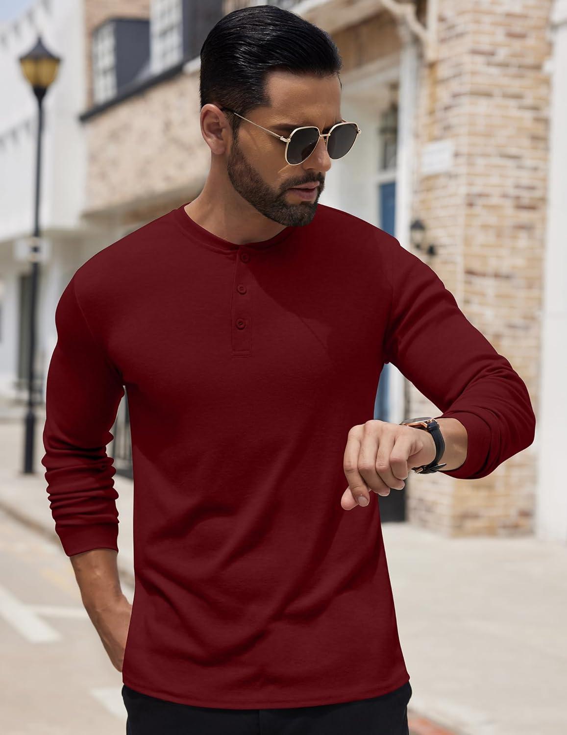 COOFANDY Men's Henley Shirts Long Sleeve Button T-Shirt Lightweight Fashion Casual Pullover Shirt(Wine Red)