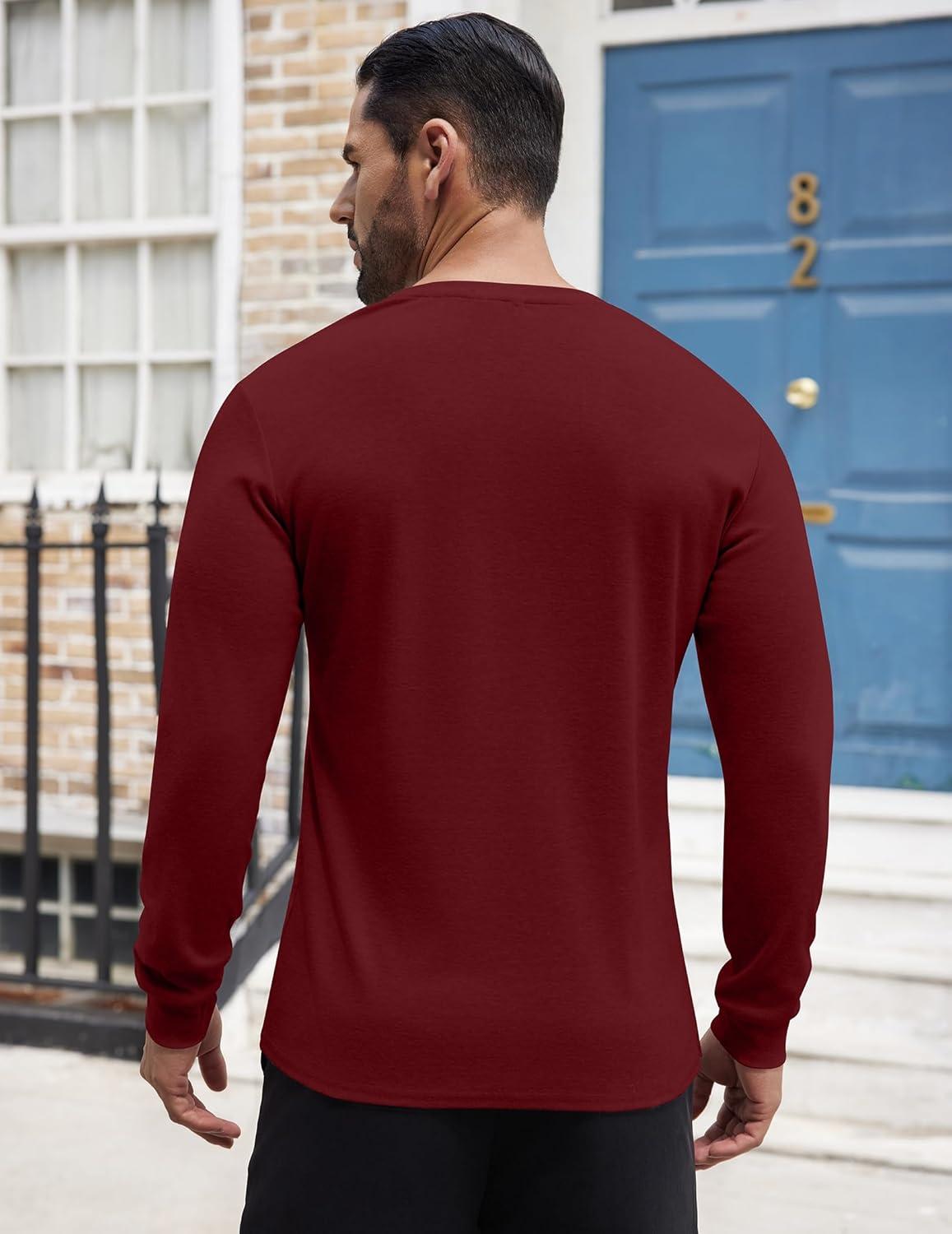 COOFANDY Men’s Henley Shirts Long Sleeve Button T-Shirt Lightweight Fashion Casual Pullover Shirt(Wine Red)