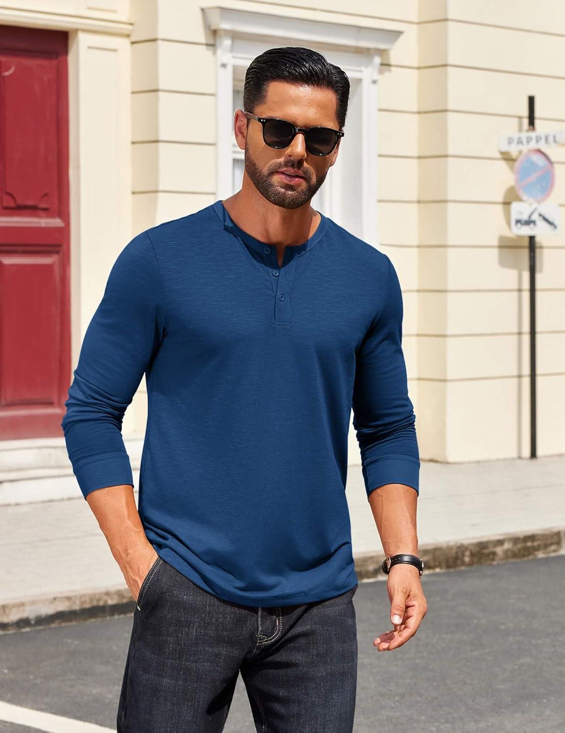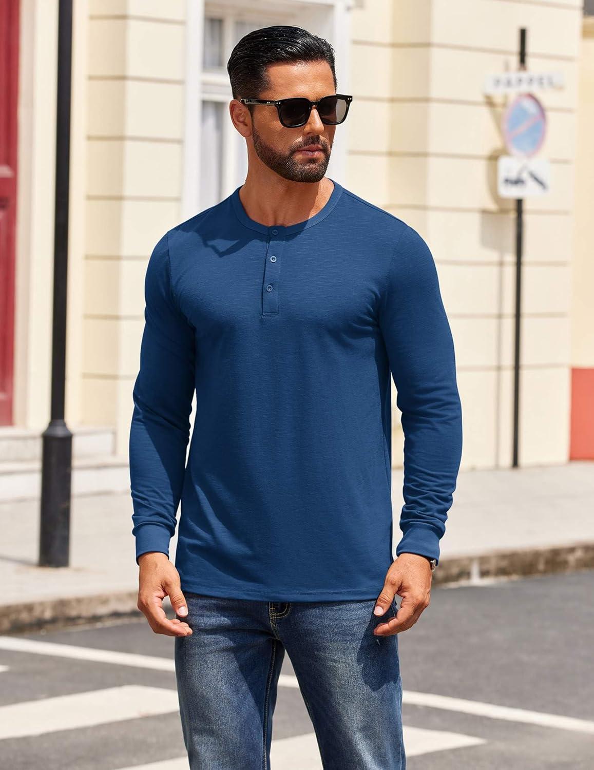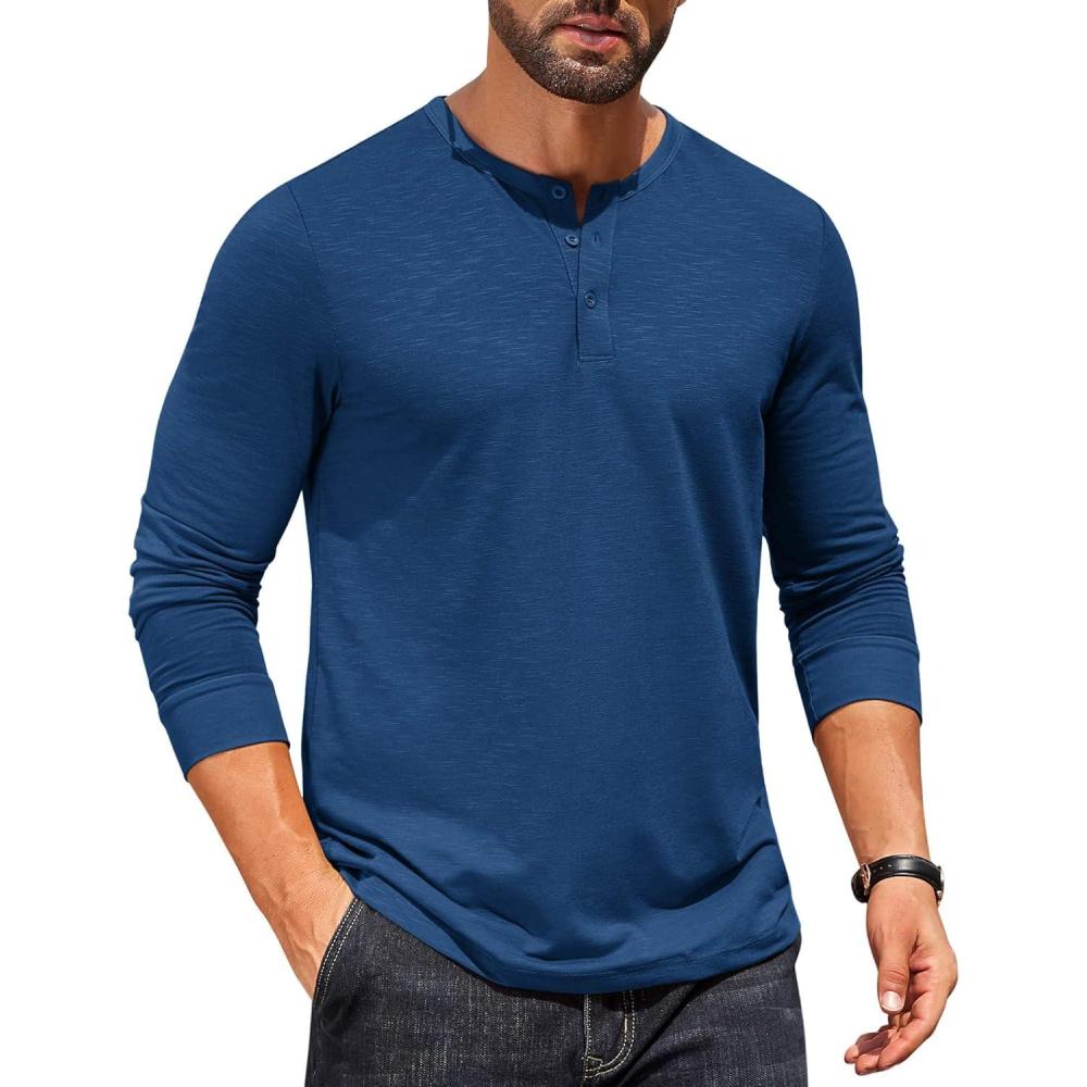 COOFANDY Men’s Henley Shirts Long Sleeve Button T-Shirt(Deep Blue)