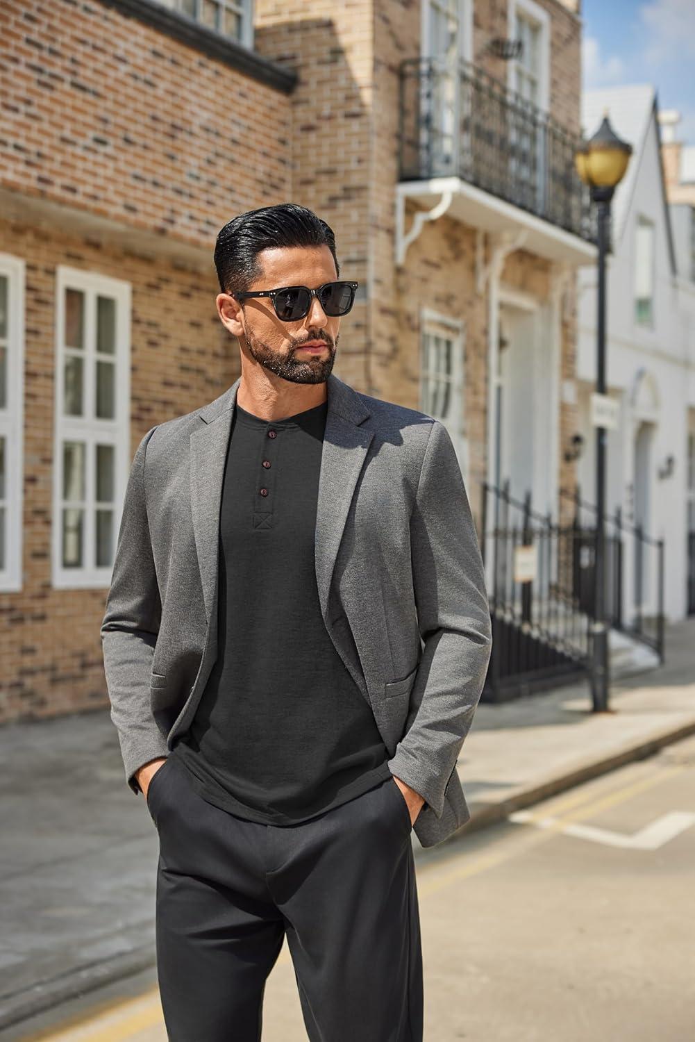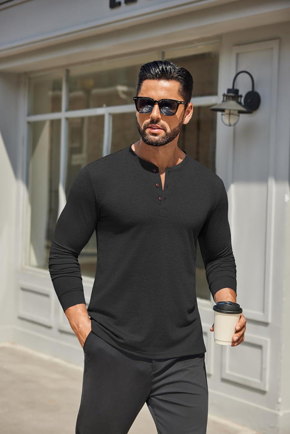 COOFANDY Men’s Henley Shirts Long Sleeve Casual Button Shirts Fashion Lightweight Pullover Shirts(All Black)