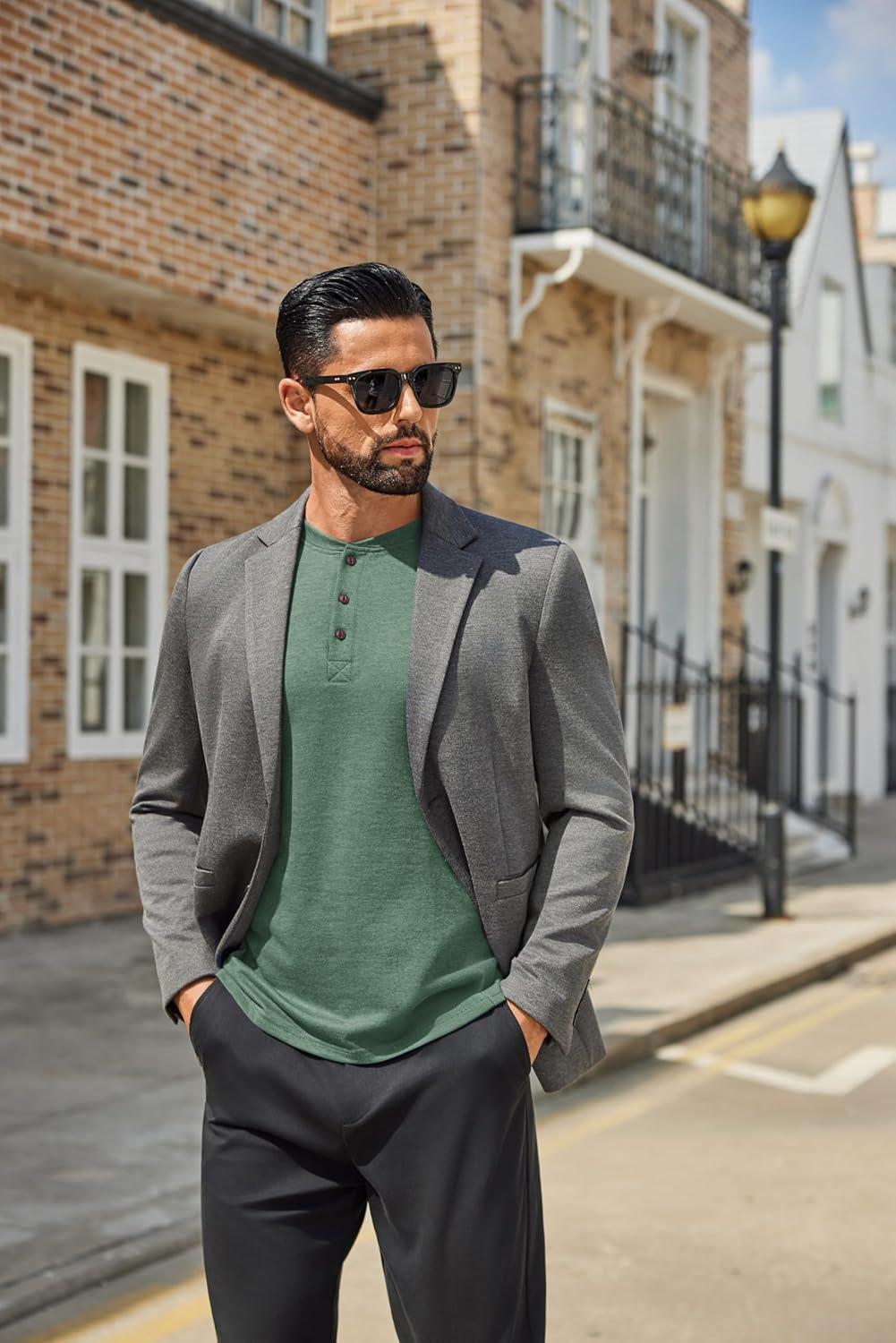 COOFANDY Men’s Henley Shirts Long Sleeve Casual Button Shirts Fashion Lightweight Pullover Shirts(Dark Green)