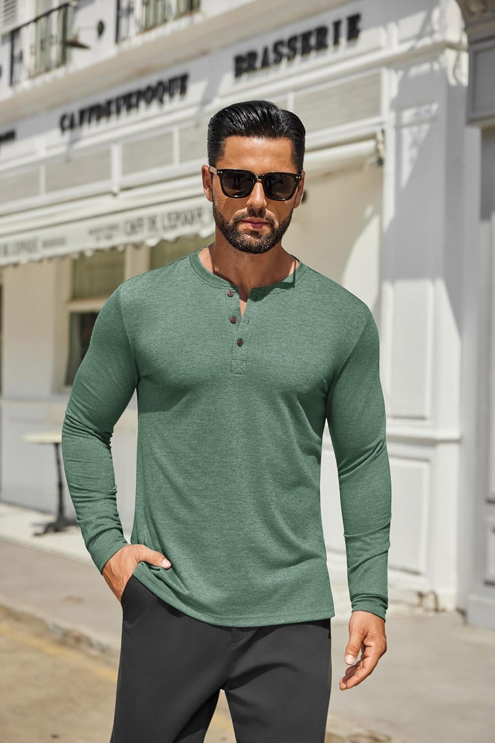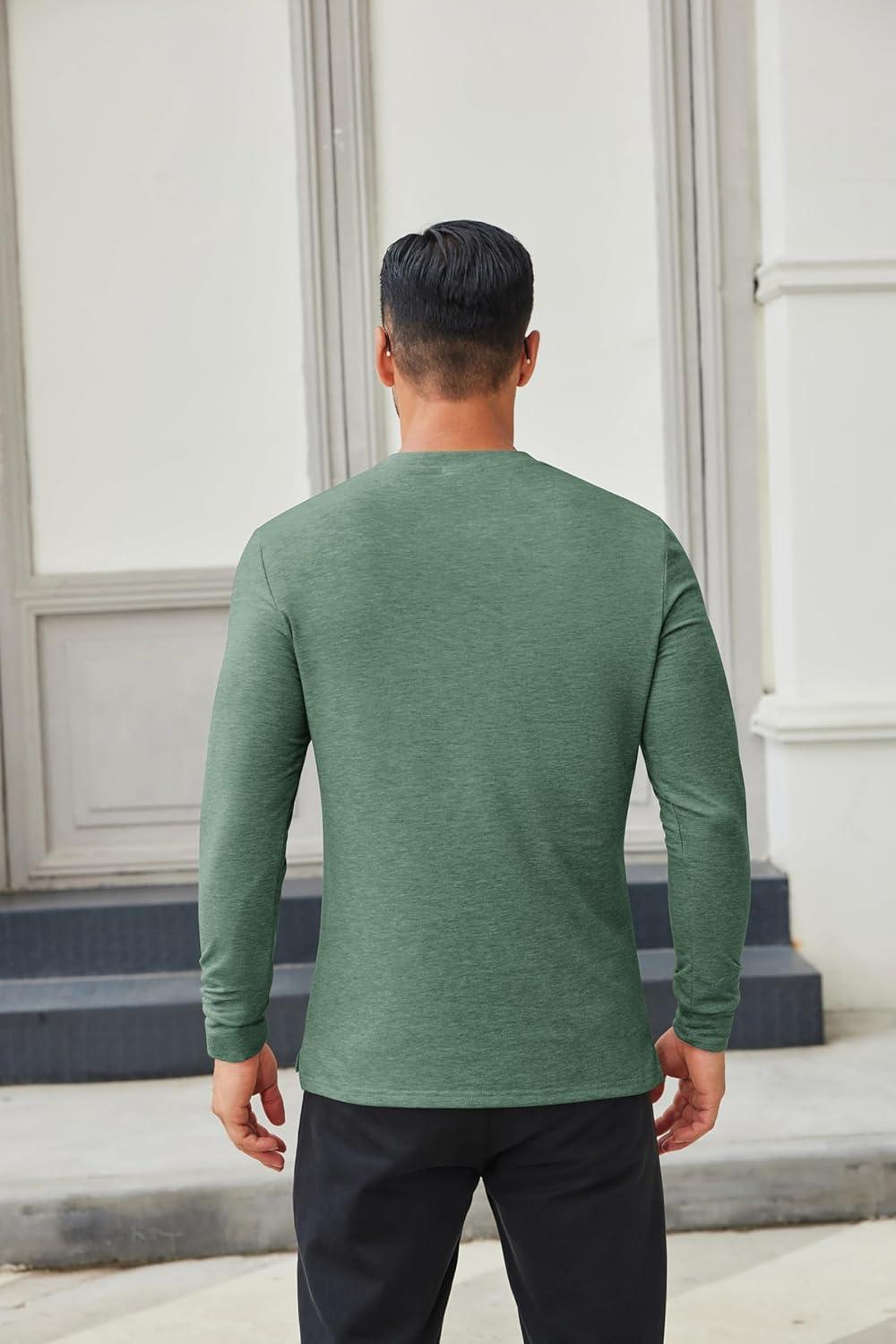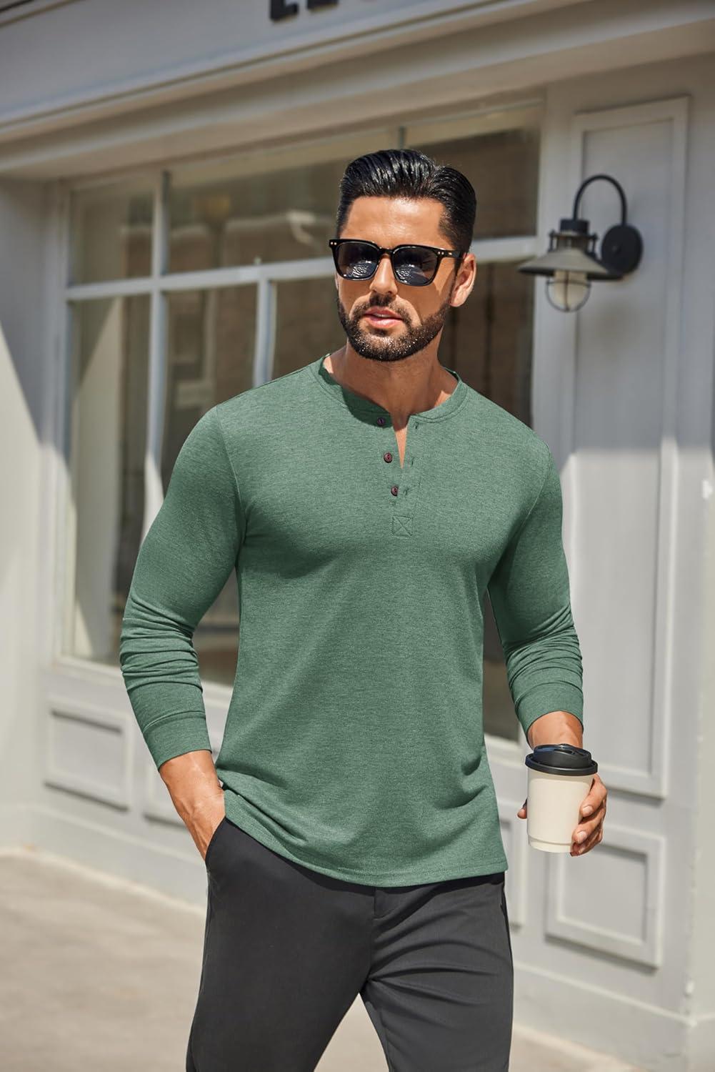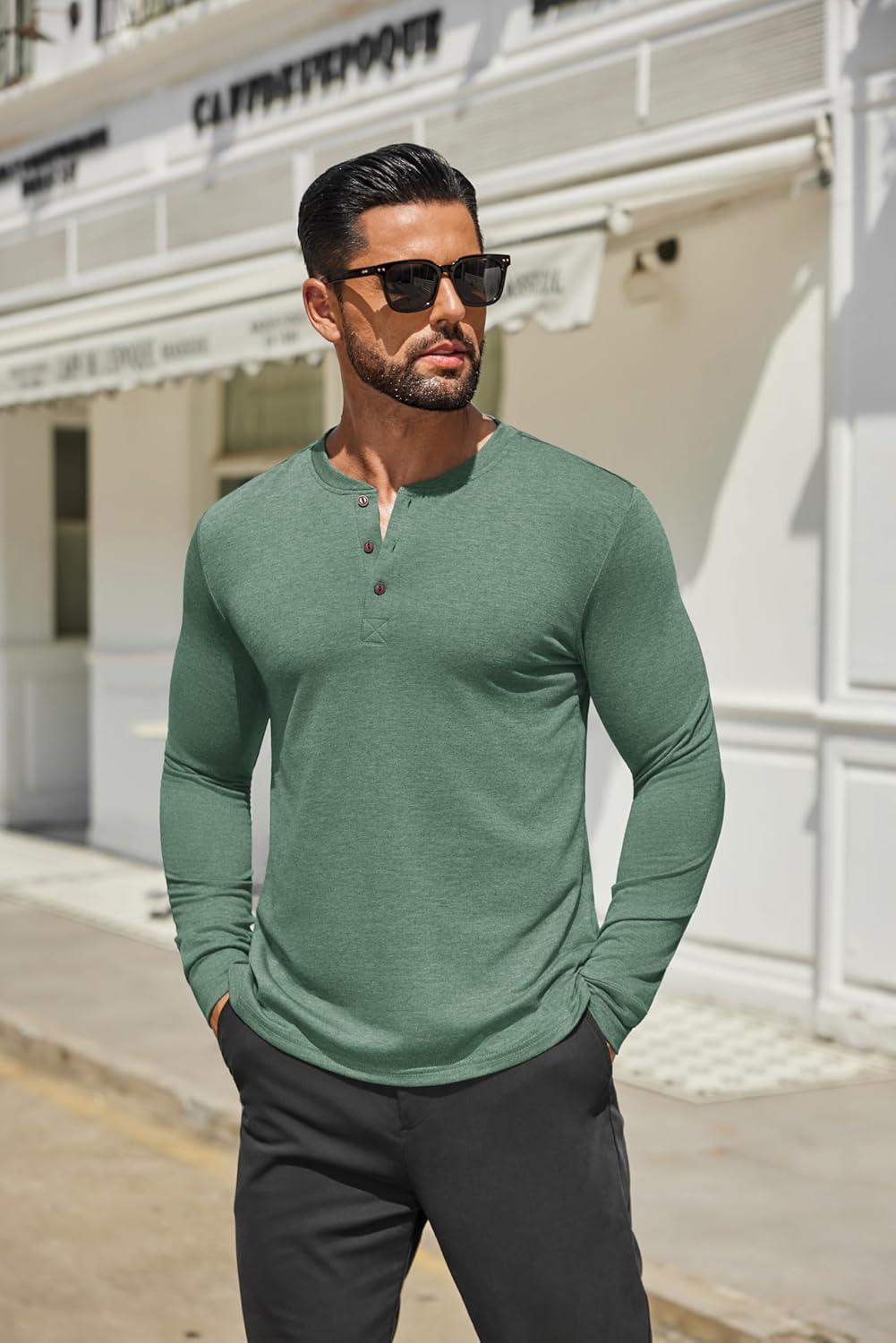 COOFANDY Men's Henley Shirts Long Sleeve Casual Button Shirts Fashion Lightweight Pullover Shirts(Dark Green)