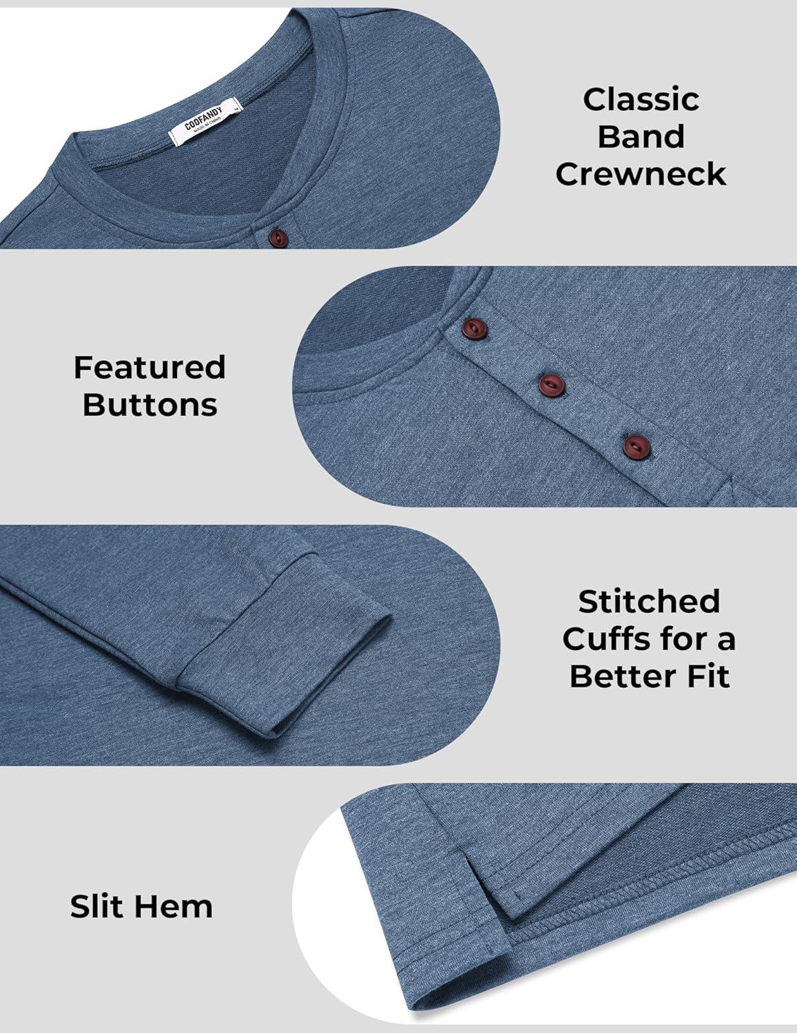 Get the COOFANDY Men’s Henley Shirts Long Sleeve Casual Button Shirts Fashion Lightweight Pullover Shirts(Denim Blue) you want at a discounted price during our markdown sale event.