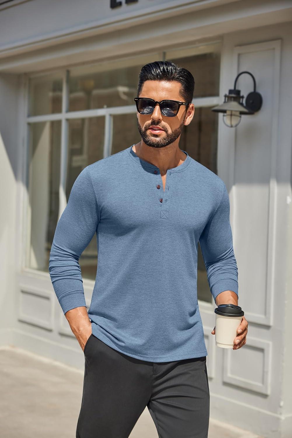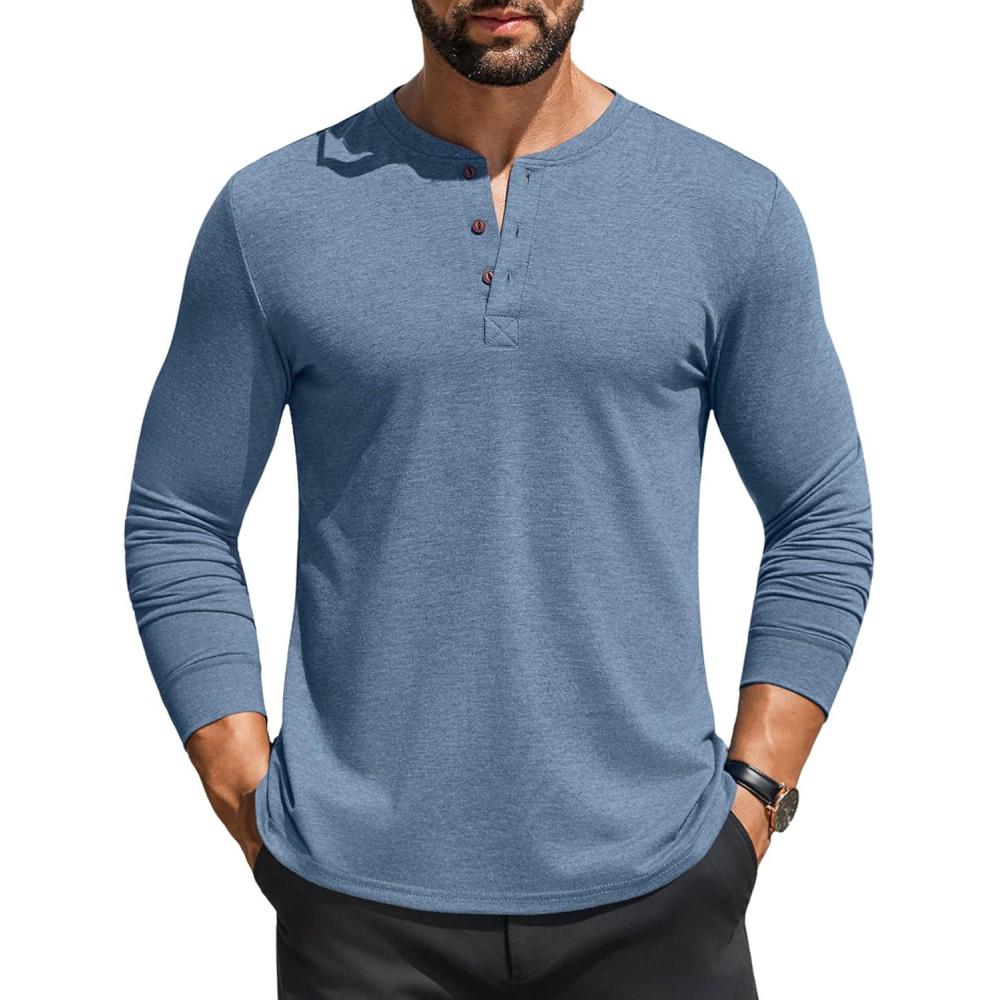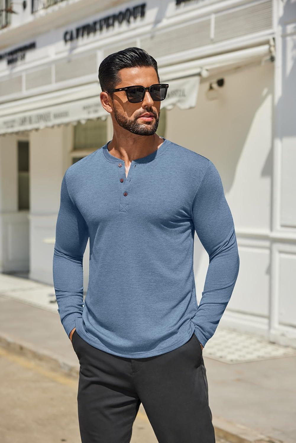 COOFANDY Men’s Henley Shirts Long Sleeve Casual Button Shirts Fashion Lightweight Pullover Shirts(Denim Blue)