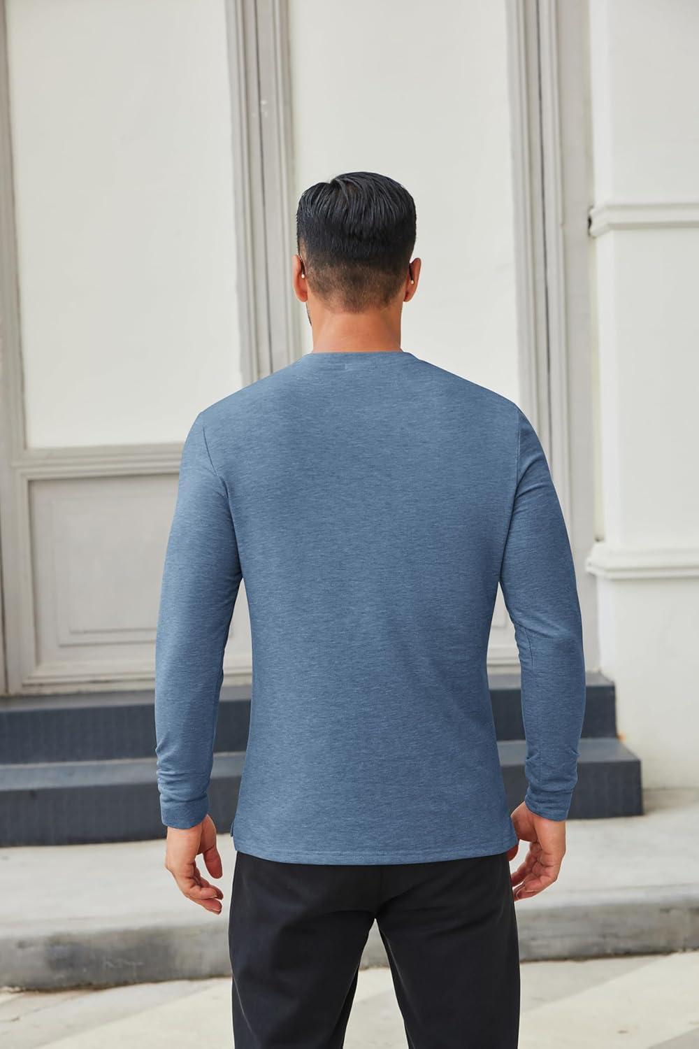 COOFANDY Men's Henley Shirts Long Sleeve Casual Button Shirts Fashion Lightweight Pullover Shirts(Denim Blue)