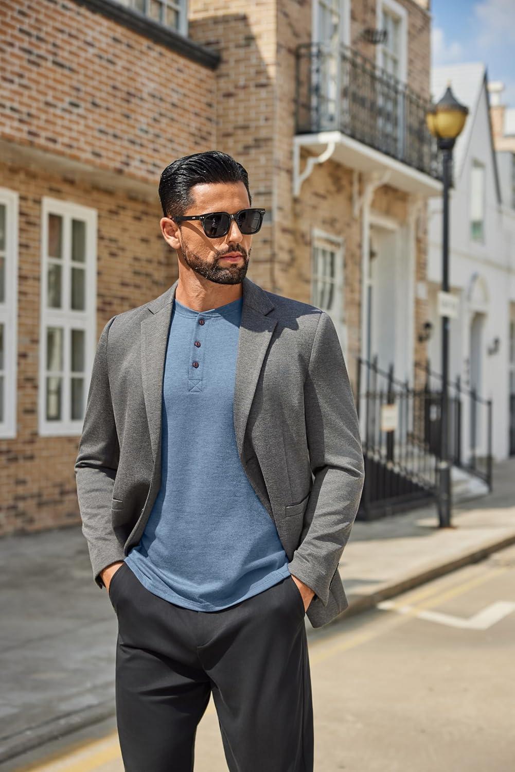 COOFANDY Men’s Henley Shirts Long Sleeve Casual Button Shirts Fashion Lightweight Pullover Shirts(Grey)