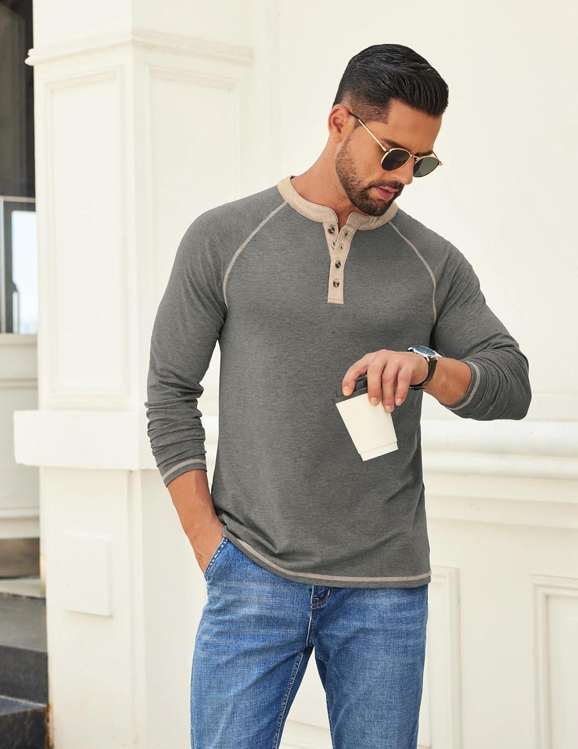 Save big on COOFANDY Mens Henley Shirts Long Sleeve Casual Button V Neck T-Shirt Lightweight Fashion Pullover Shirts(Dark Heather Grey) during our summer blowout sale. Limited quantities available.