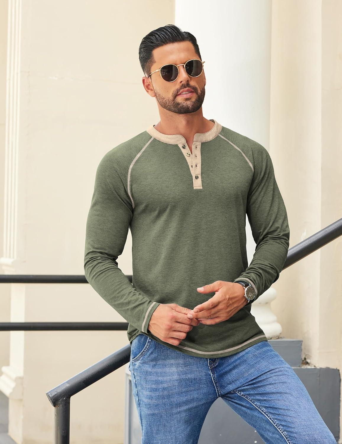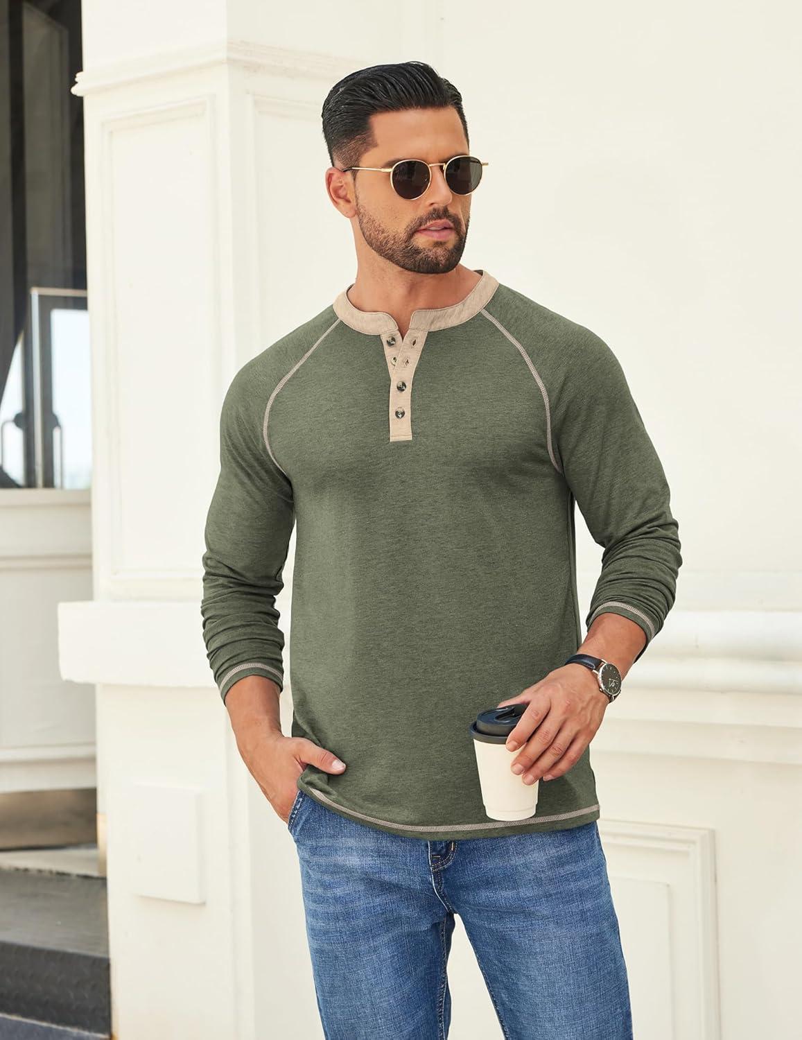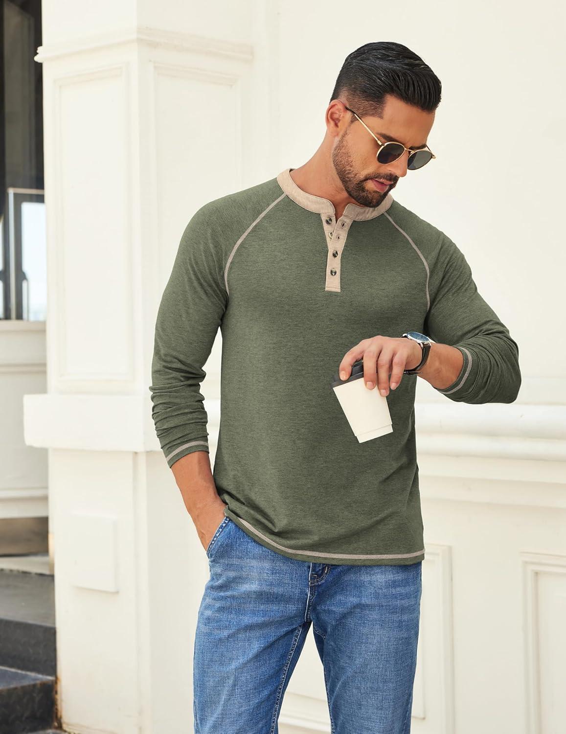 Save big on COOFANDY Mens Henley Shirts Long Sleeve Casual Button V Neck T-Shirt Lightweight Fashion Pullover Shirts(Heather Army Green) and accessories during our BOGO sale. Buy one, get one 50% off!